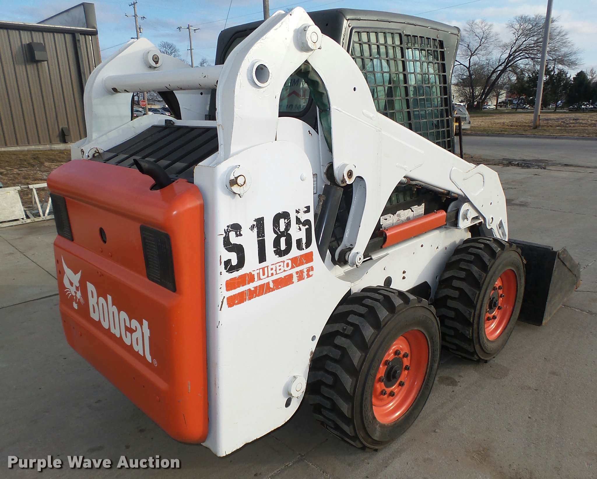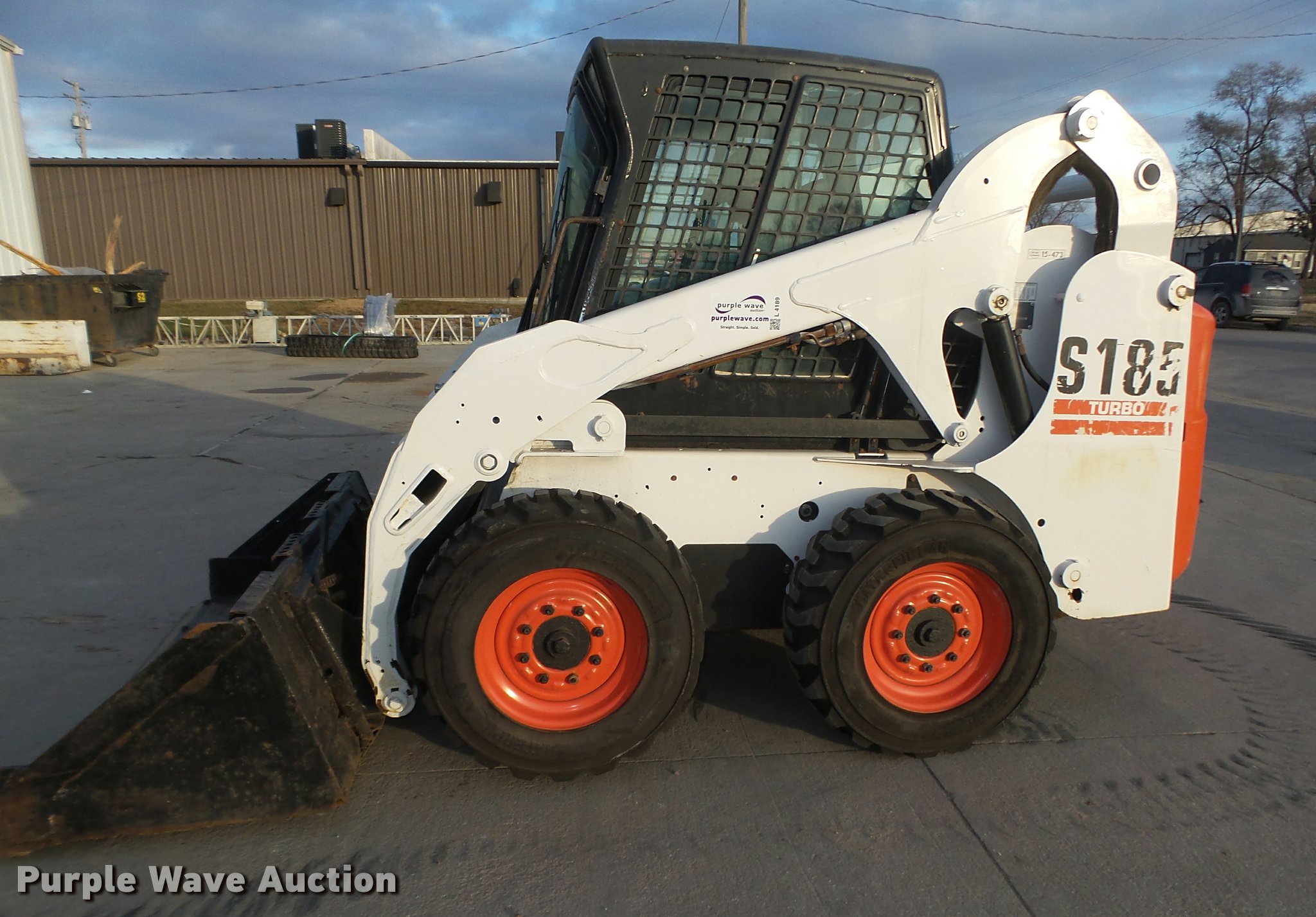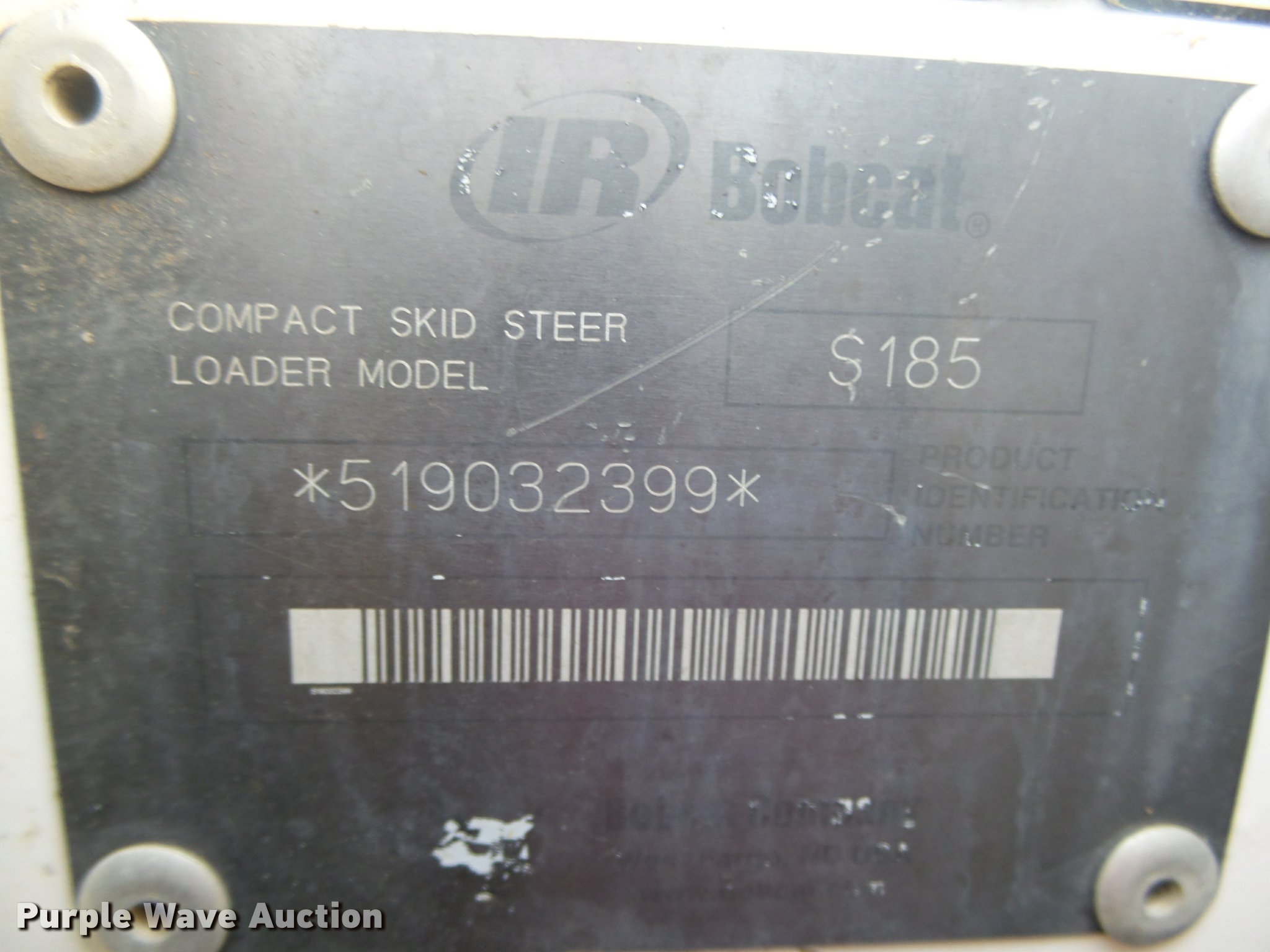 Purple Wave is selling a used Skid Steer Loader in Nebraska. This item is a 2002 Bobcat S185 skid steer with the following: Unknown miles on odometer, Kubota V2003TE 2.0L four cylinder turbo diesel engine, 44 kW, Hydrostatic transmission, Enclosed cab, Heat, Hand and foot controls, Spring suspension seat, Wipers, Front work lights, 66"W low profile bucket, Bolt-on cutting edge, Manual quick coupler, Auxiliary hydraulics, Caterpillar 10-16.5 NHS tires, Boom safety support, Operator manual, Serial 519032399