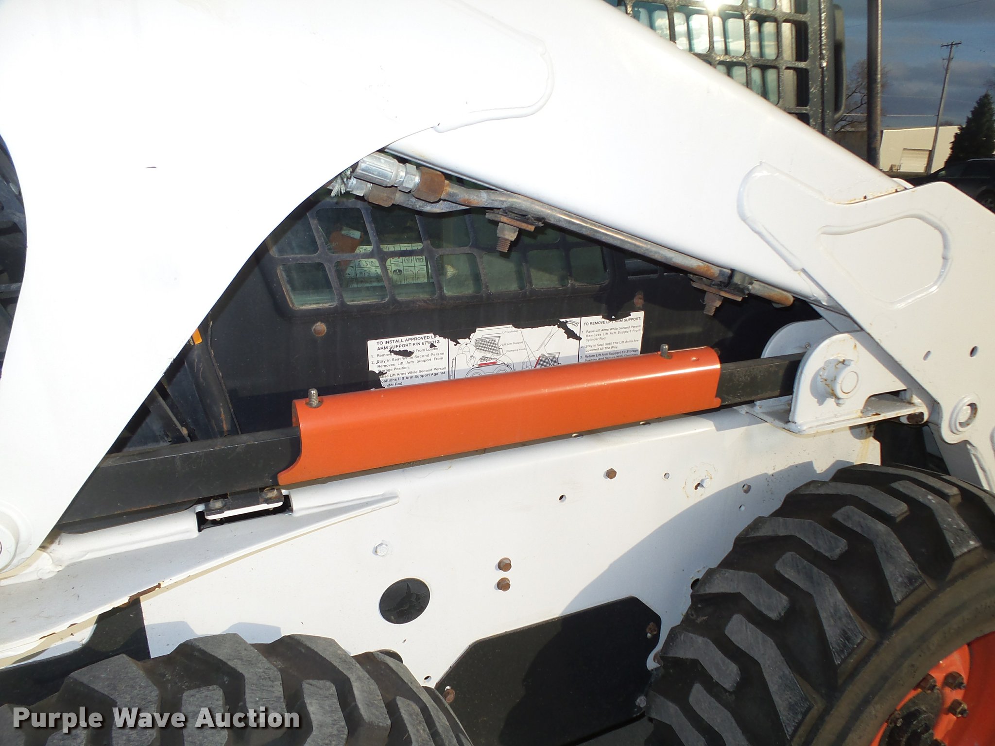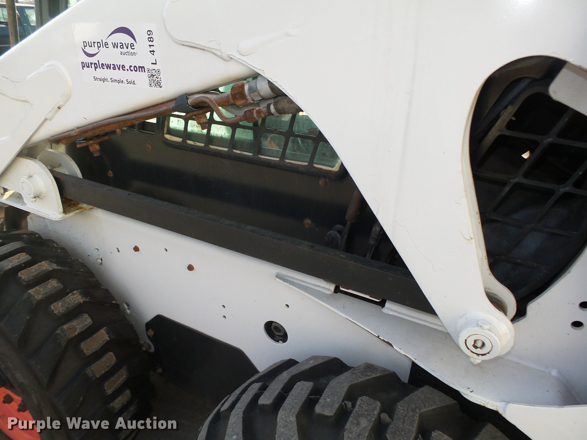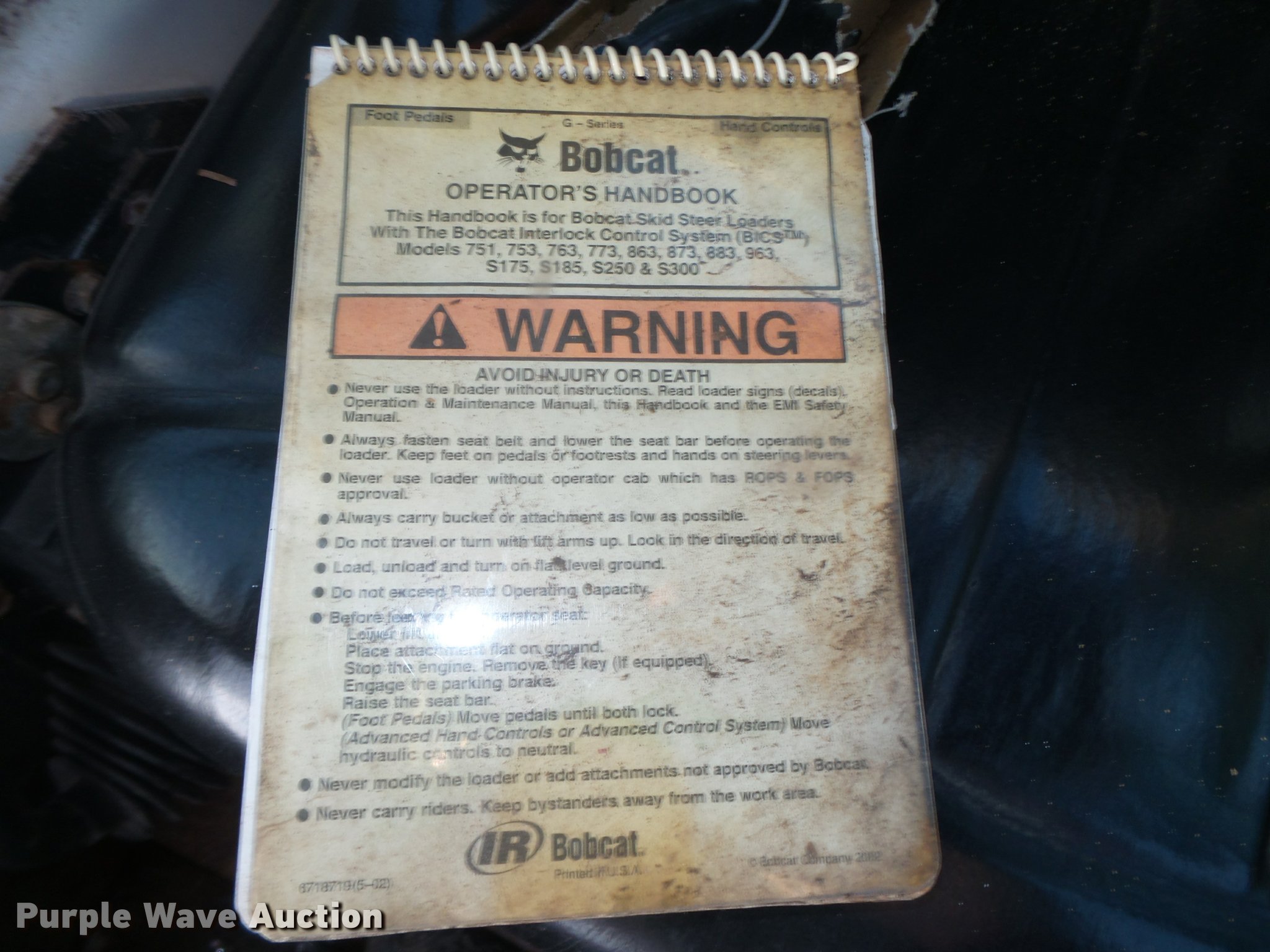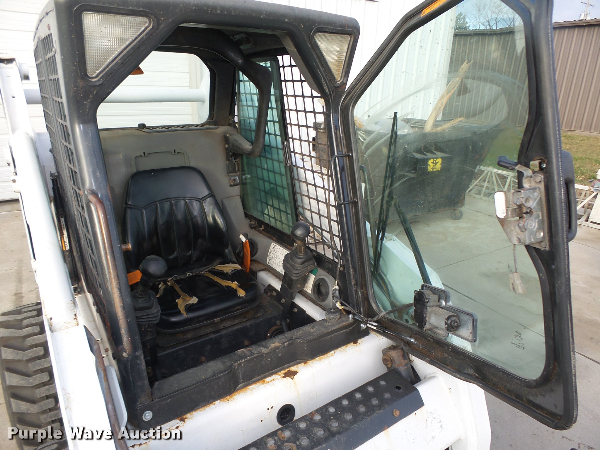 Purple Wave is selling a used Skid Steer Loader in Nebraska. This item is a 2002 Bobcat S185 skid steer with the following: Unknown miles on odometer, Kubota V2003TE 2.0L four cylinder turbo diesel engine, 44 kW, Hydrostatic transmission, Enclosed cab, Heat, Hand and foot controls, Spring suspension seat, Wipers, Front work lights, 66"W low profile bucket, Bolt-on cutting edge, Manual quick coupler, Auxiliary hydraulics, Caterpillar 10-16.5 NHS tires, Boom safety support, Operator manual, Serial 519032399