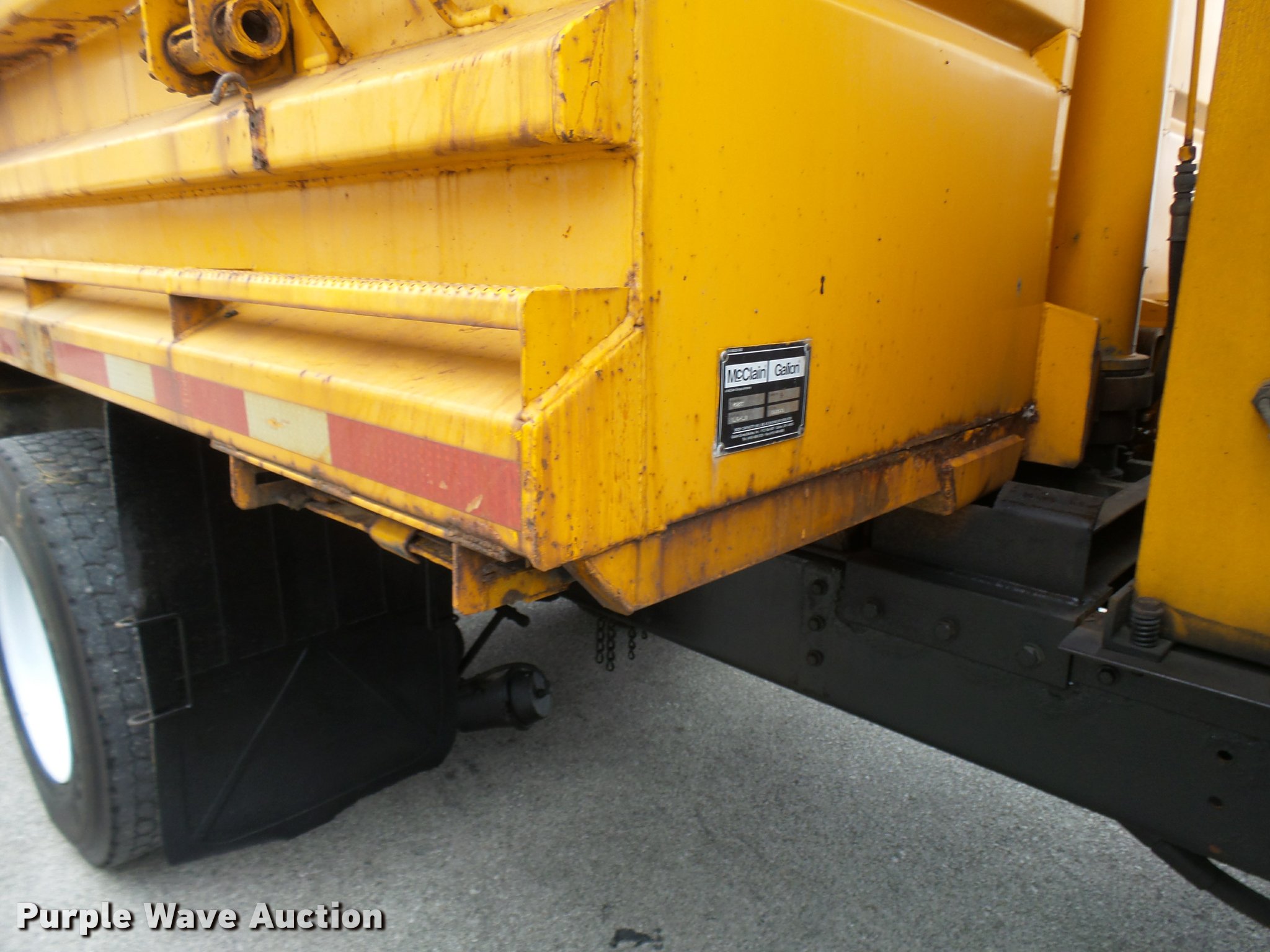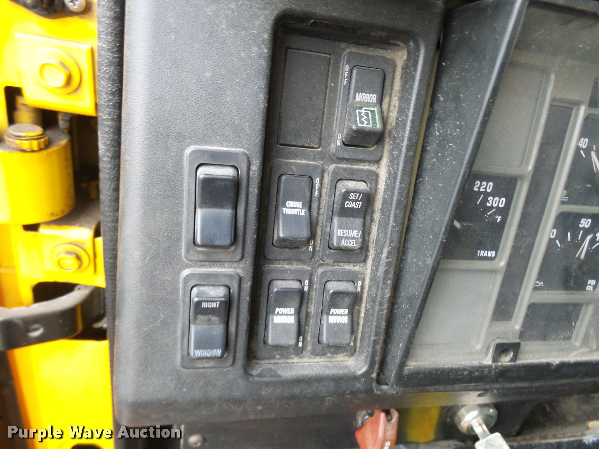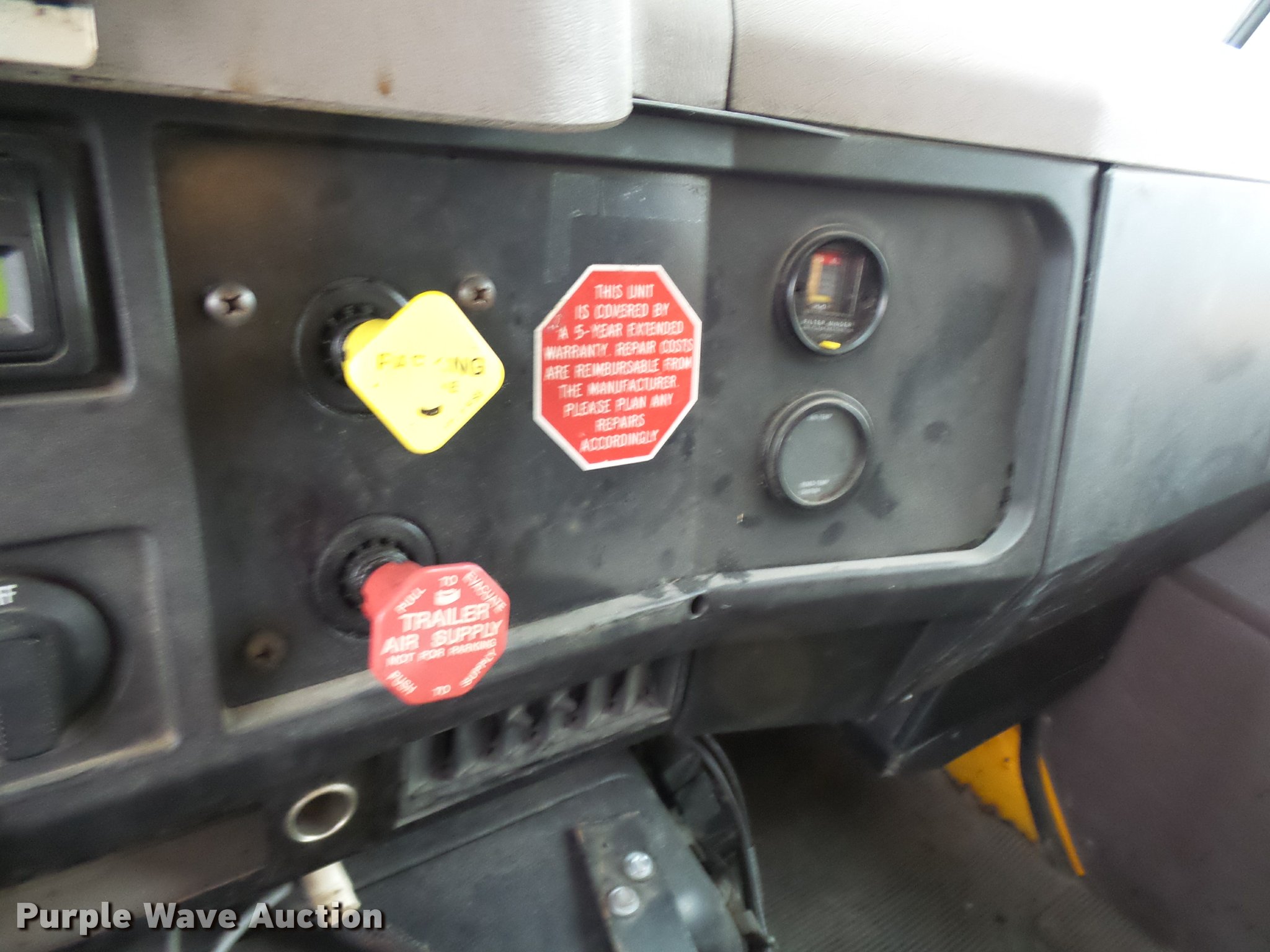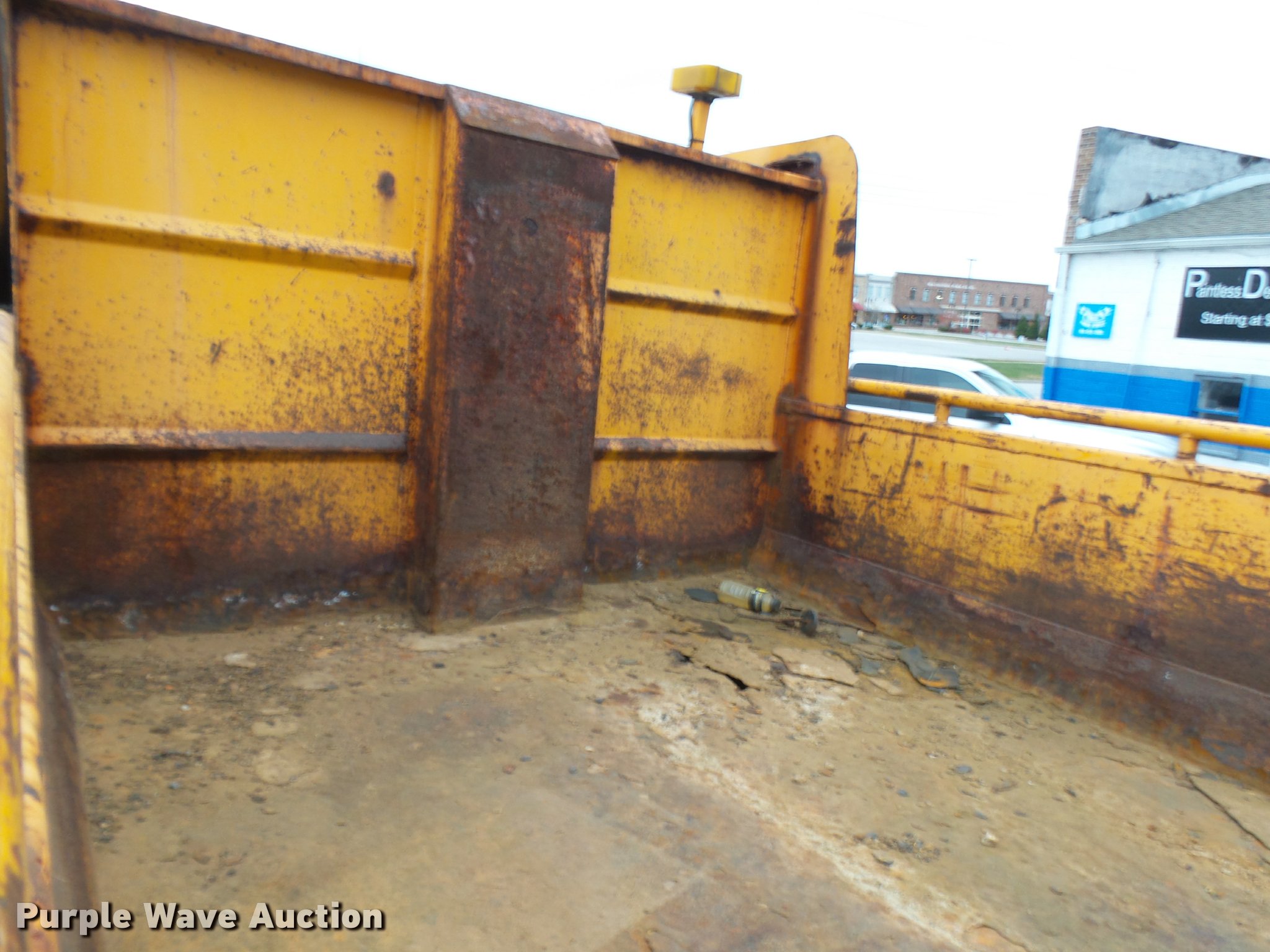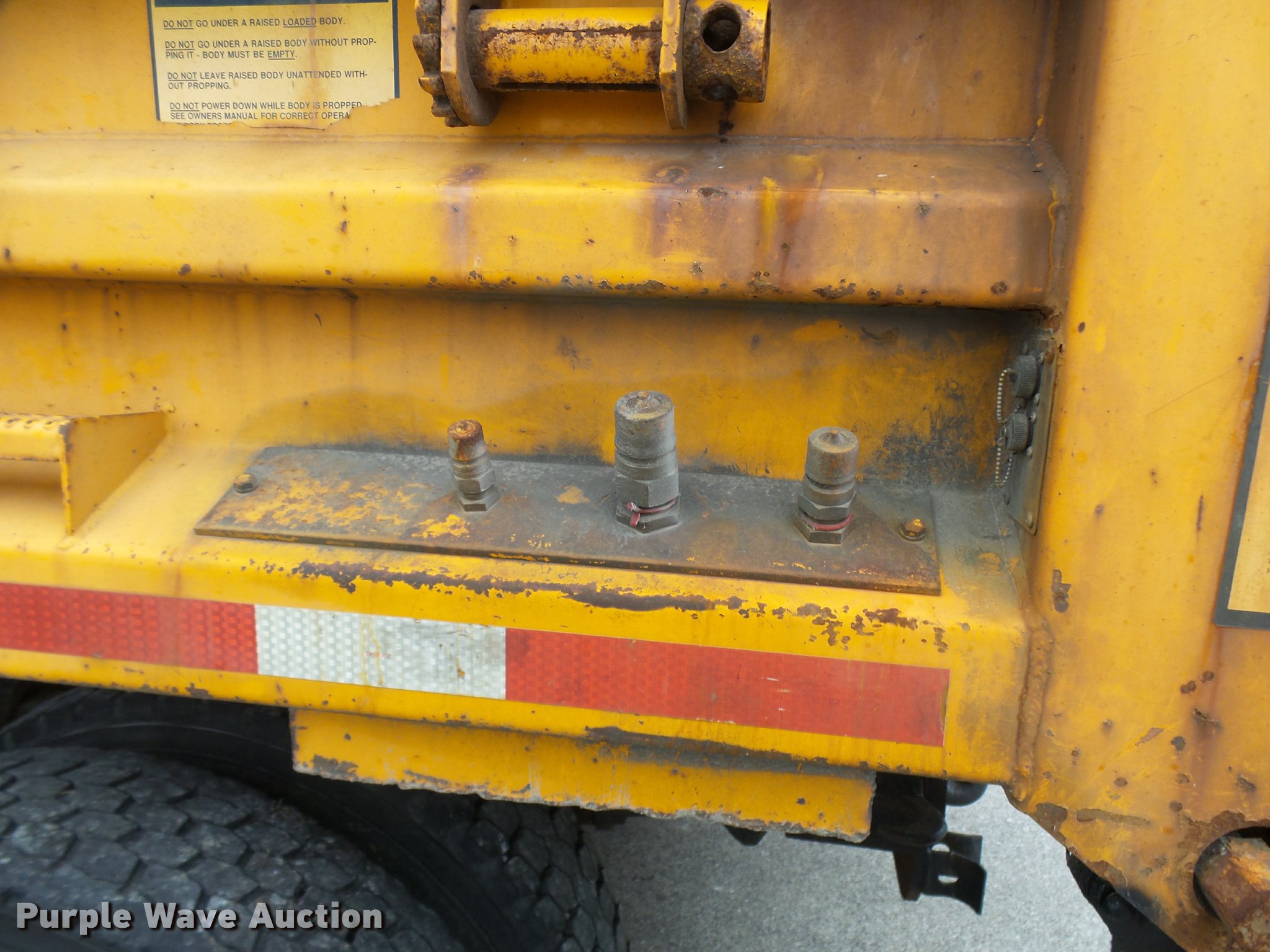 Purple Wave is selling a used Construction Dump Truck in Missouri. This item is a 2002 International 4900 dump truck with the following: 138,590 miles on odometer, International DT466 7.6L L6 diesel engine, Automatic transmission, AC and heat, Cruise, AM/FM, Power windows and mirrors, Heated mirrors, Air suspension seat, Block heater, PTO, 10'L dump bed, Model 402FT, Air operated end gate, Rear hydraulic couplers, Rear air brake coupler, Single fuel tank, Front snow plow auxiliary hydraulic couplers, Snow plow front bumper, Amber beacon light, Pintle hitch, Trailer wiring, Spring suspension, Air brakes, 315/80R22.5 tires, GVWR 35,000 lbs, FAWR 12,000 lbs, RAWR 23,000 lbs