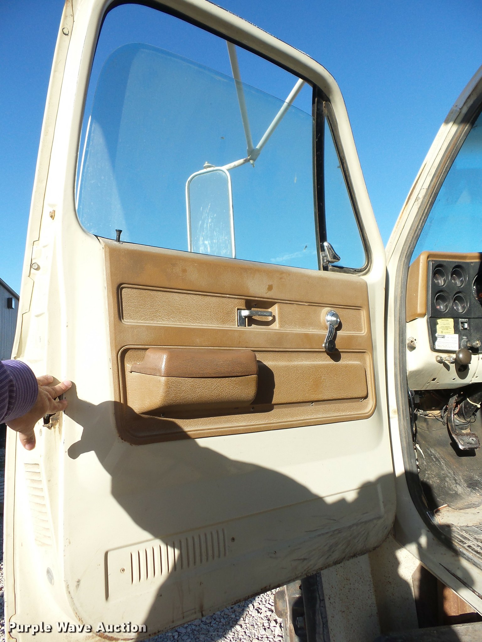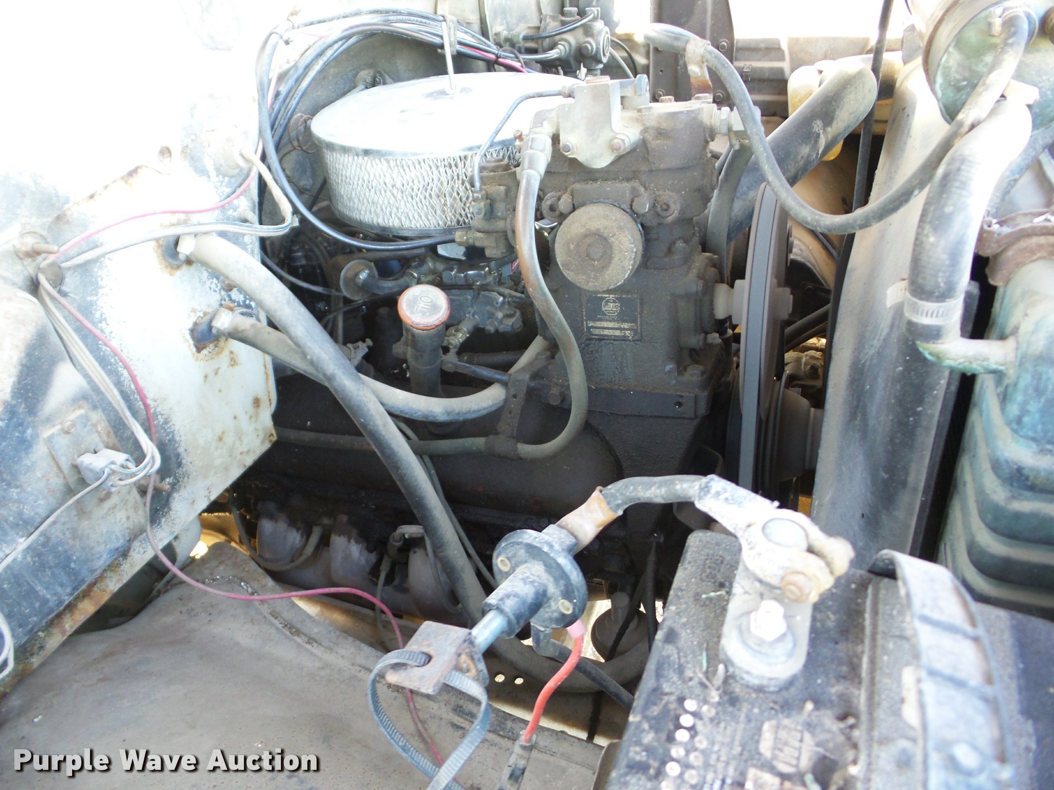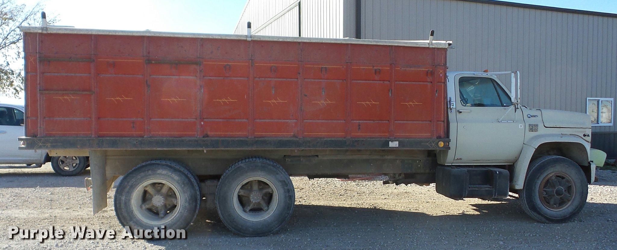 Purple Wave is selling a used Grain Truck in Kansas. This item is a 1974 Chevrolet C65 grain truck with the following: 70,832 miles on odometer, Chevrolet 366 C.I.D. eight cylinder gas engine, Five speed manual transmission, Four speed auxiliary transmission, Tandem axle, Inter-axle differential lock, Heat, Suspension seat, PTO, 18'L x 96"W steel grain bed, 52" side height, Rollover tarp, Manual end gate, Dual ram hoist, Single fuel tank, Spring over walking beam suspension, Air brakes, 10.00R20 tires, GVWR 41,000 lbs, FAWR 9,000 lbs, IAWR 16,160 lbs, RAWR 16,160 lbs, Speedometer inoperable