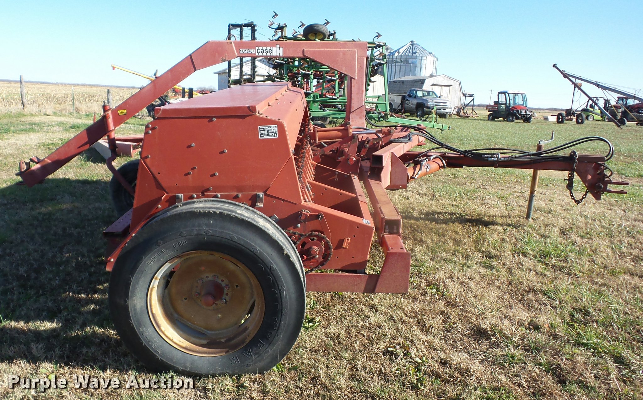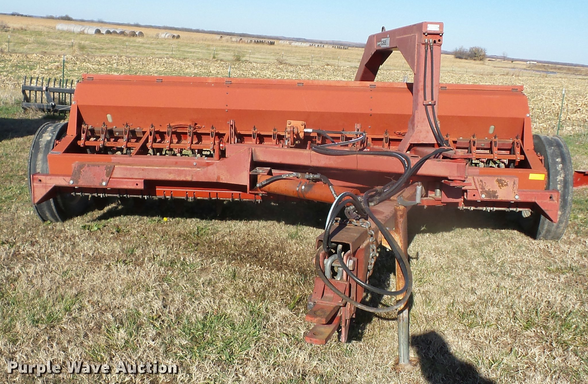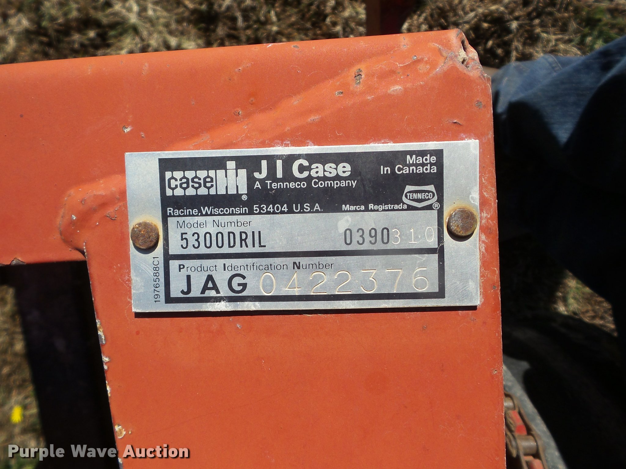 Purple Wave is selling a used Grain Drill or Seeder in Kansas. This item is a Case IH 5300 Soybean Special grain drill with the following: 12'W, 7" row spacing, Bulk fill system, Milo boxes included, Ground meter drive, HD spring down pressure, Double disk openers, Single rubber closing system, Pin hitch, Rear hitch, (2) 7.50-20 transport tires, Serial JAG0422376