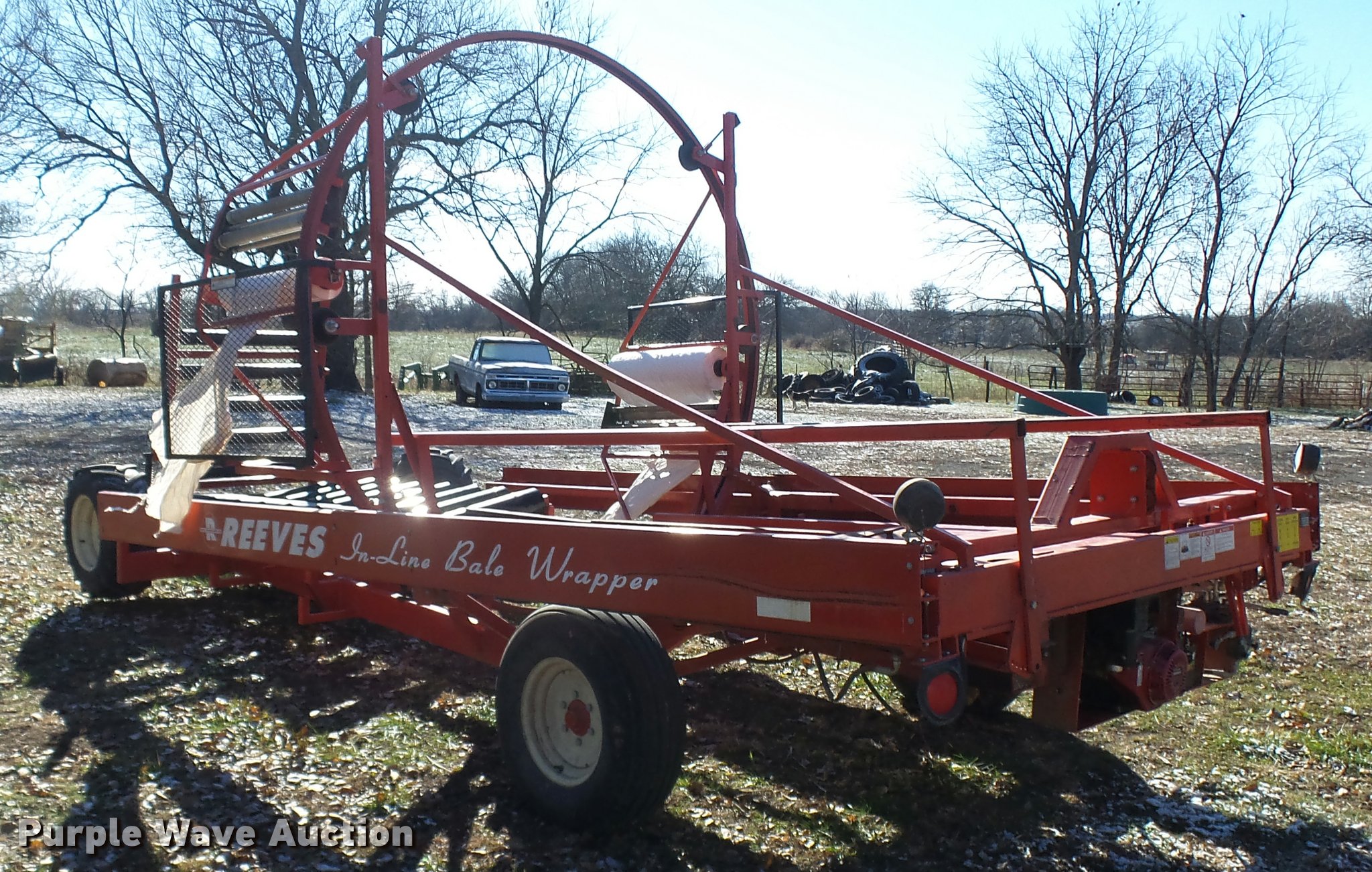 Purple Wave is selling a used Hay Handling in Missouri. This item is a 2007 Reeves 652 self-propelled in-line bale wrapper with the following: Honda 13 HP gas engine, Hydraulic drive, 12V electric start, Wireless remote wrapper controls, Dual wrapper system, Assisted lift gate, 5' x 6' bale capacity, Work lights, Taillights, Hydraulic steering, Six gallon fuel tank, Self-contained unit, Pin hitch, Hydraulic lift jack, 11L-15 tires, 29x12.5-15 drive tires, Serial 6813510905