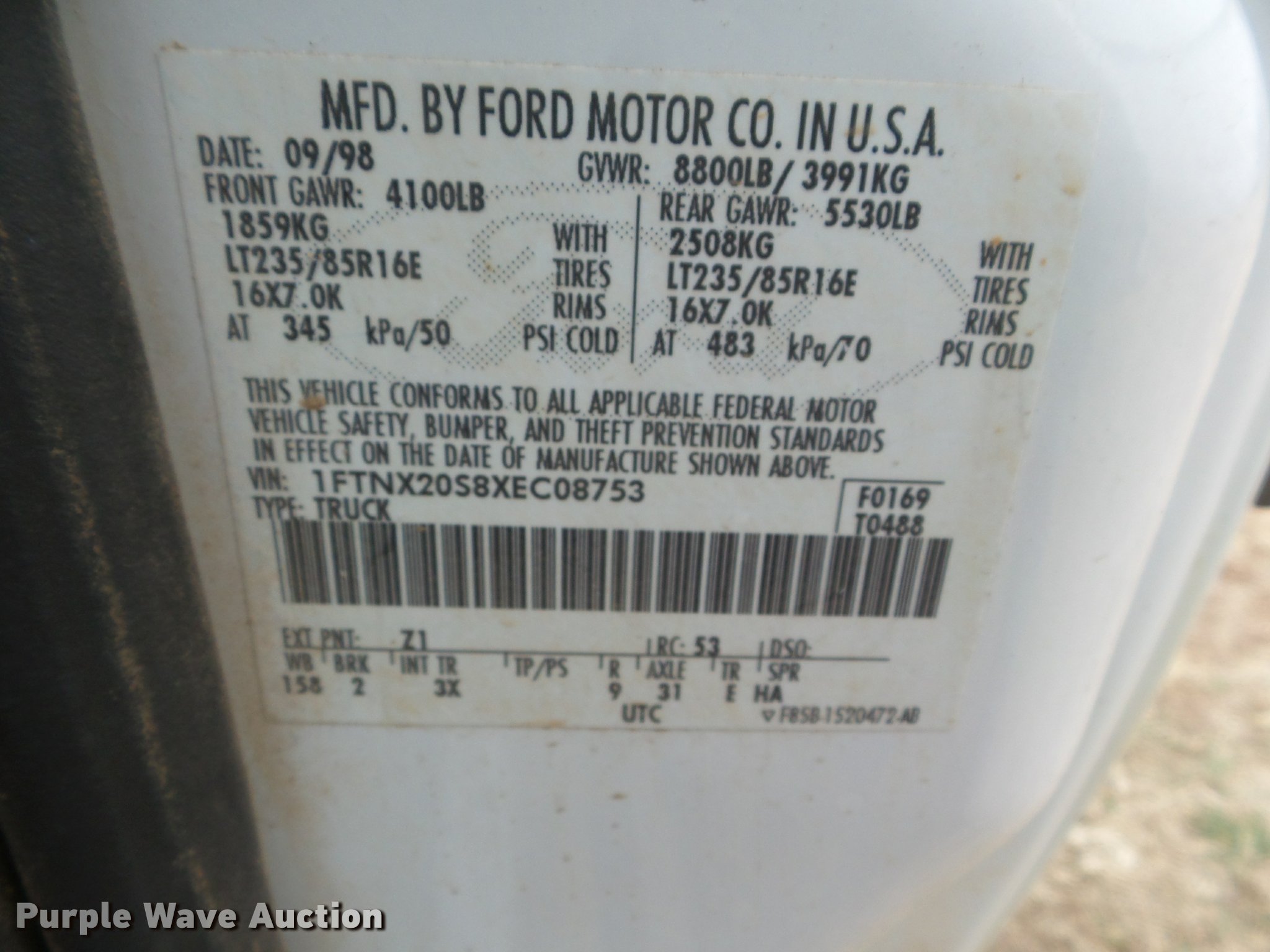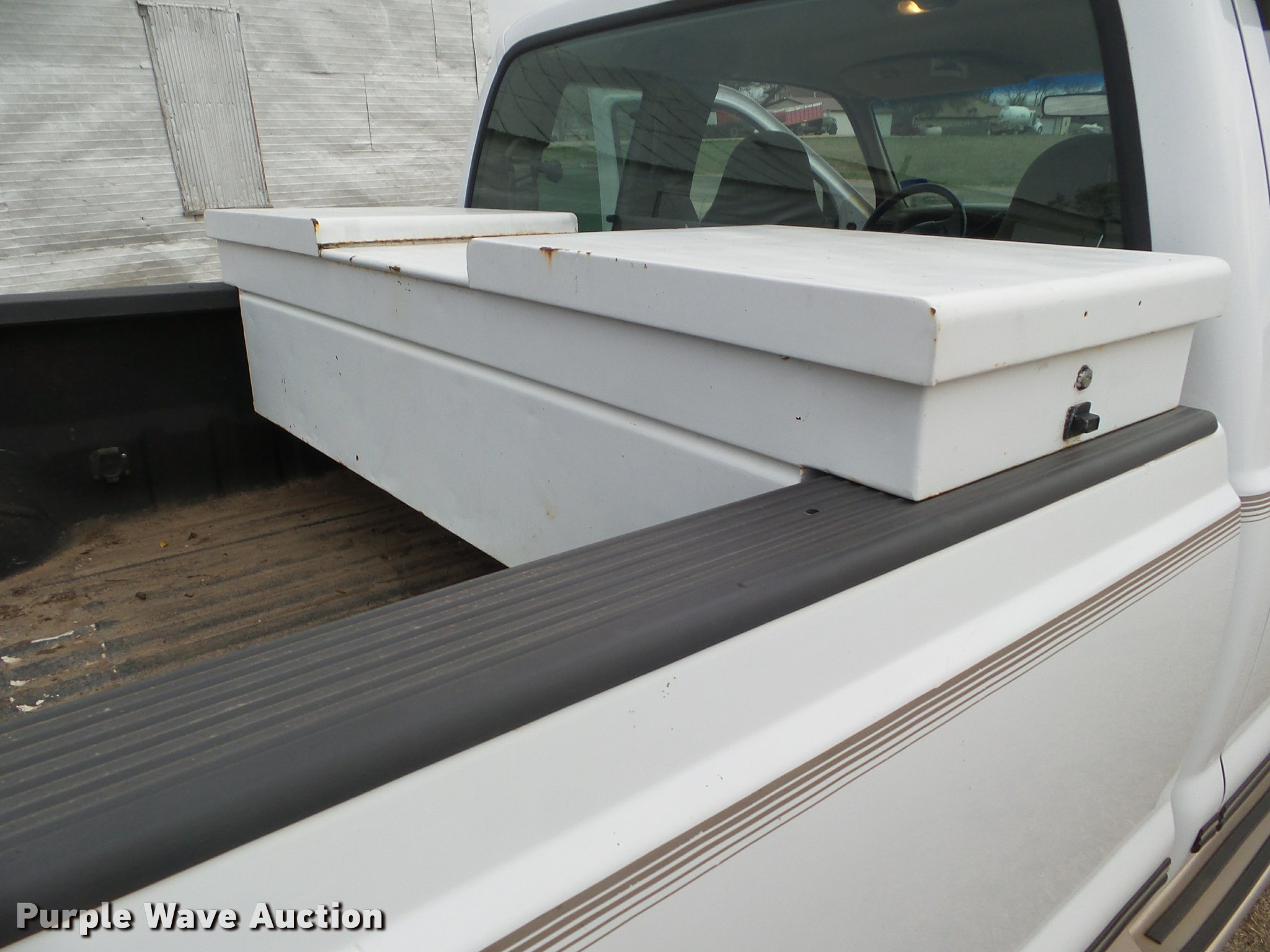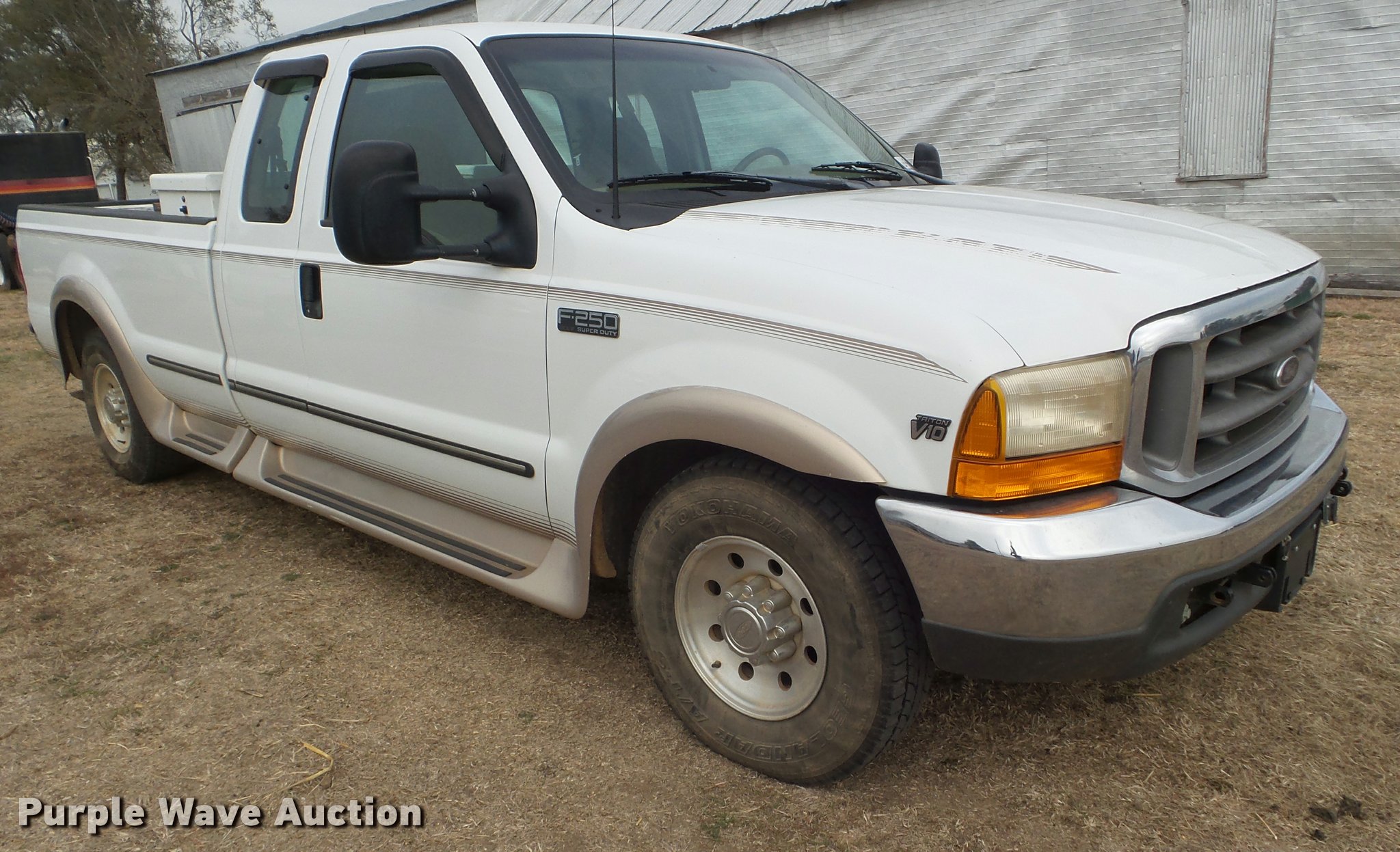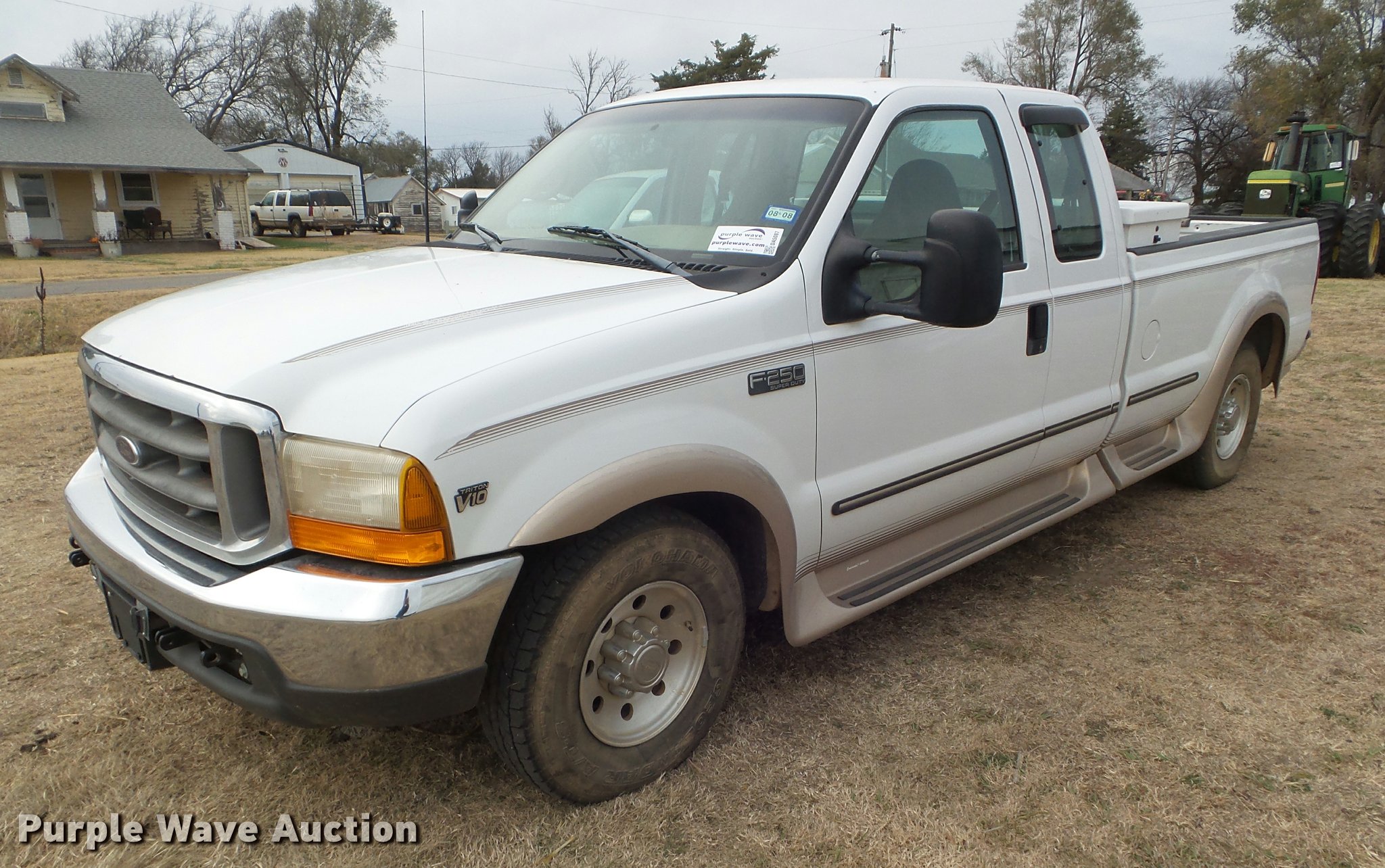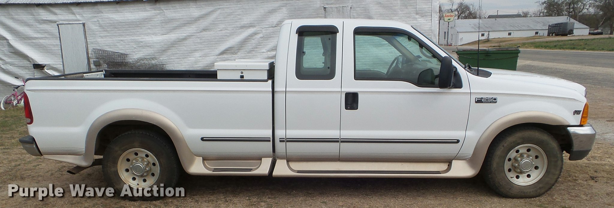 Purple Wave is selling a used 3/4 or 1 Ton Pickup or Van in Kansas. This item is a 1999 Ford F250 Super Duty SuperCab pickup truck with the following: 122,828 miles on odometer, 6.8L V10 SOHC 20V gas engine, Automatic transmission, AC and heat, Tilt, Cruise, AM/FM/CD, Power windows, locks, and mirrors, Cloth interior, Running boards, Bed liner, Toolbox, Gooseneck ball, Receiver hitch, Trailer wiring, 235/85R16 tires