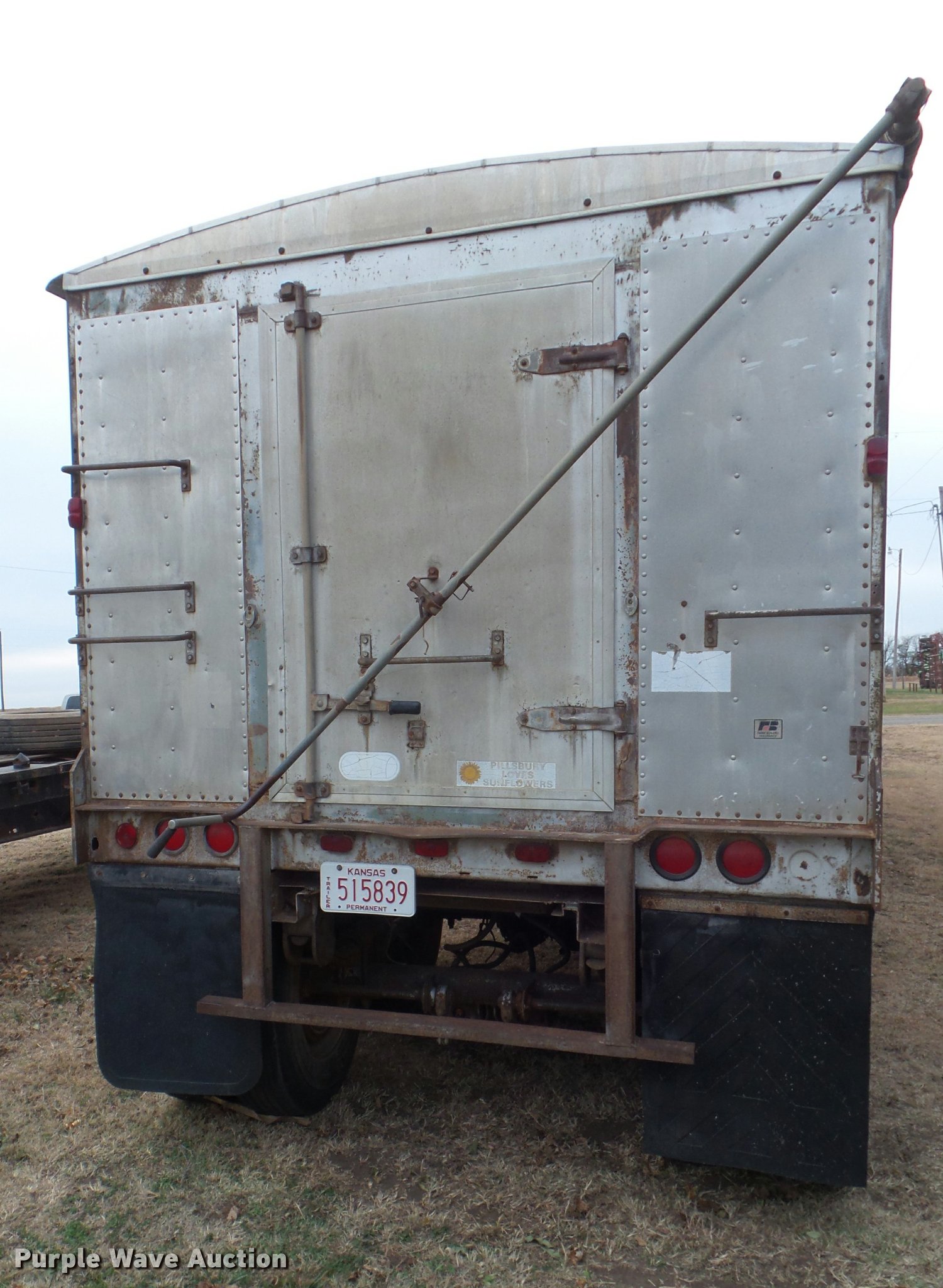 Purple Wave is selling a used Grain or Commodity Trailer in Kansas. This item is a 1976 Dorsey double hopper grain trailer with the following: 38'L x 8'W, 68" side height, Manual trap gates, Front and rear ladders, Rollover tarp, Fifth wheel plate, Dual leg two speed landing gear, Spring suspension, Air brakes, Tandem axle, Steel wheels, 11R22.5 tires