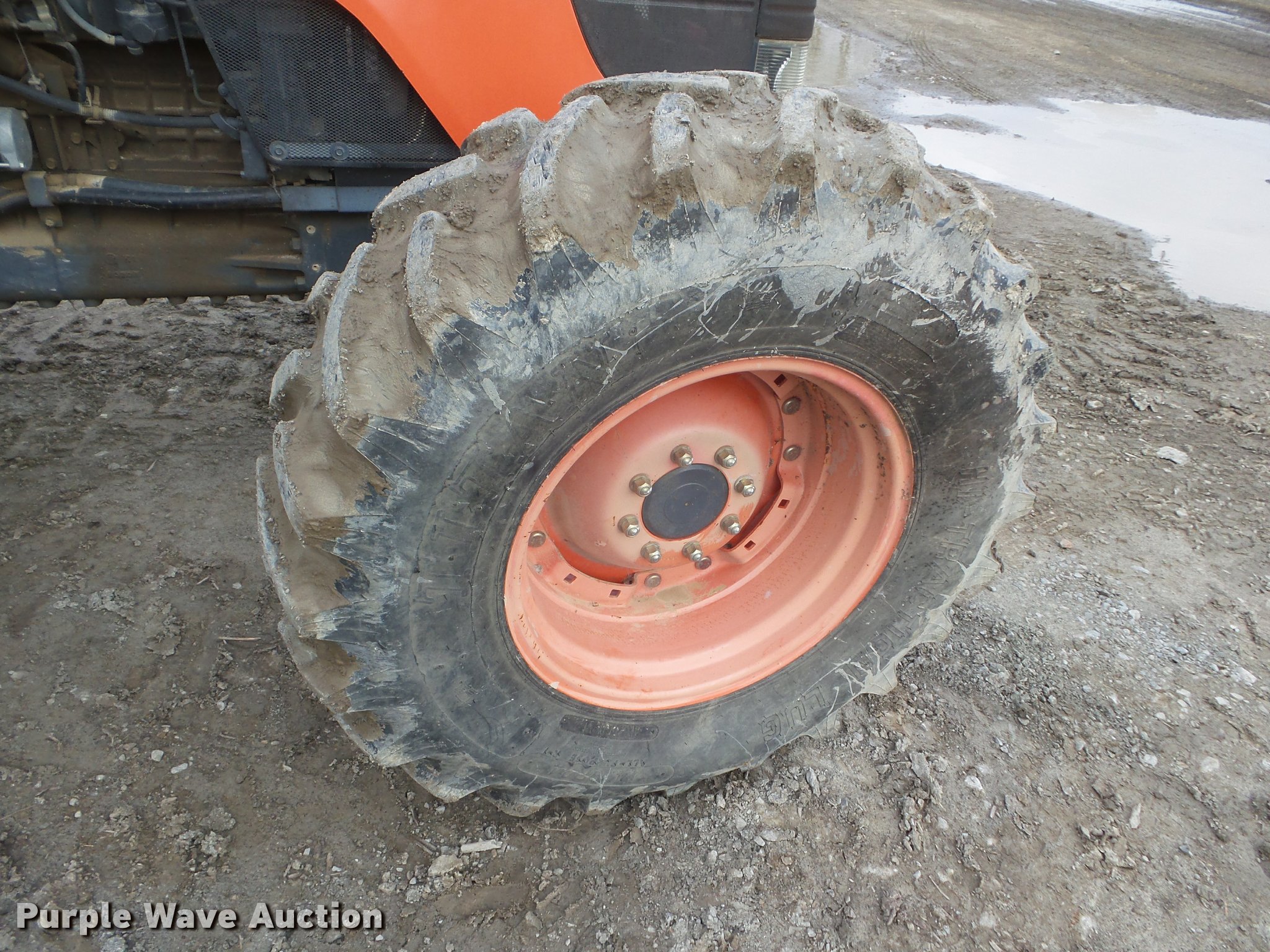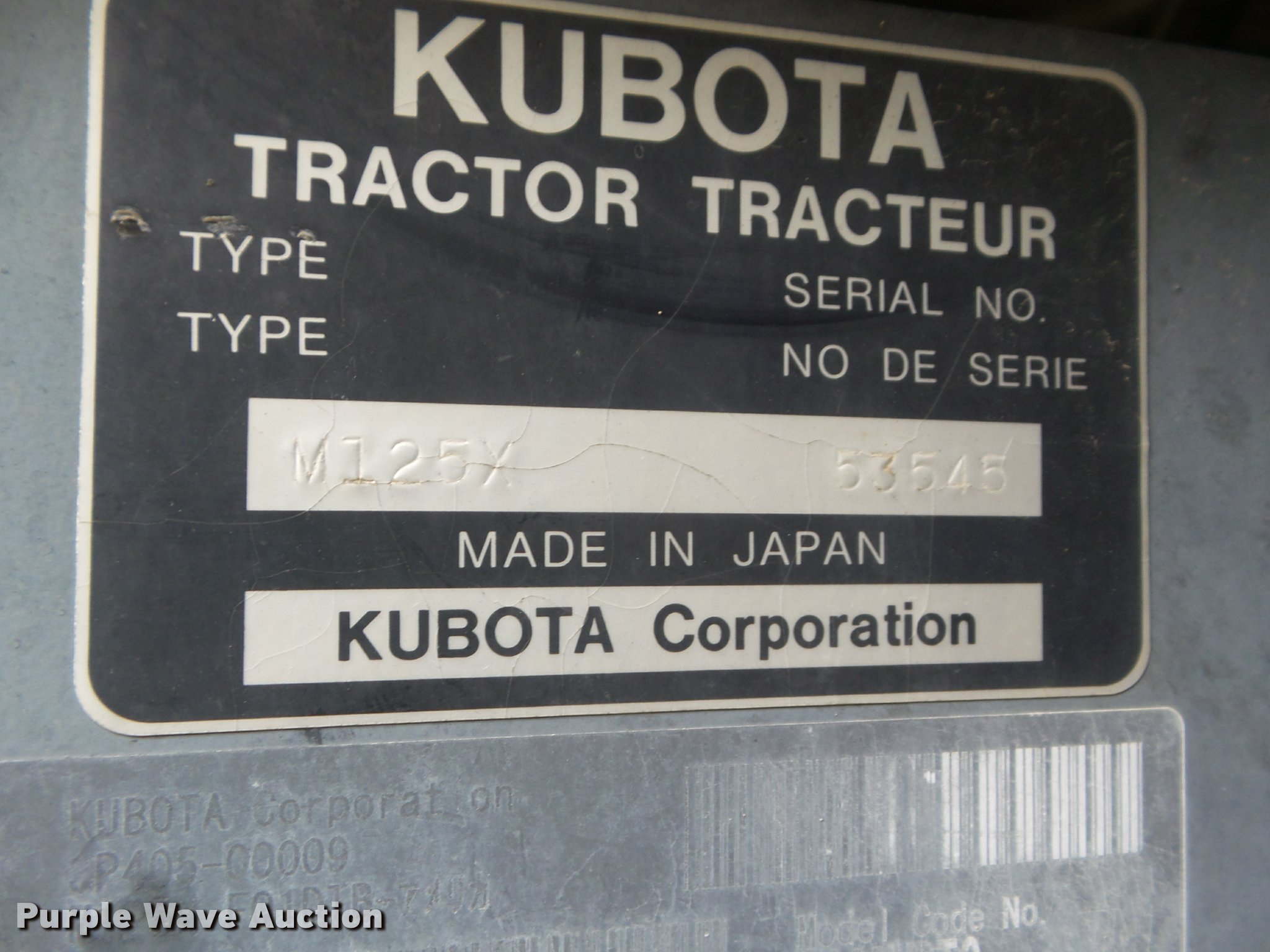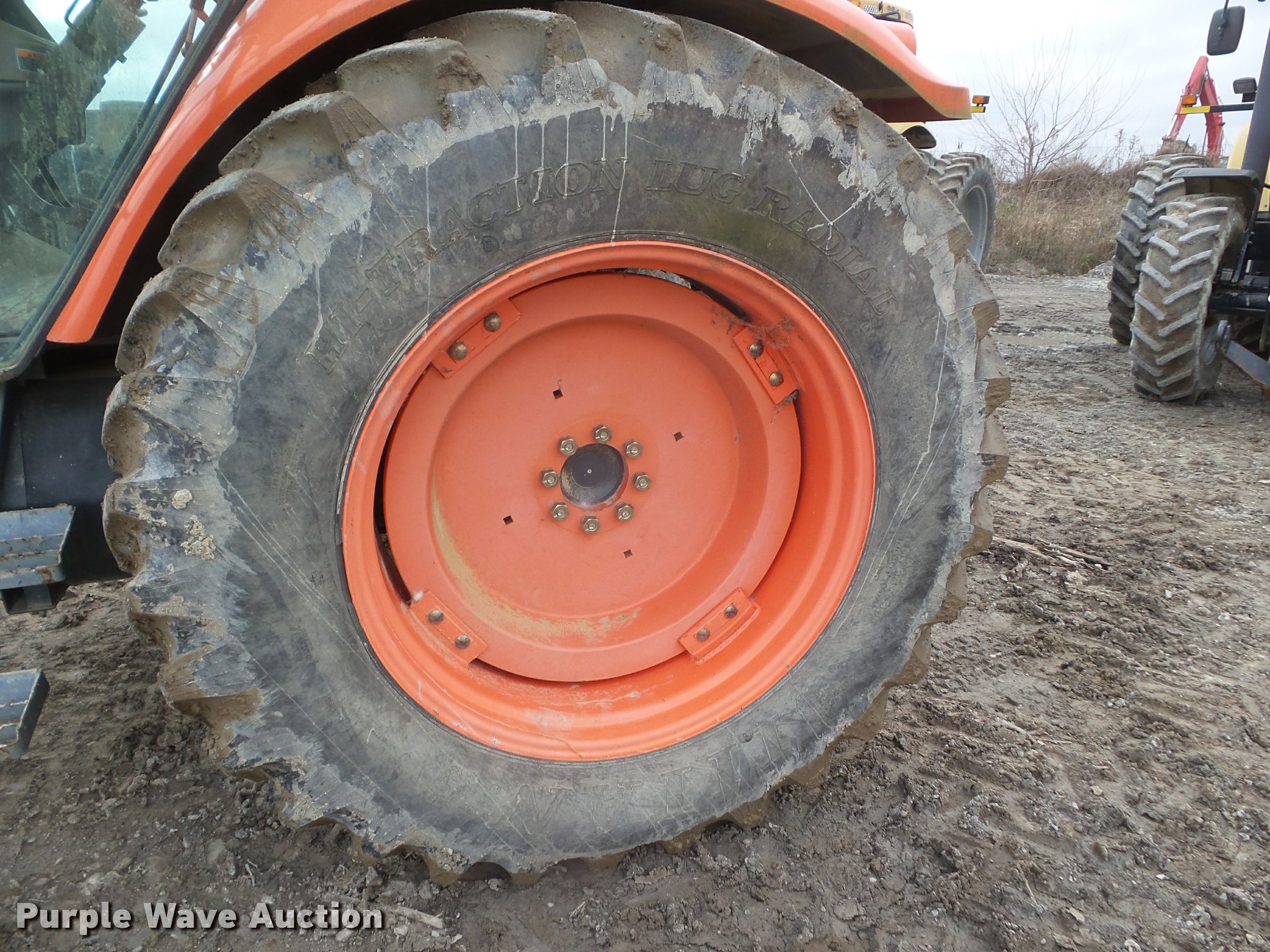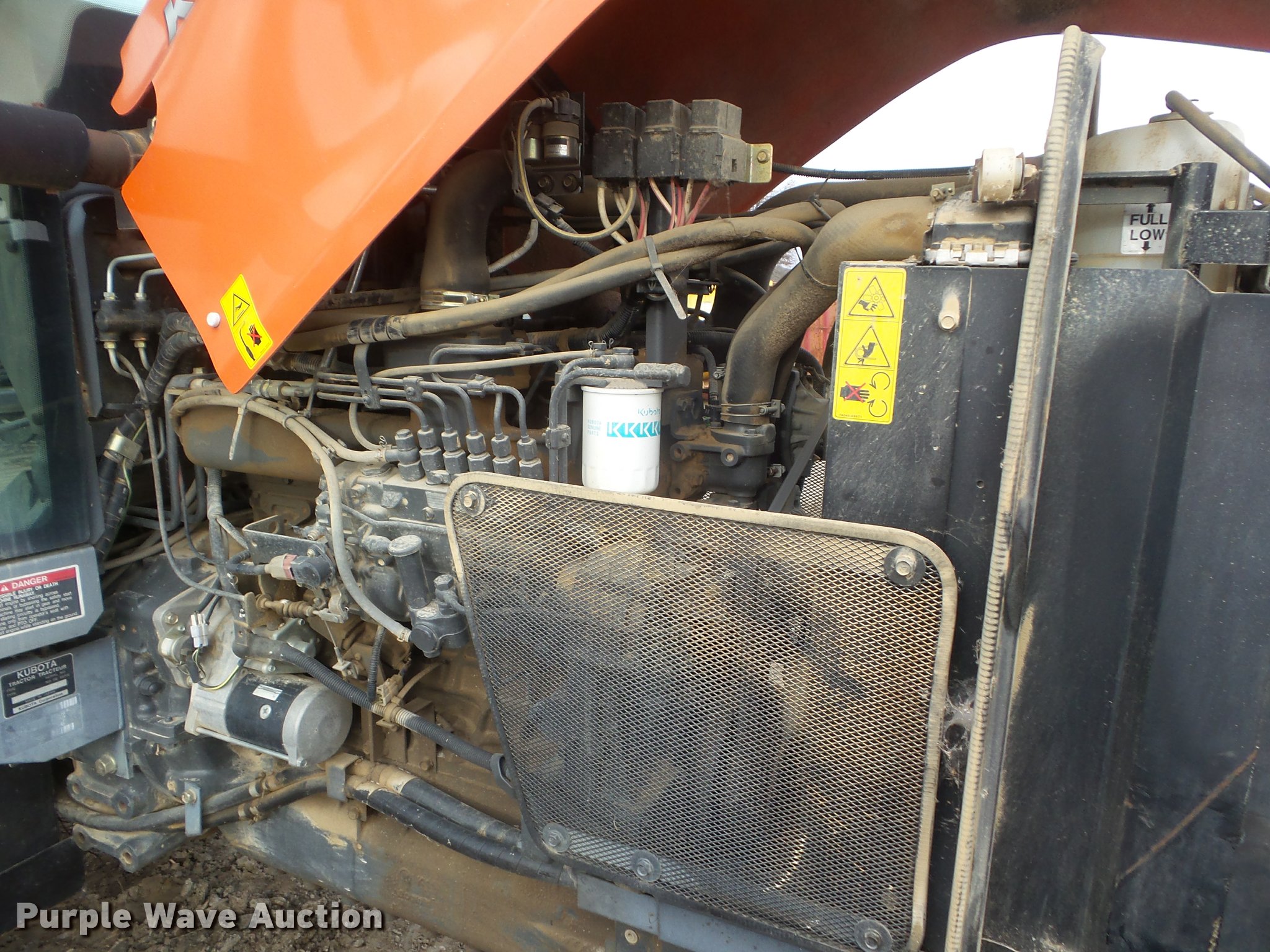 Purple Wave is selling a used Tractor in Ohio. This item is a 2008 Kubota M125DTC MFWD tractor with the following: 1,324 hours on meter, Kubota F5802TE2 5.8L five cylinder turbo diesel engine, 125 HP, Intelli-shift transmission, 16F-16R gears, AC and heat, Tilt steering wheel, AM/FM/cassette, Air suspension seat, Visor, Three point, Top link, 540 PTO, (2) rear hydraulic remote sets, 74.9R24 front tires, 480/80R38 rear tires, Serial 53545, Unit# 600007
