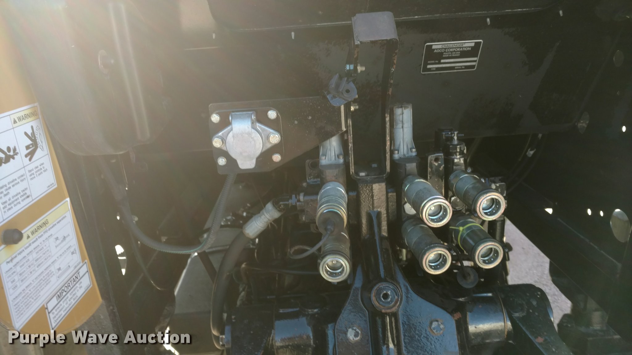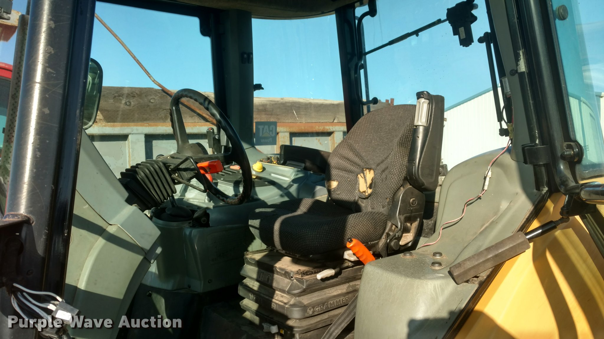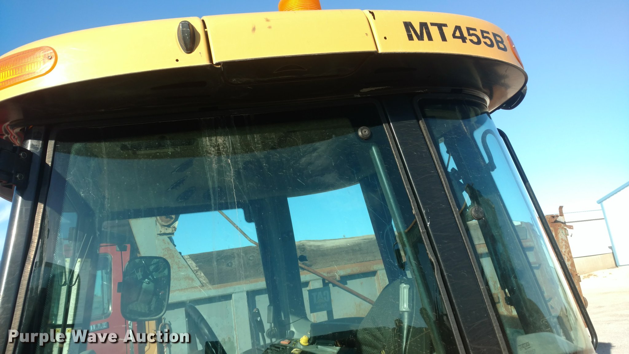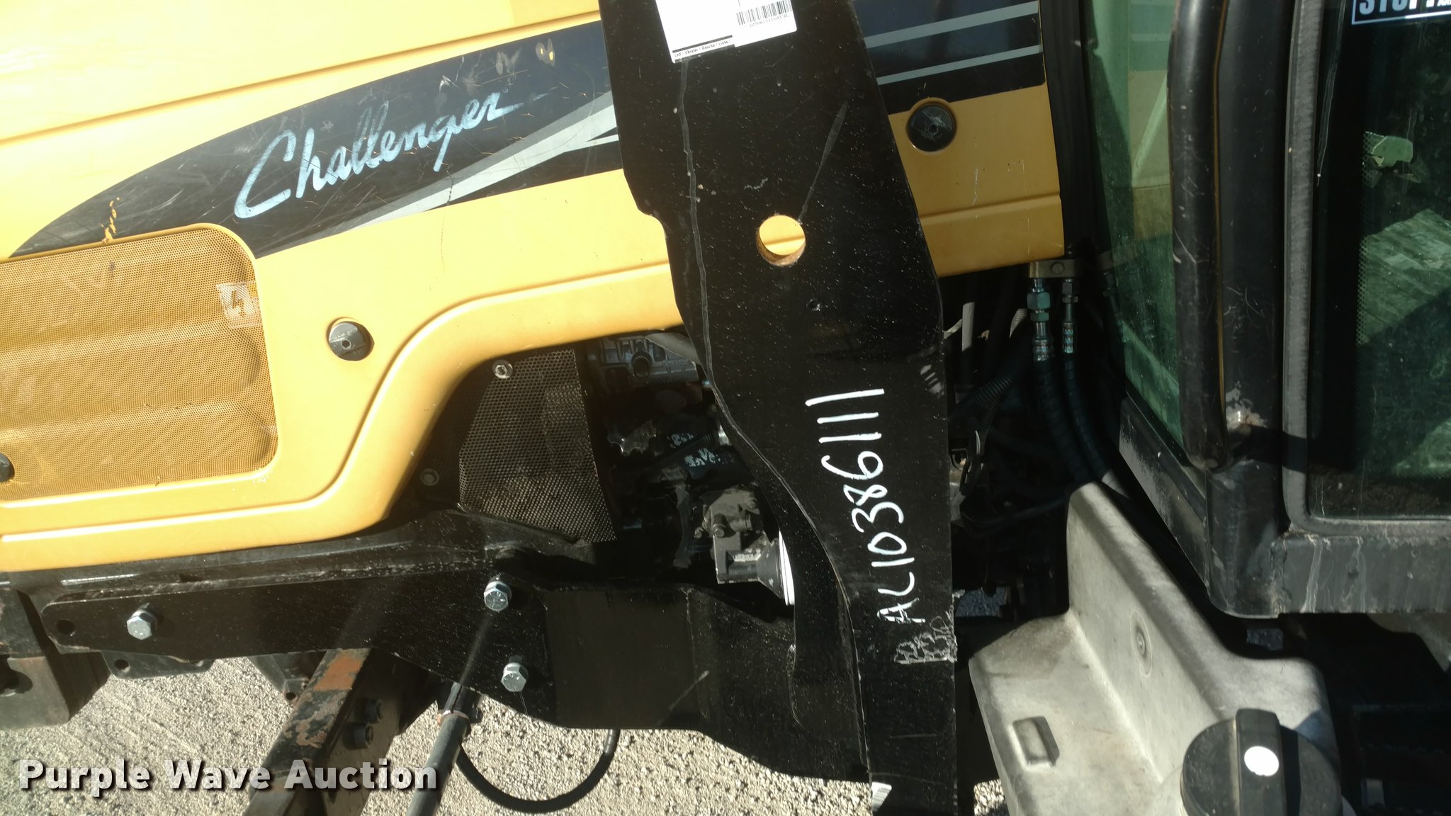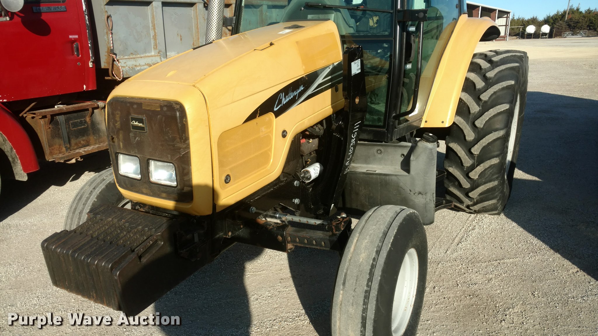 Purple Wave is selling a used Tractor in Kansas. This item is a Caterpillar Challenger MT455B tractor with the following: 5,627 hours on meter, Four cylinder diesel engine, Powershift transmission, 16F-16R gears, Enclosed cab, AC and heat, AM/FM, Suspension seat, Three point, 540 PTO, Draw bar, (3) rear hydraulic remotes, (12) suitcase weights, 10.00-16 front tires, 480/80R30 rear tires, Serial P027022