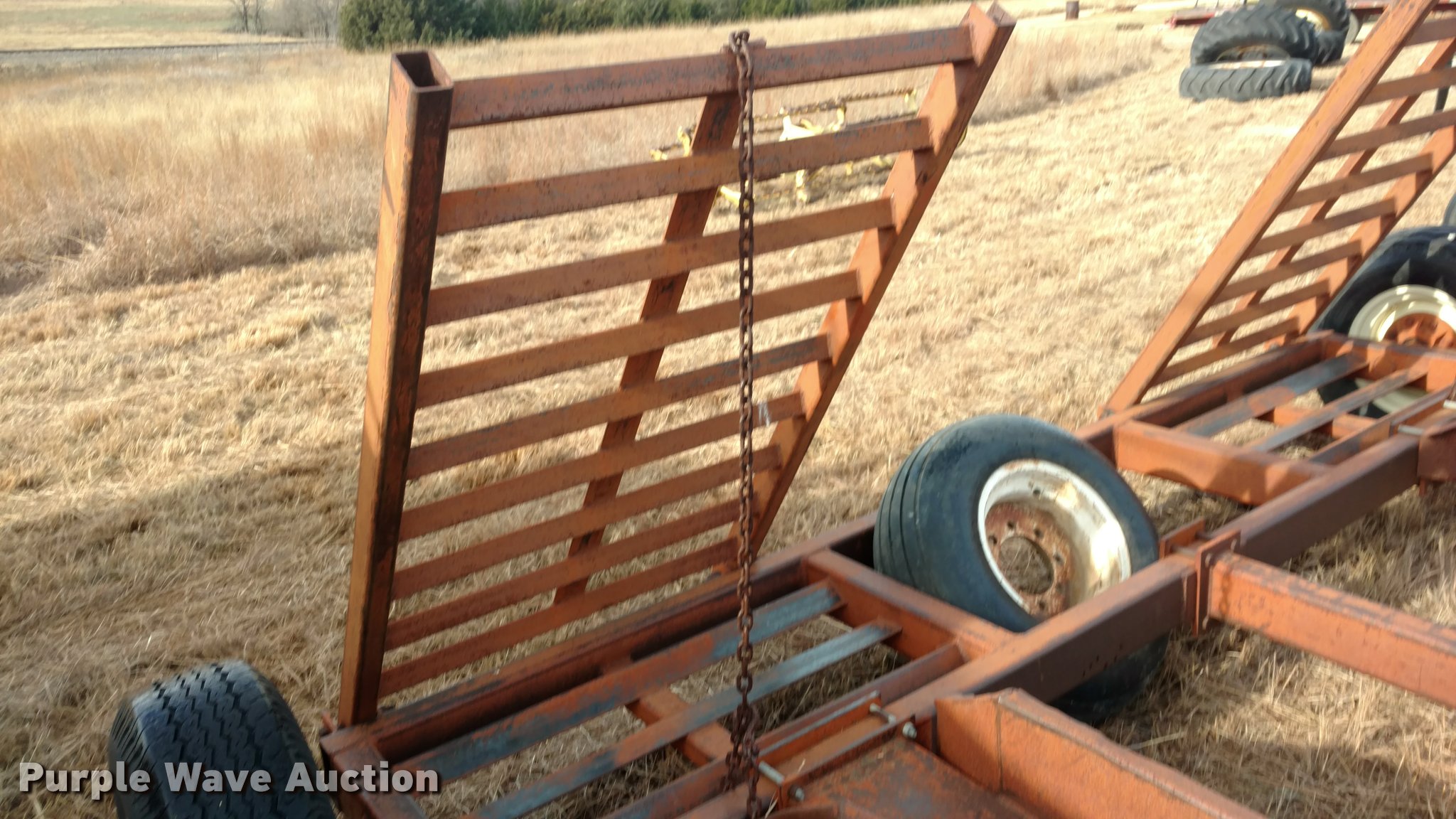 Purple Wave is selling a used Ag Equip. or Header Trailer in Kansas. This item is a Swather trailer with the following: 9.50-16.5 tires, Serial SG2661599