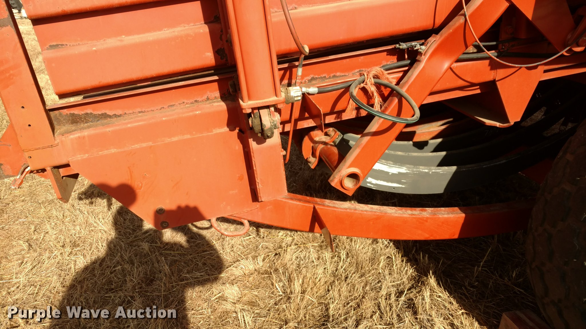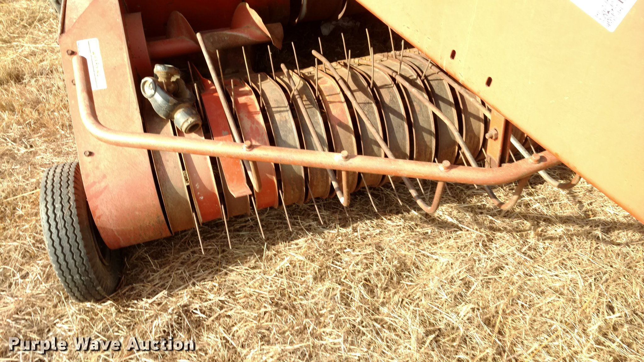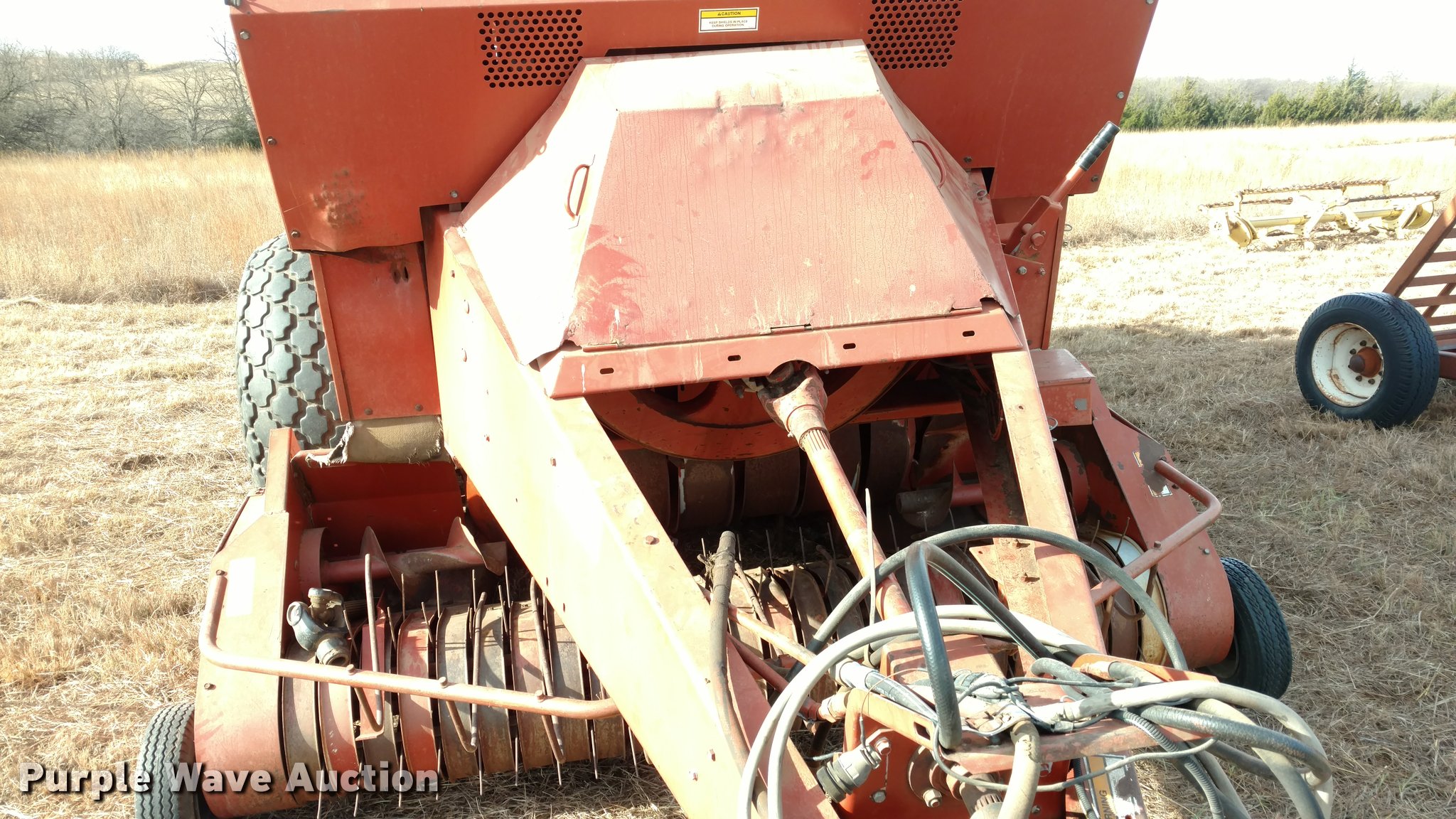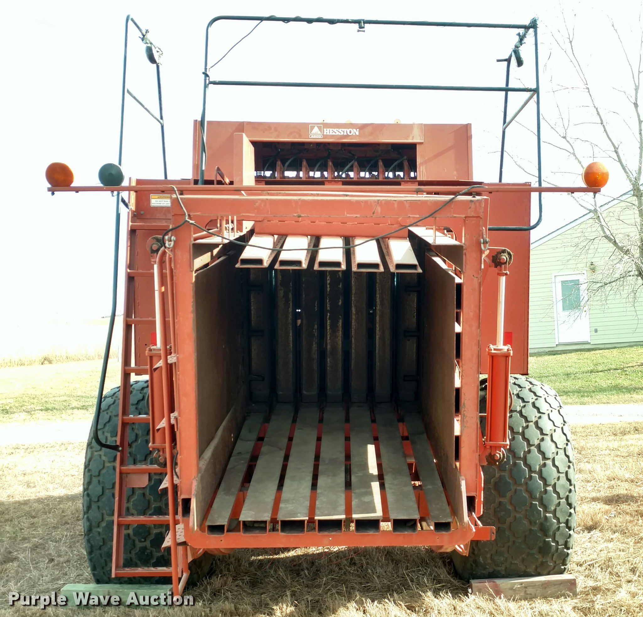 Purple Wave is selling a used Square Baler in Kansas. This item is a Hesston 4900 large square baler with the following: 4' x 4' bale capacity, 84"W pickup, Hydraulic lift, 4.80-8 gauge wheels, Twine tie, (24) twine ball compartment, Double knot knotters, Bale chute, 1000 PTO, 28L-26 tires, Serial BB4903072