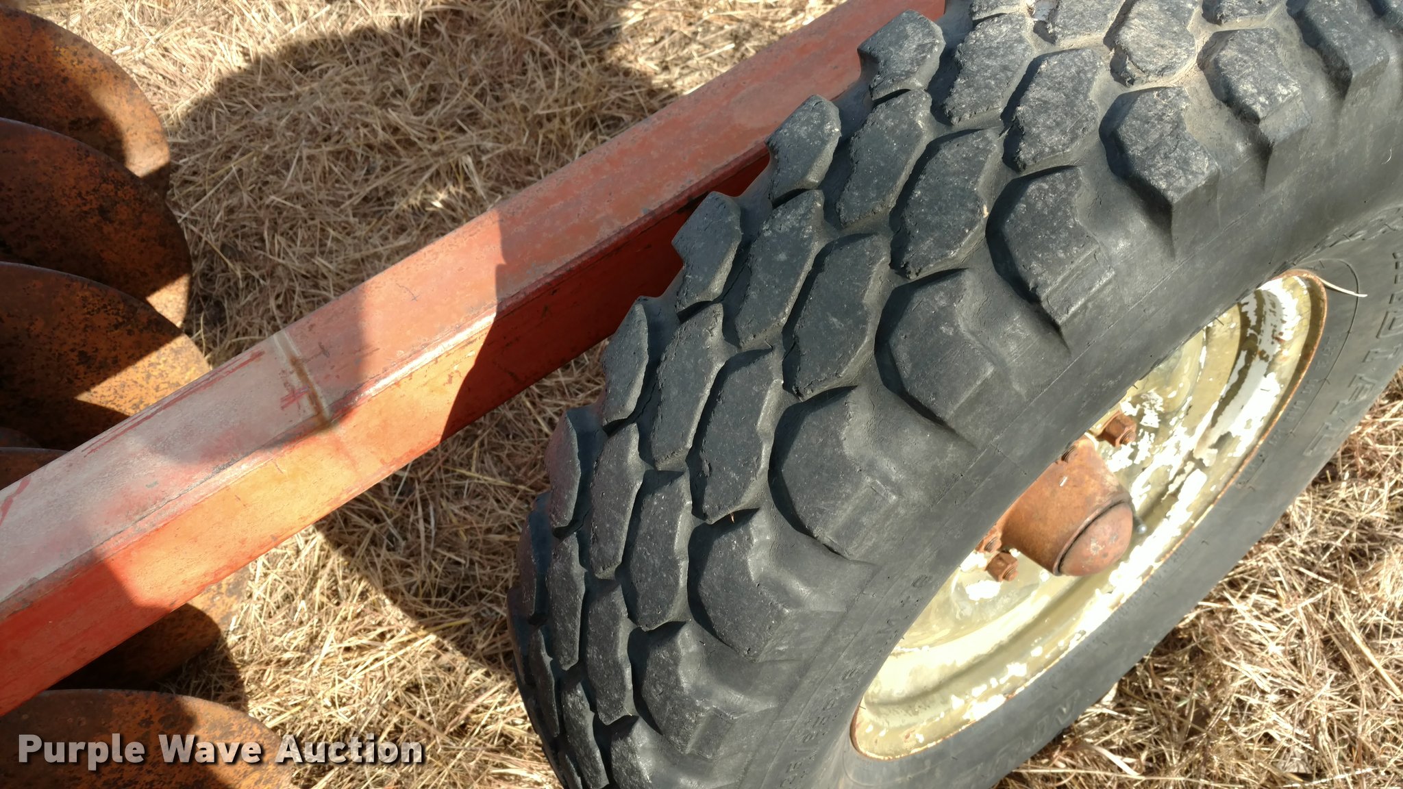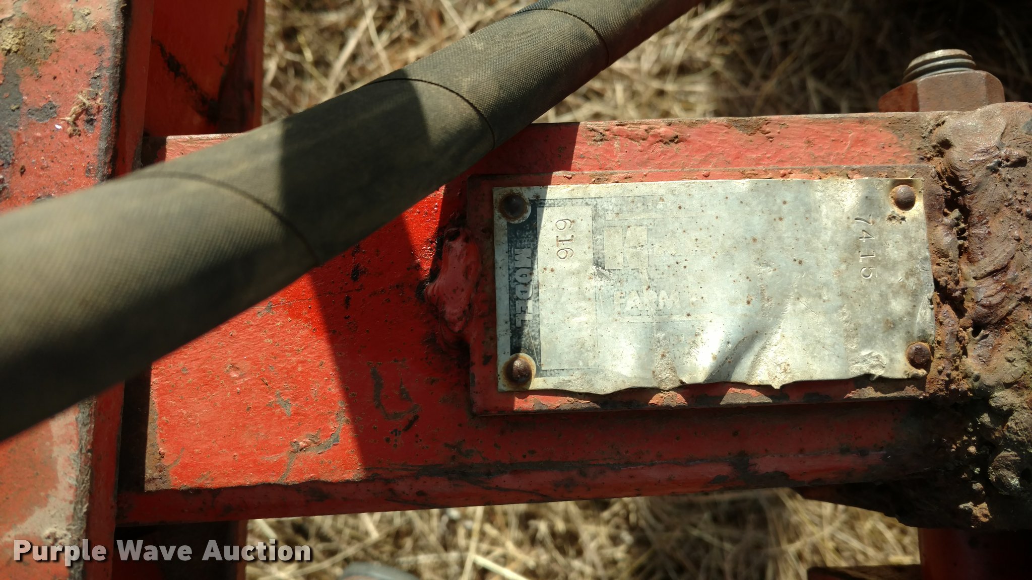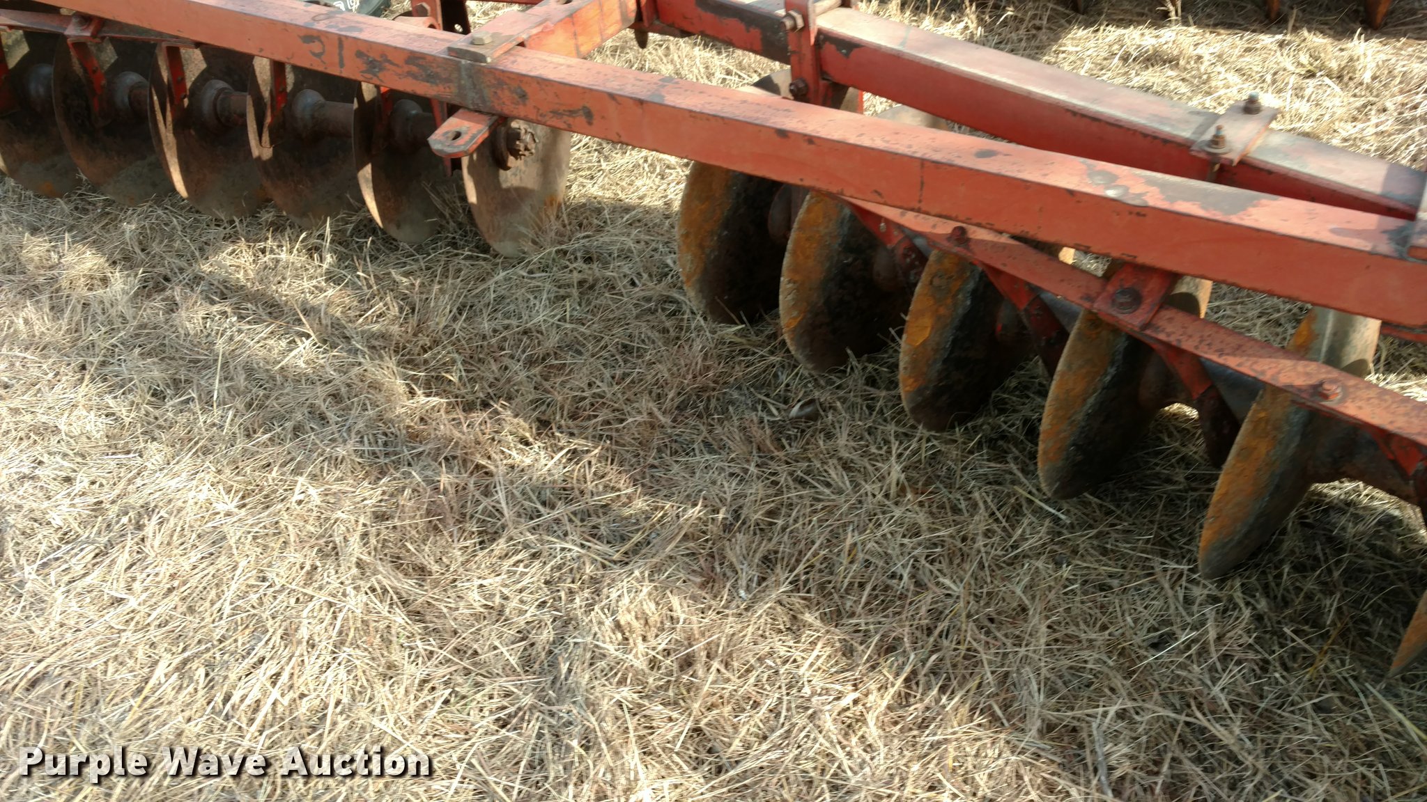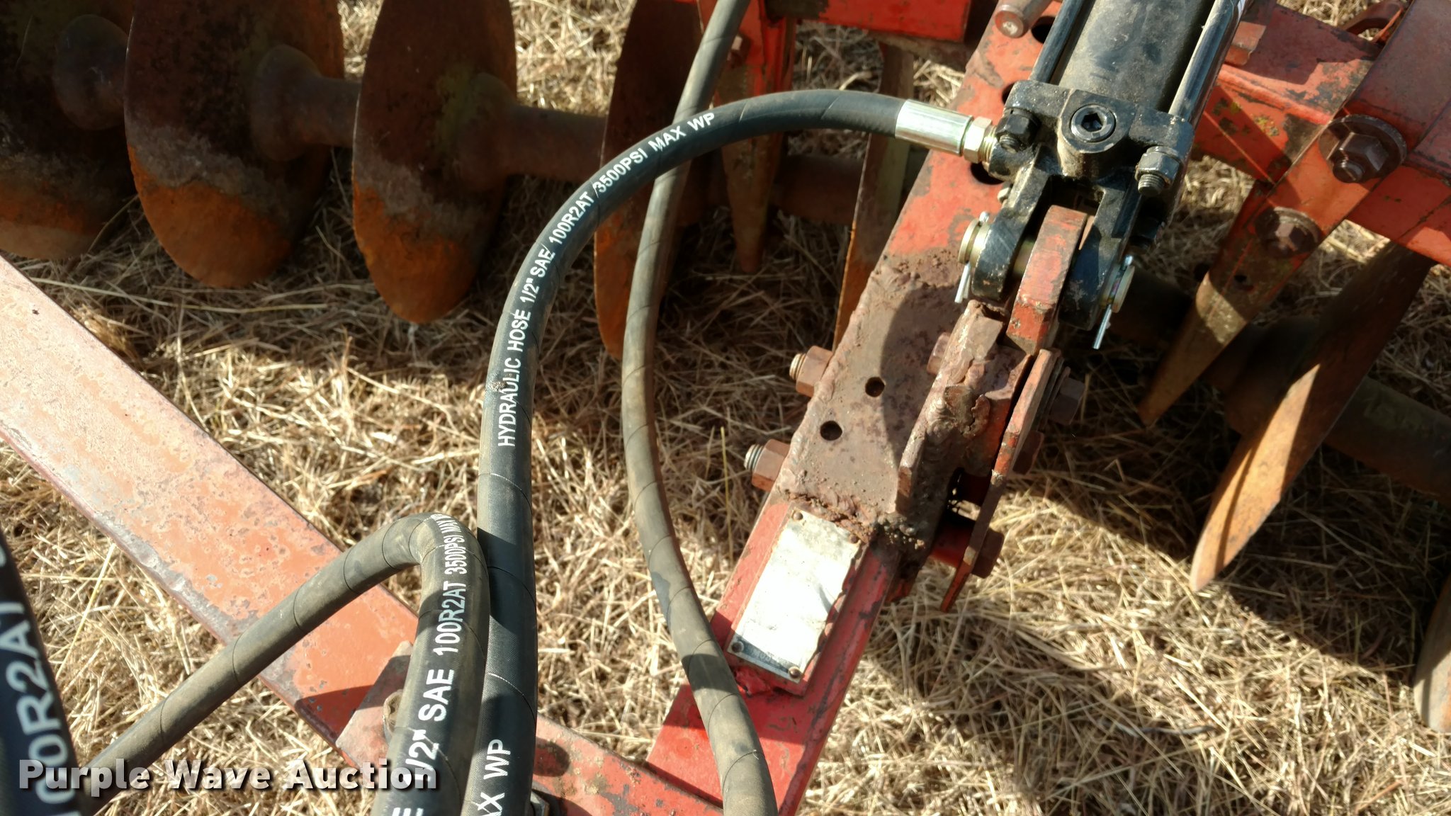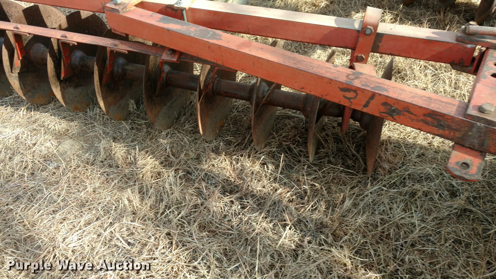 Purple Wave is selling a used Disk in Kansas. This item is a Double off-set disk with the following: Model 616, 16'W, Hydraulic lift, Blade cleaners, 16" tires, Serial 7415