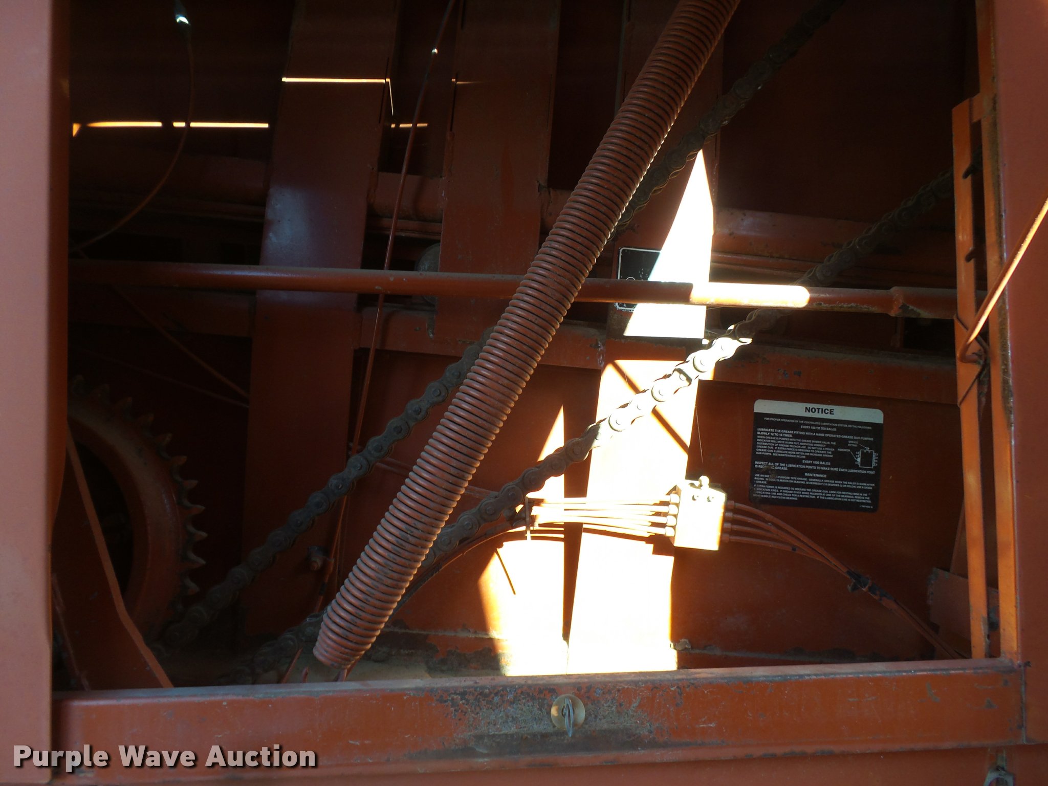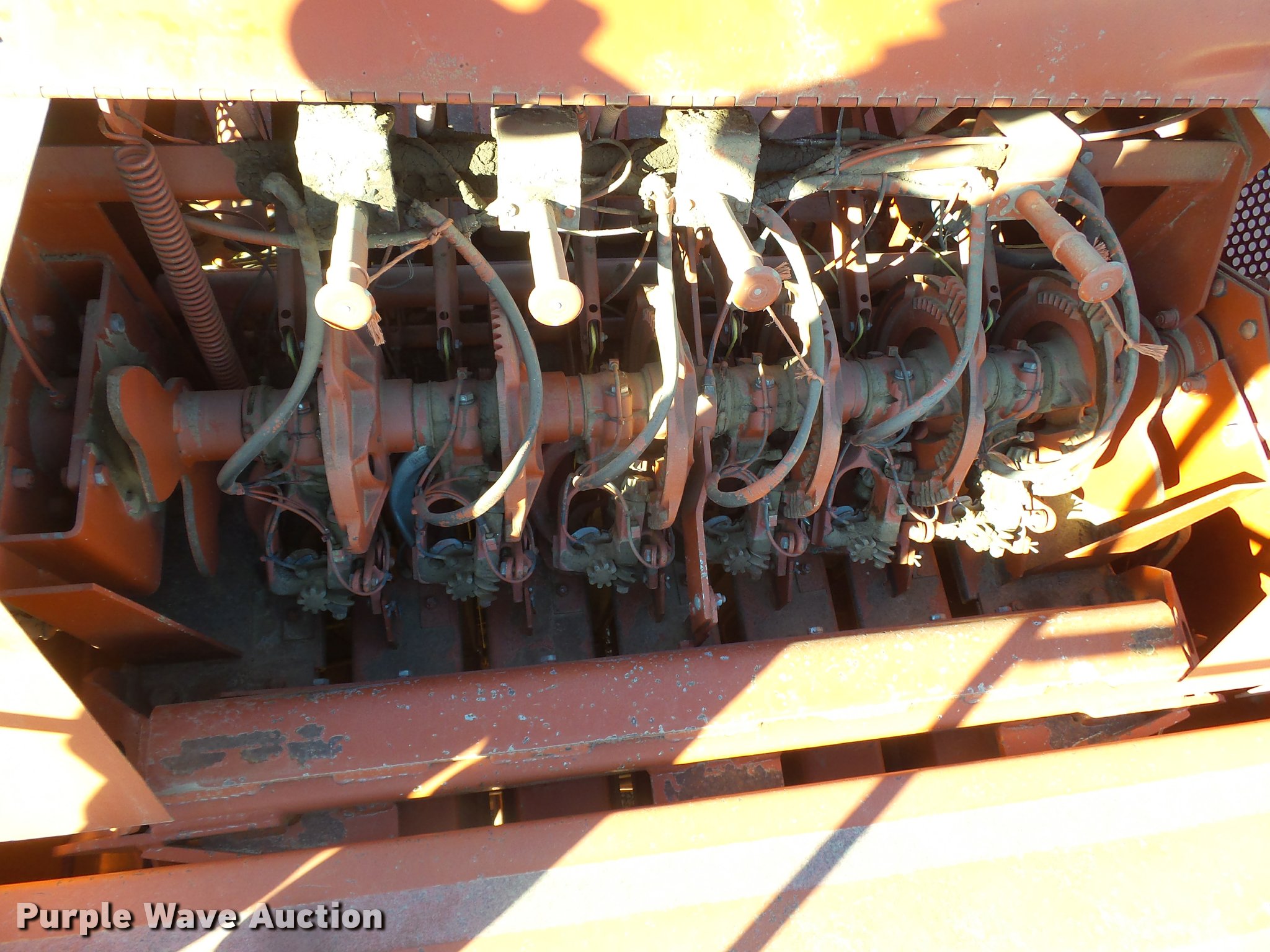 1993 AGCO Hesston 4900 large square baler. Approx. 26,047 bales, 4' x 4' bale capacity, 84"W pickup, Hydraulic pickup lift, Twine tie, Knotters, Hesston bale accumulator Three bale capacity, Serial BA4900445, Large 1000 PTO, Pin hitch, 28L-26 tires, Serial BB4901369. Lang Diesel, Inc.. 4575 E Hwy 50 Plaza. Garden City, KS 67846