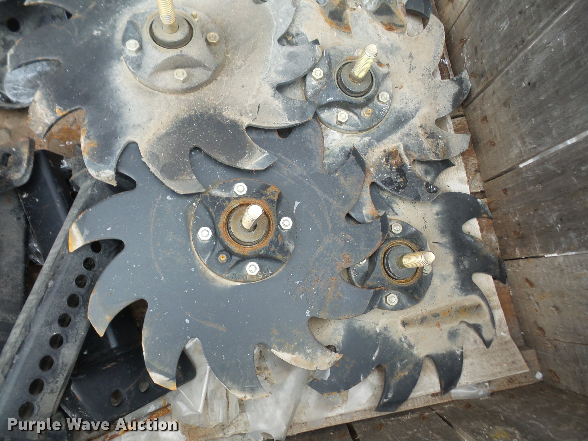 Purple Wave is selling a used Planter or Seeder Attach. in Kansas. This item is a (6) Yetter no-till row cleaners with the following: (6) blades, (6) mounting arms, (6) hub covers, Unused, Stock# 151772