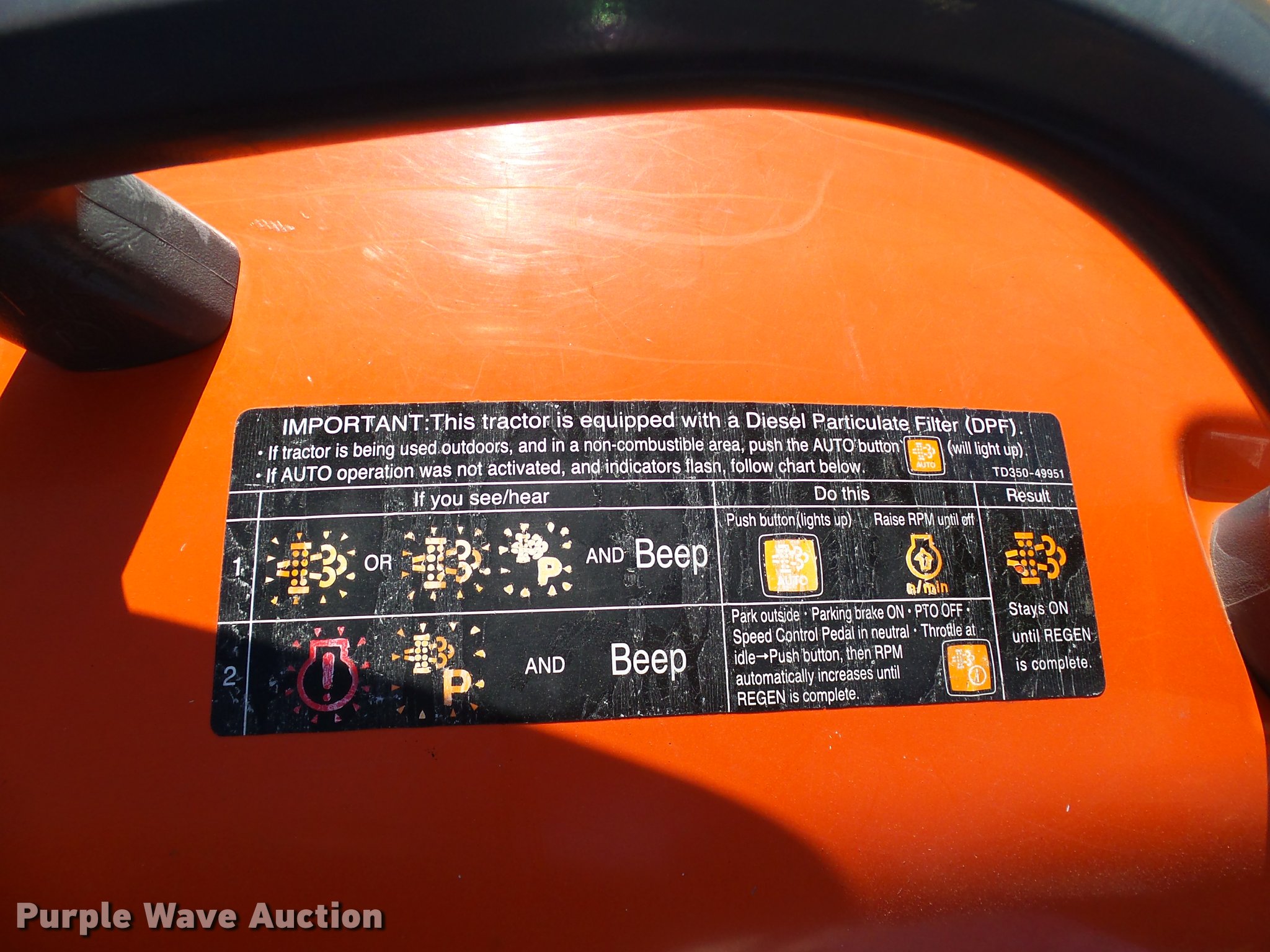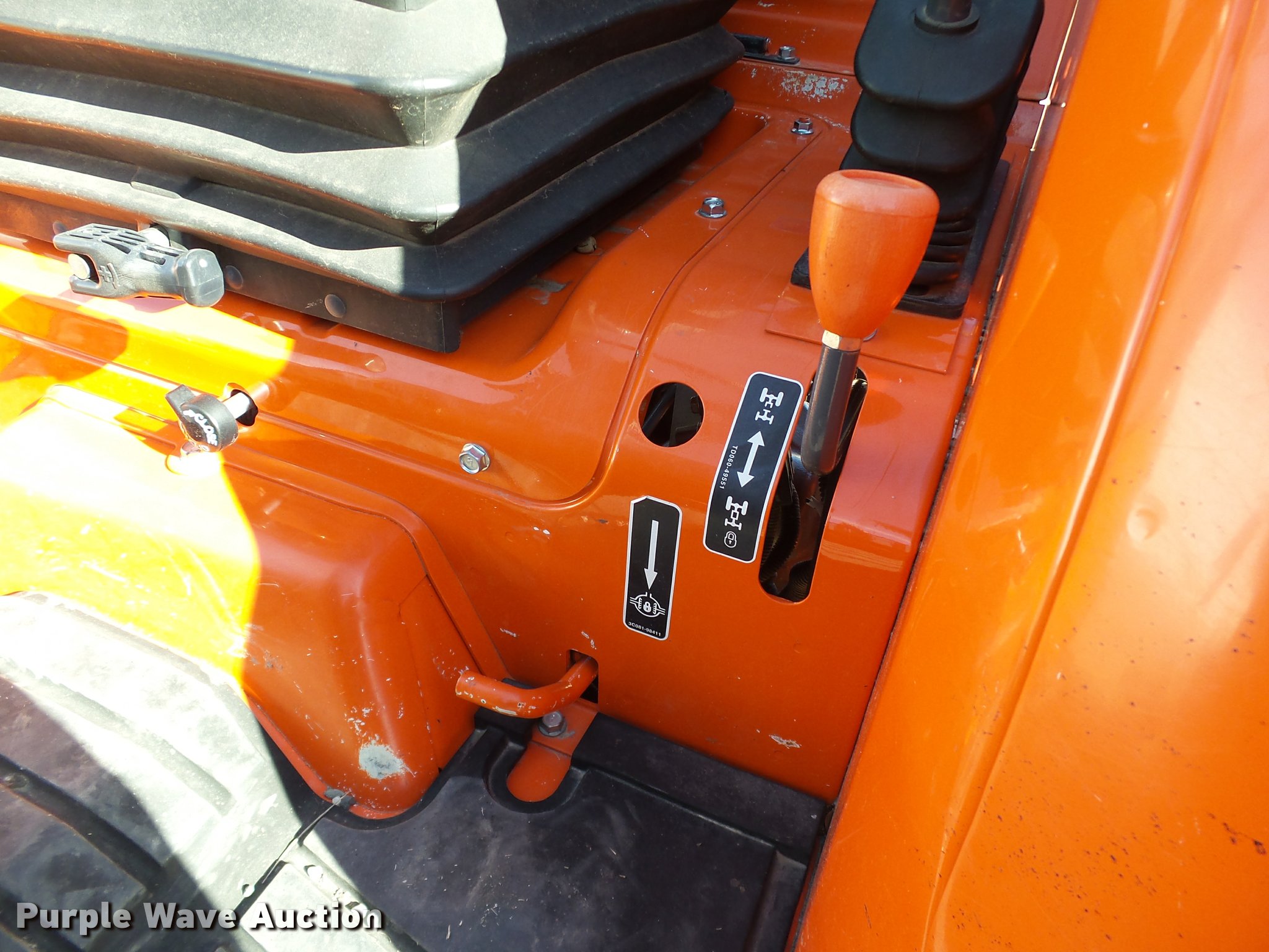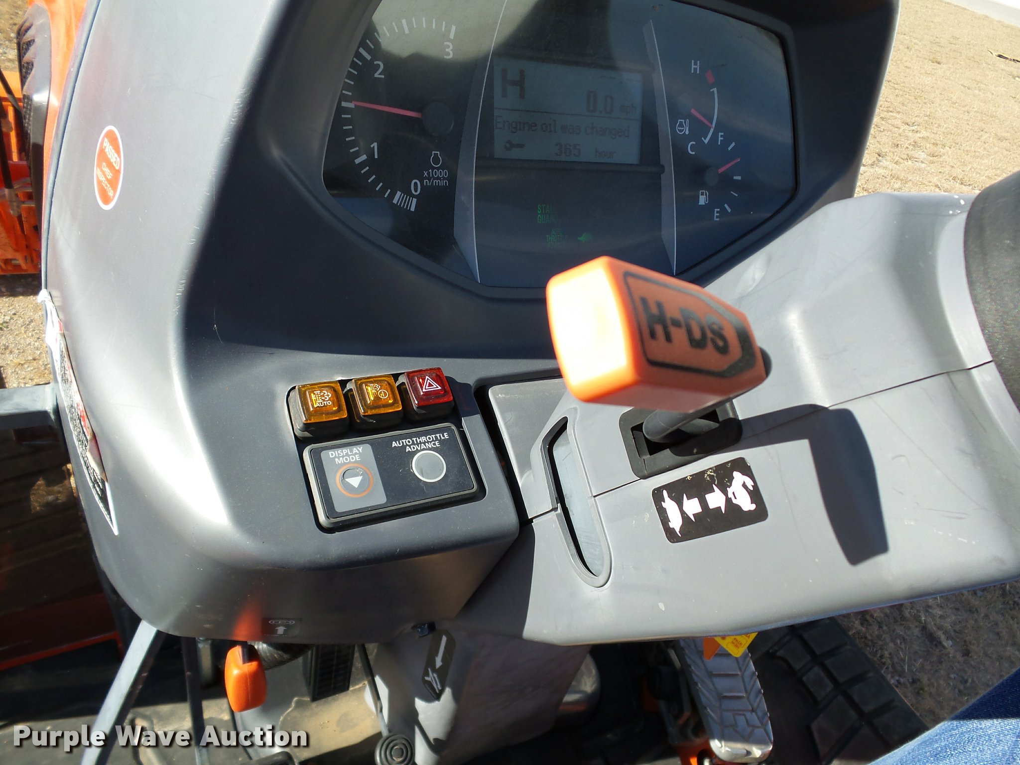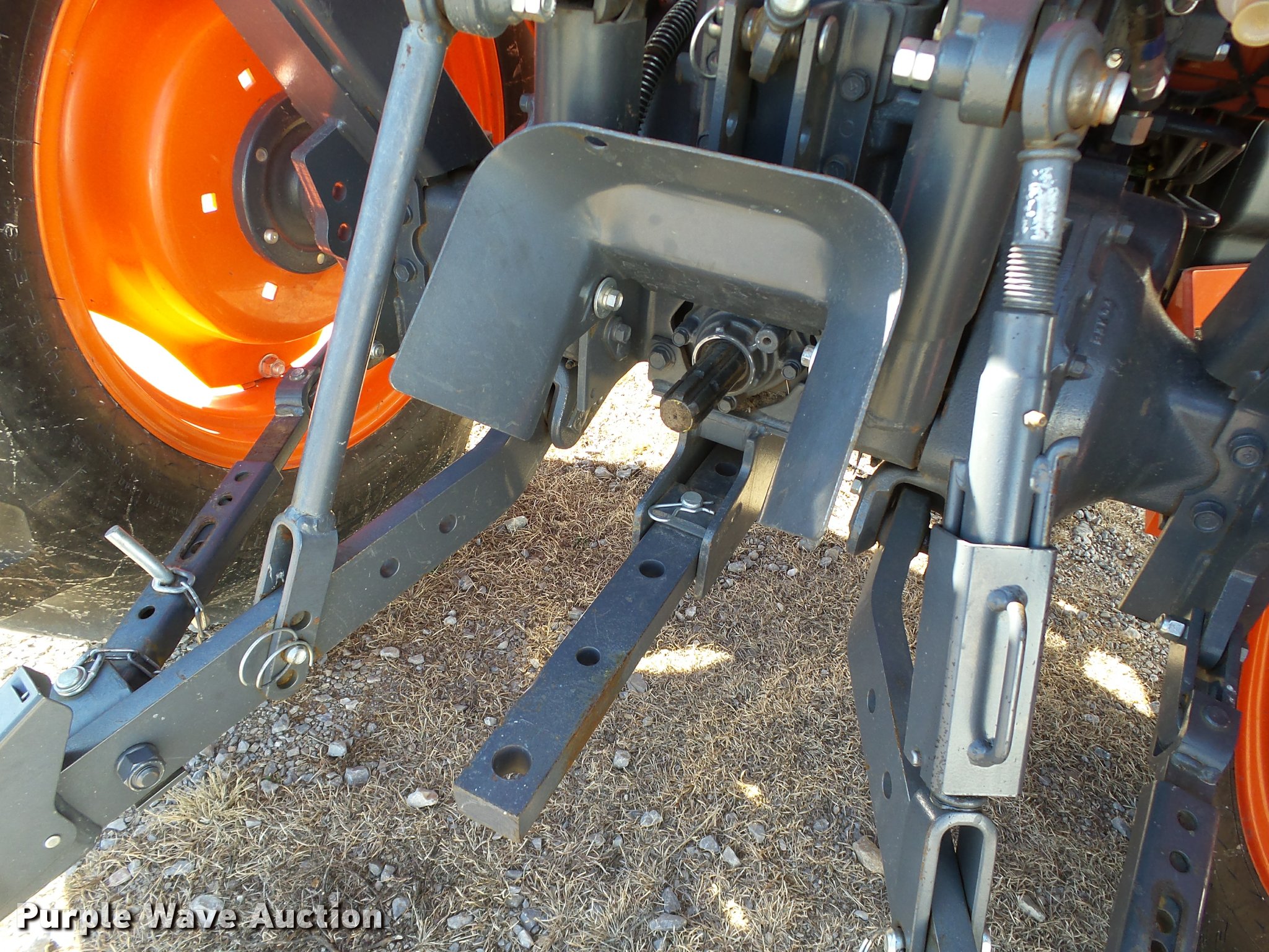 Purple Wave is selling a used Tractor in Oklahoma. This item is a 2013 Kubota L3560 HST MFWD tractor with the following: 569 hours on meter, Kubota D1803 1.8L three cylinder diesel engine, 37 HP, Hydrostatic transmission, Three range with hydro dual speed technology, Infinitely variable, Differential lock, ROPS bar, Tilt steering wheel, Suspension seat, Kubota LA555 loader, 72"W bucket, Manual quick attach, Joystick controls, Three point, Top link, 540 PTO, Draw bar, Rear hydraulic remote set, 71" wheelbase, Titan 10-16.5 NHS front tires, Firestone 420/70-24 rear tires, Serial L3560D30850
