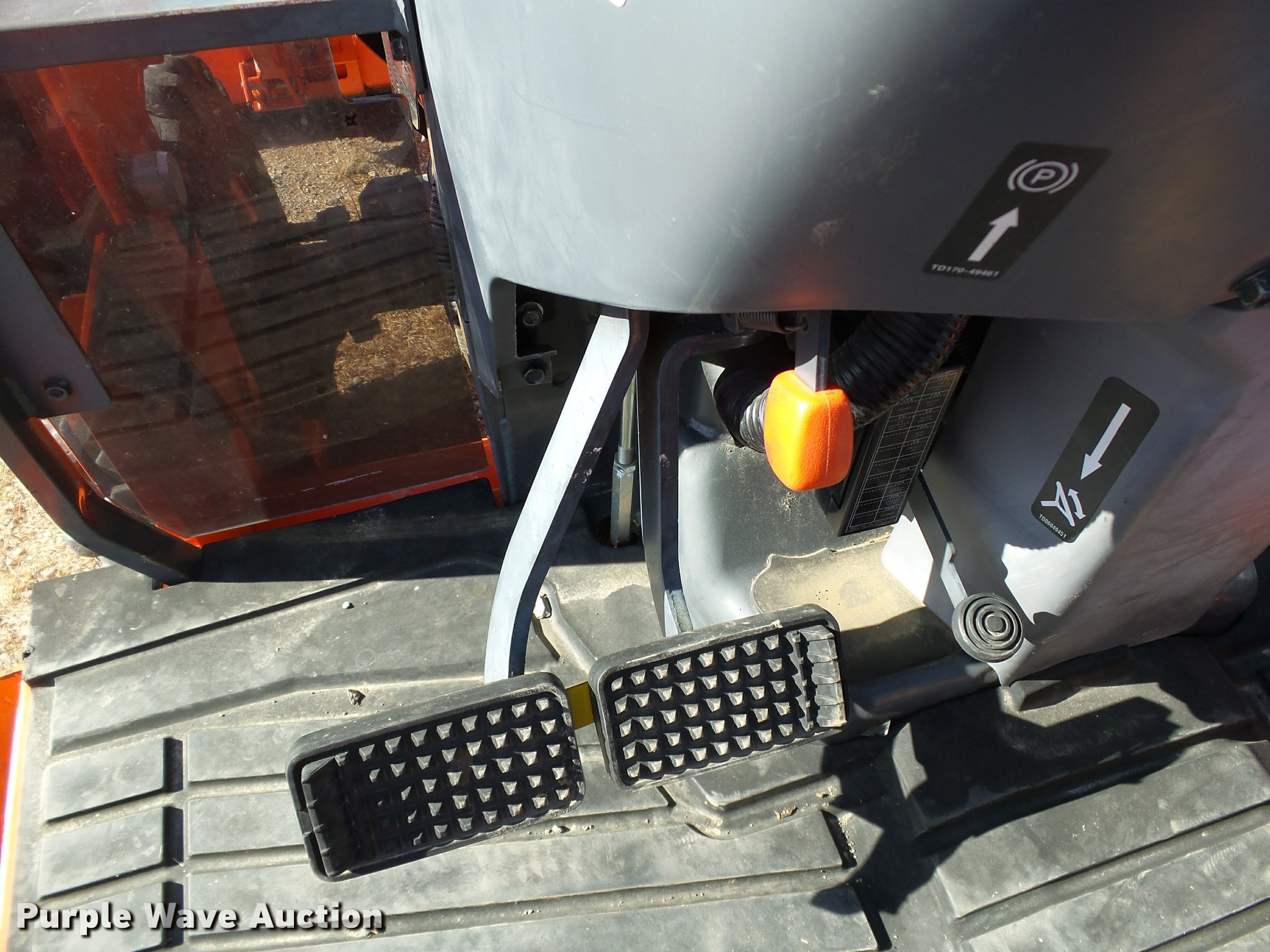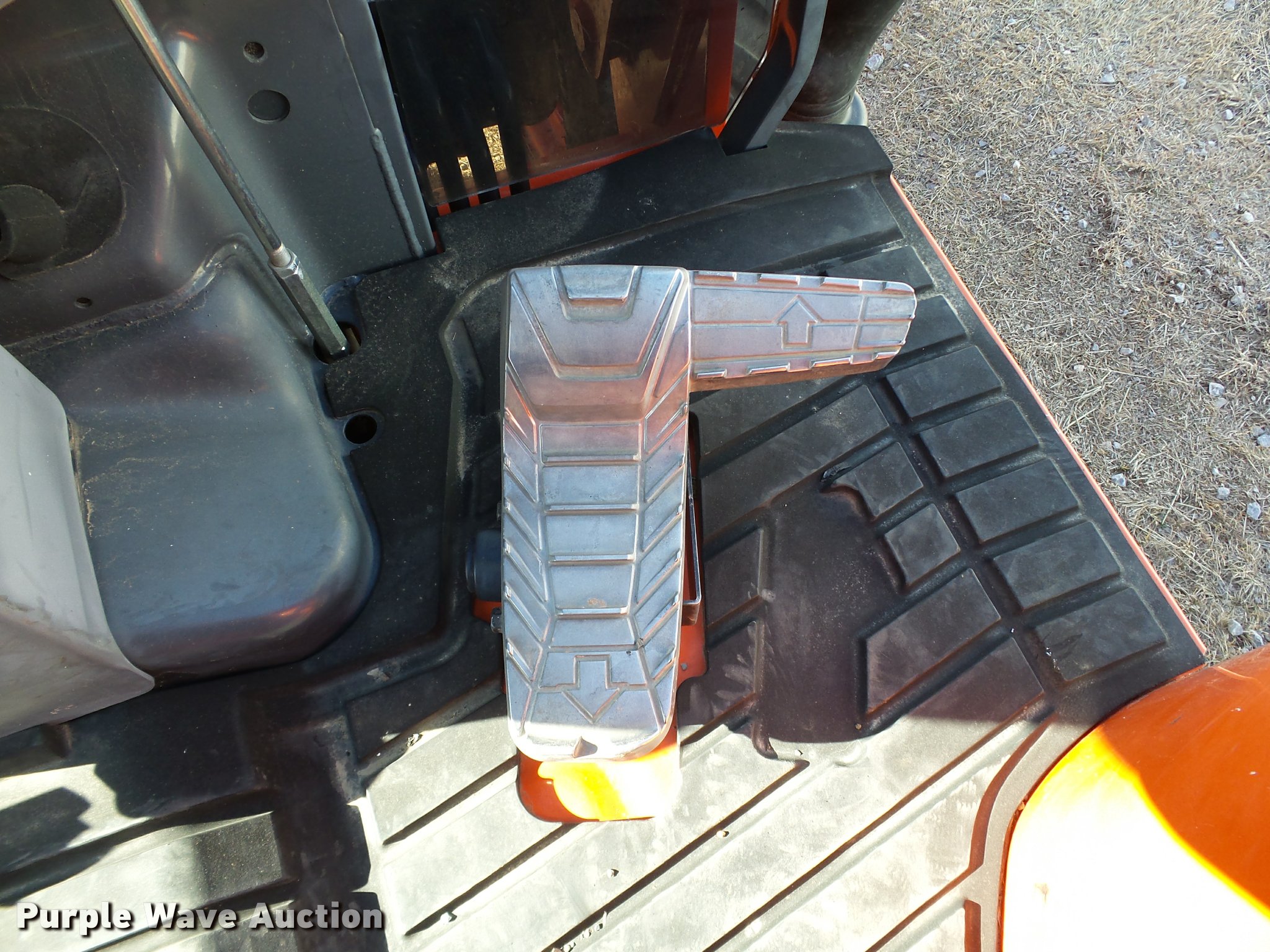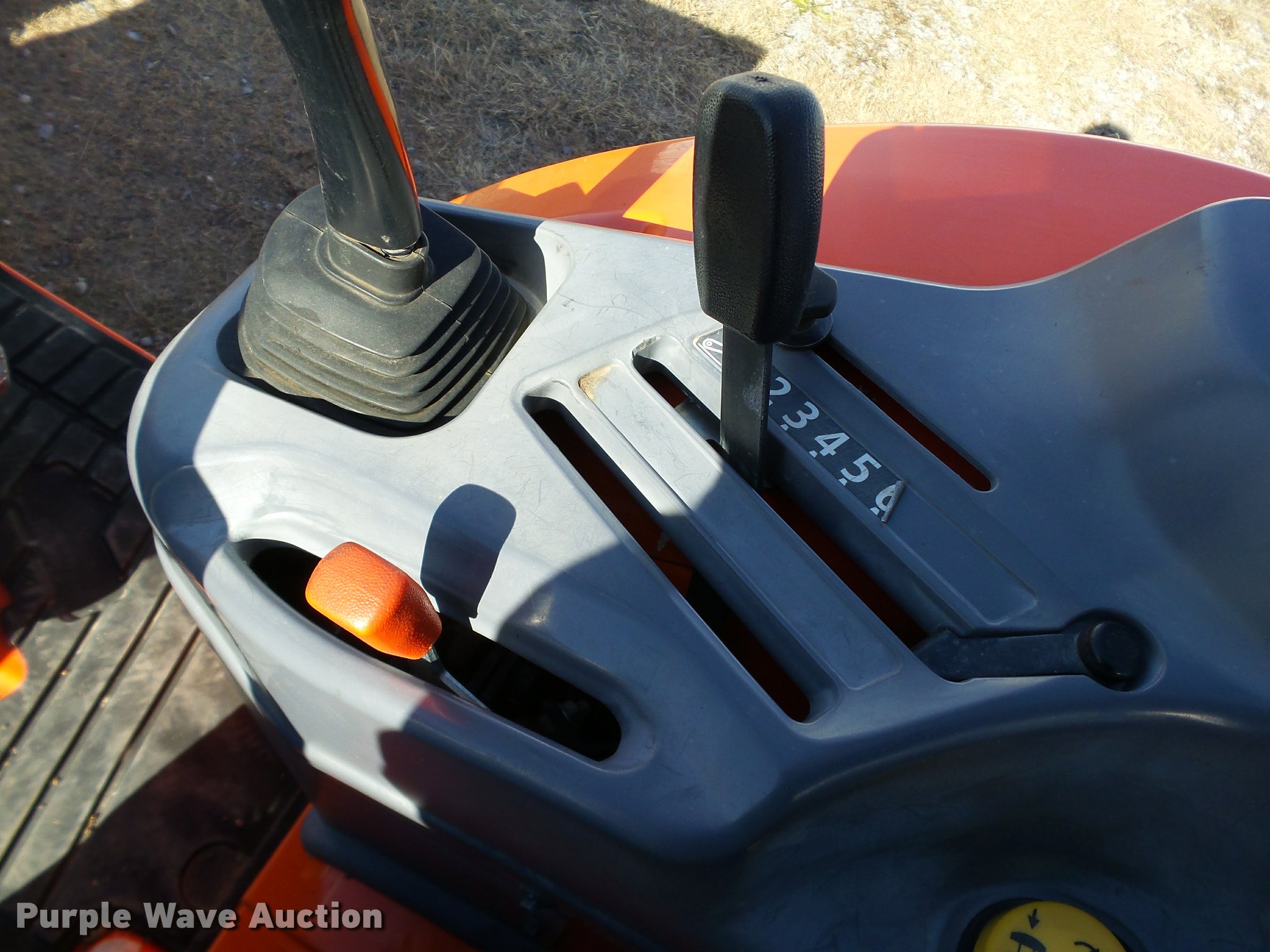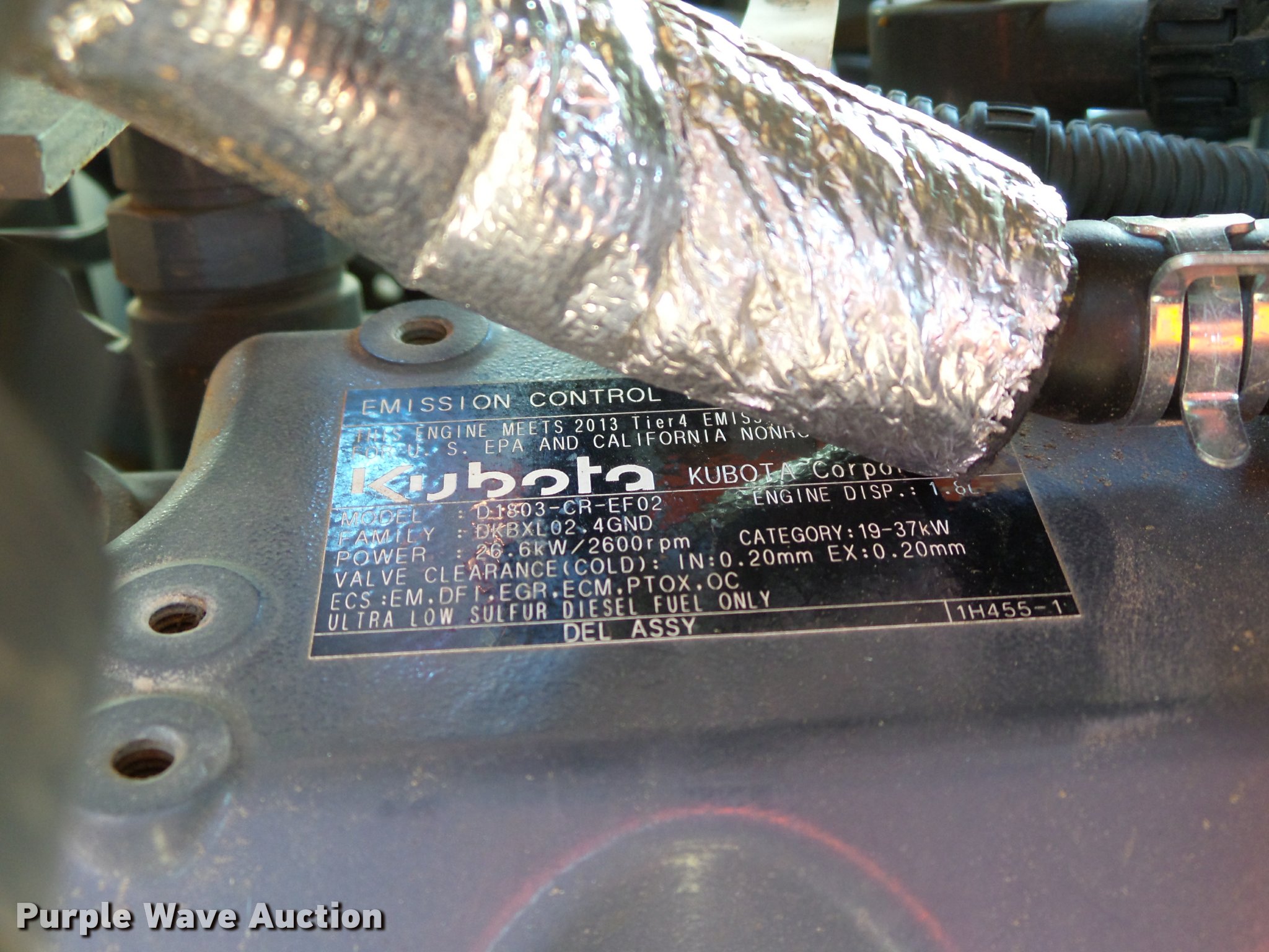 Purple Wave is selling a used Tractor in Oklahoma. This item is a 2013 Kubota L3560 HST MFWD tractor with the following: 569 hours on meter, Kubota D1803 1.8L three cylinder diesel engine, 37 HP, Hydrostatic transmission, Three range with hydro dual speed technology, Infinitely variable, Differential lock, ROPS bar, Tilt steering wheel, Suspension seat, Kubota LA555 loader, 72"W bucket, Manual quick attach, Joystick controls, Three point, Top link, 540 PTO, Draw bar, Rear hydraulic remote set, 71" wheelbase, Titan 10-16.5 NHS front tires, Firestone 420/70-24 rear tires, Serial L3560D30850