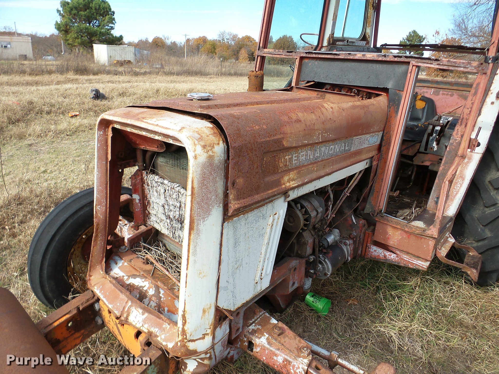 Purple Wave is selling a used Tractor in Oklahoma. This item is a International 454 tractor with the following: 4,885 hours on meter, Three cylinder diesel engine, Manual transmission, 8F-4R gears, Three point, 540 PTO, Rotary mower, 5'W, Three point, 6.00-16 front tires, 12.4/11-32 rear tires, Dead battery