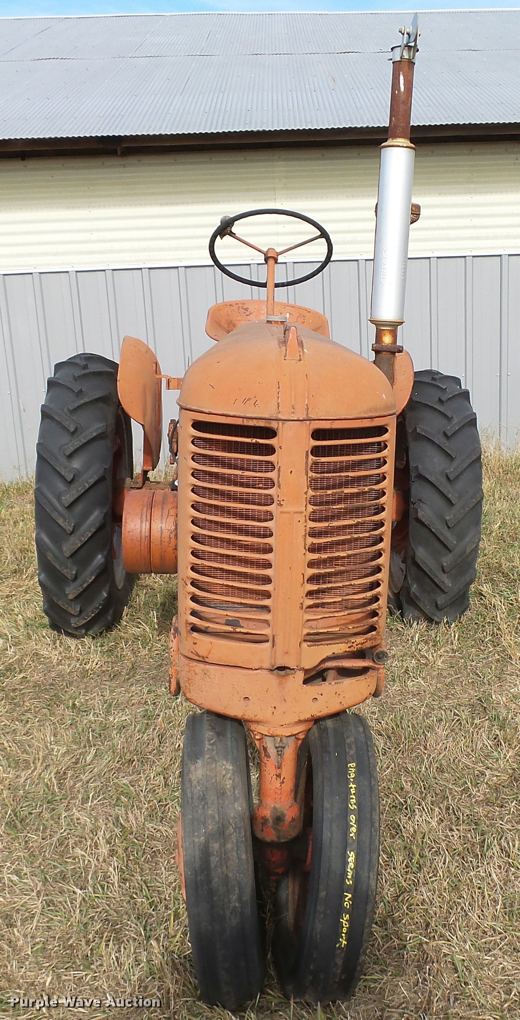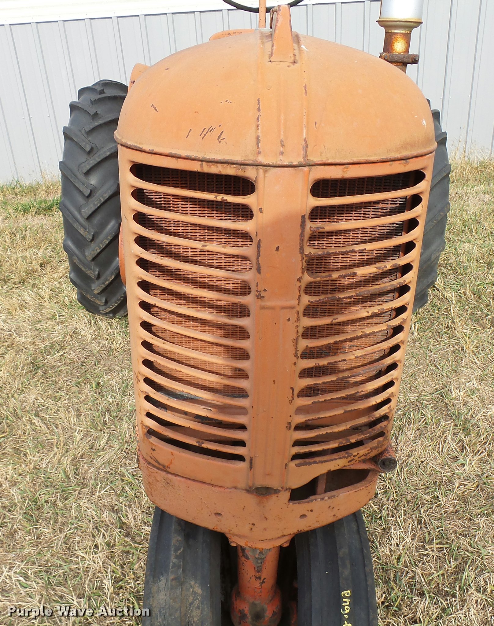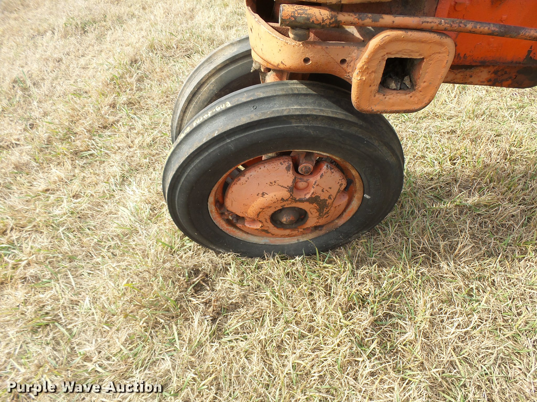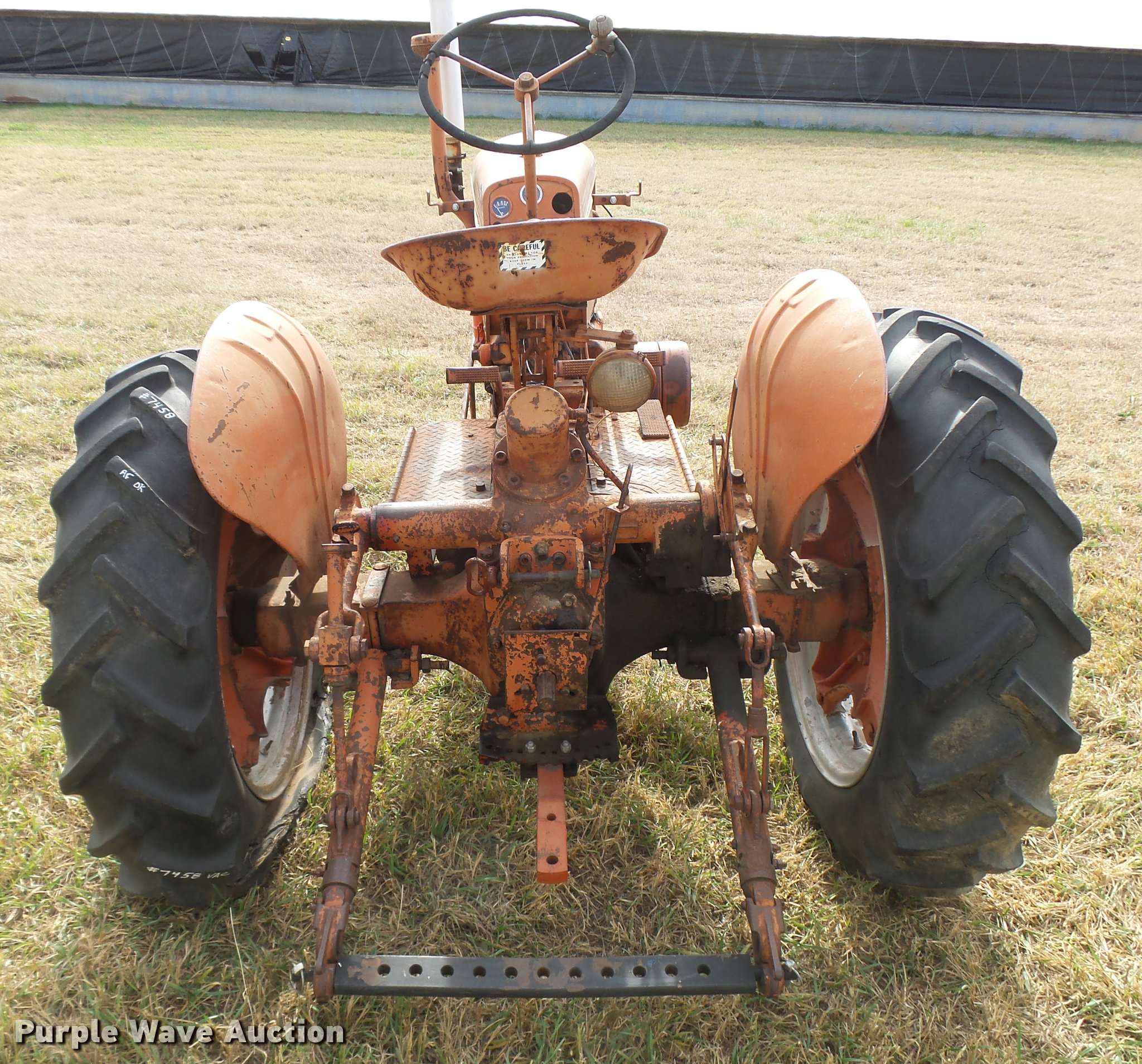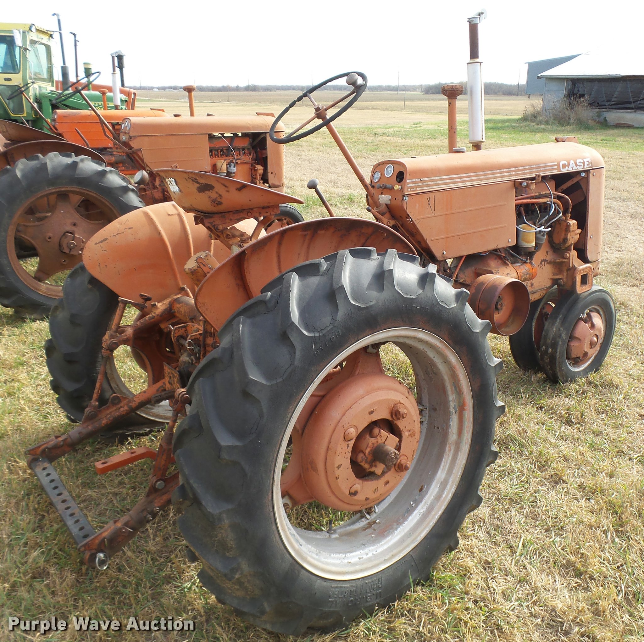 Purple Wave is selling a used Tractor in Kansas. This item is a 1950 Case VAC tractor with the following: Four cylinder gas engine, Four speed manual transmission, Electric start, Side pulley, Three point, 540 PTO, Draw bar, Front wheel weights, Rear outside wheel weights, 5.00x15 front tires, 11.2x28 rear tires, One tire flat, No hand crank, Engine turns over, but will not start, Serial 5451642, Unit# 7458