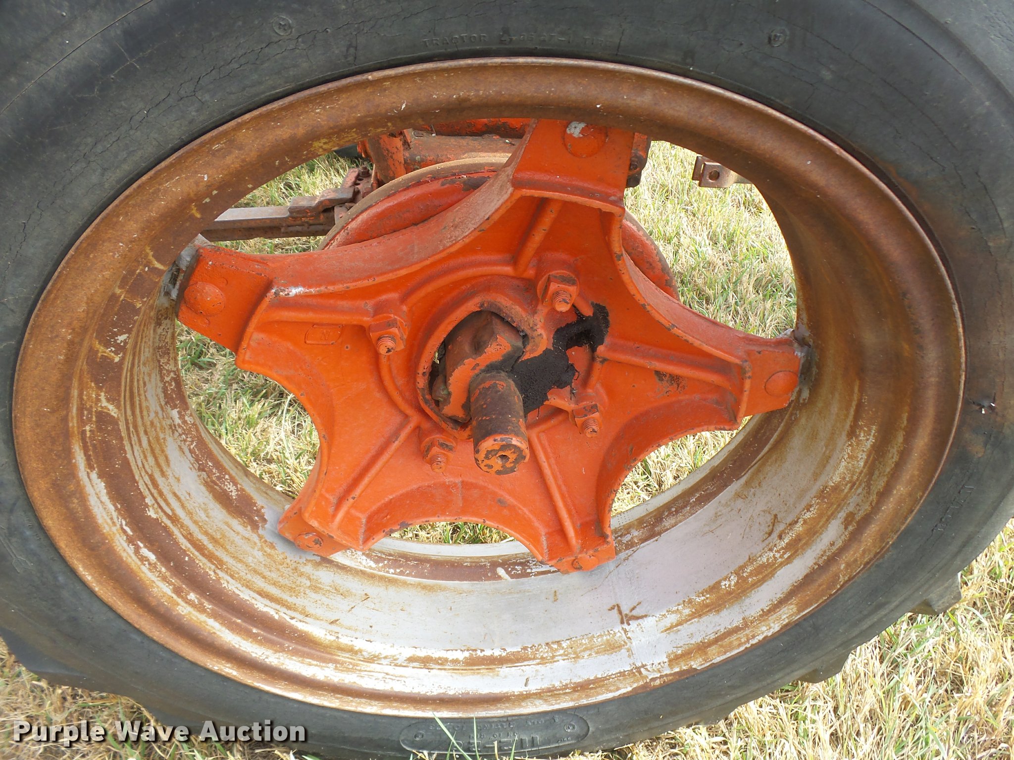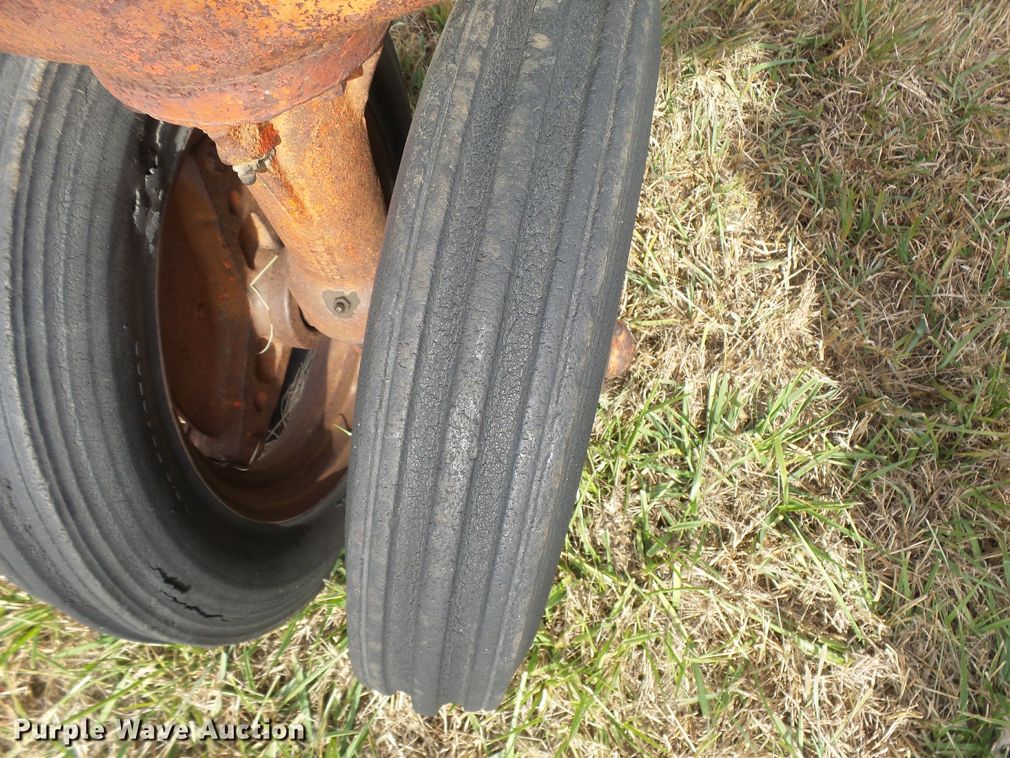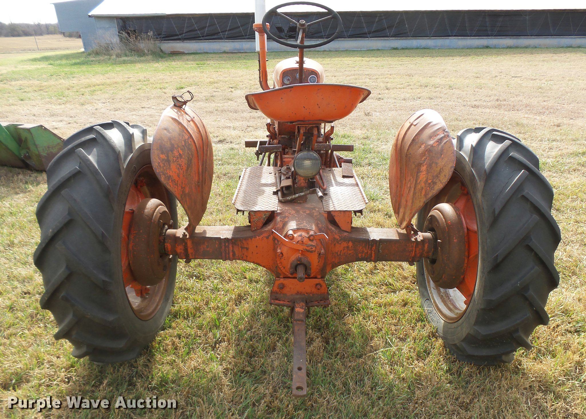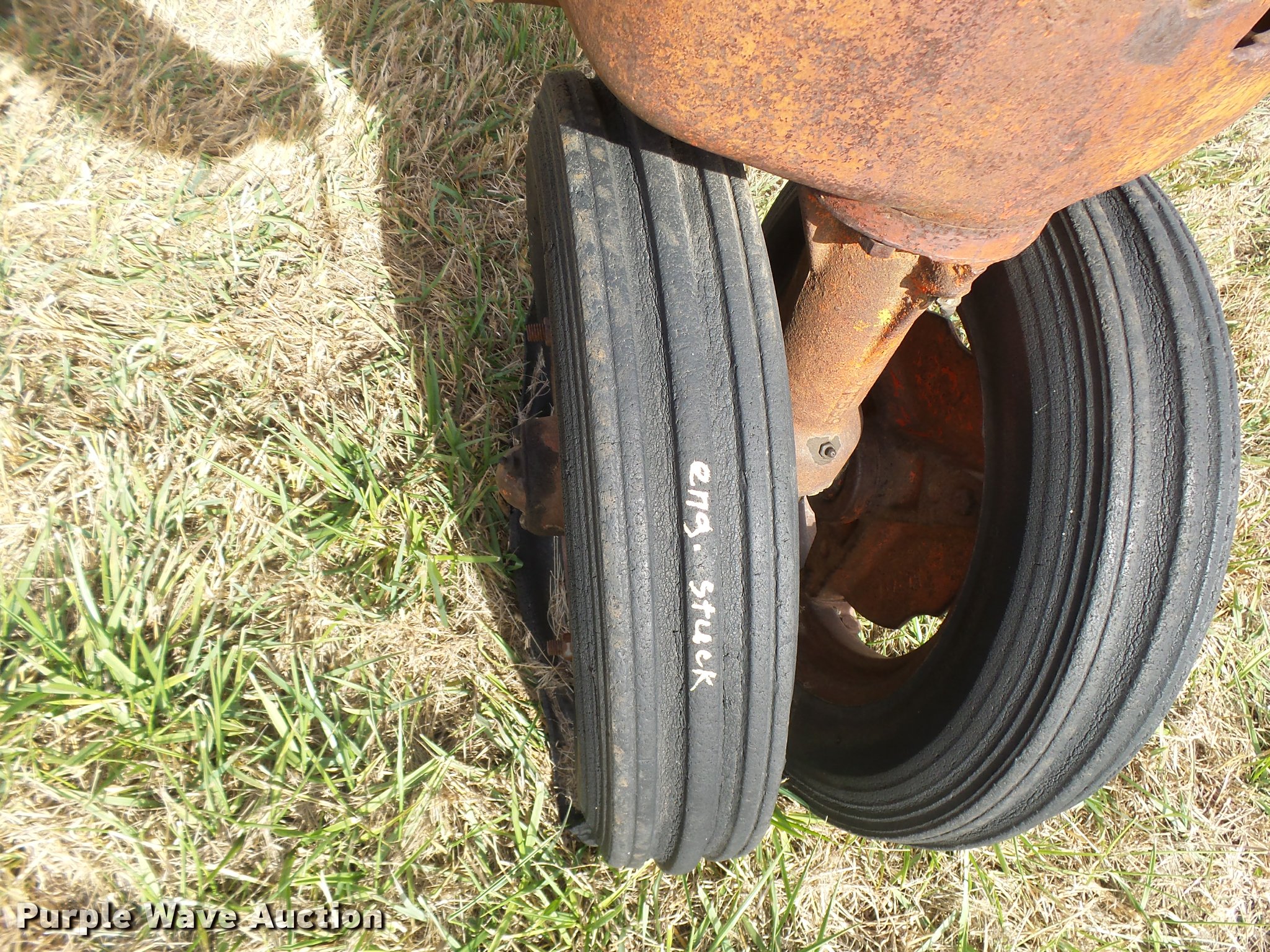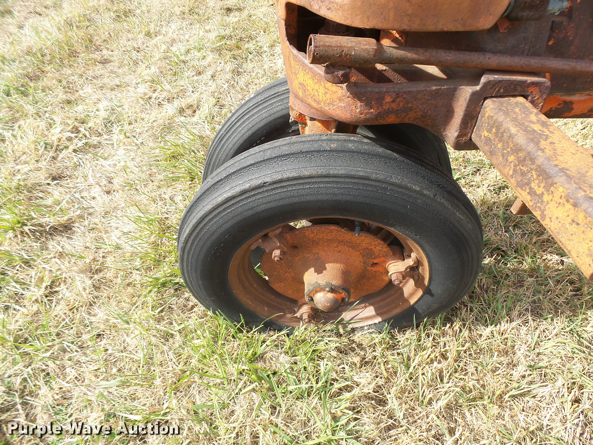 Purple Wave is selling a used Tractor in Kansas. This item is a 1947 Case VAC tractor with the following: Four cylinder gas engine, Locked up, Four speed manual transmission, Hand crank, Electric start, 540 PTO, Draw bar, Tricycle front end, Inner rear wheel weights, 5.00x15 front tires, 11.2x28 rear tires, Front tires flat, Side pulley missing, Serial VAC5165477, Unit# 7459