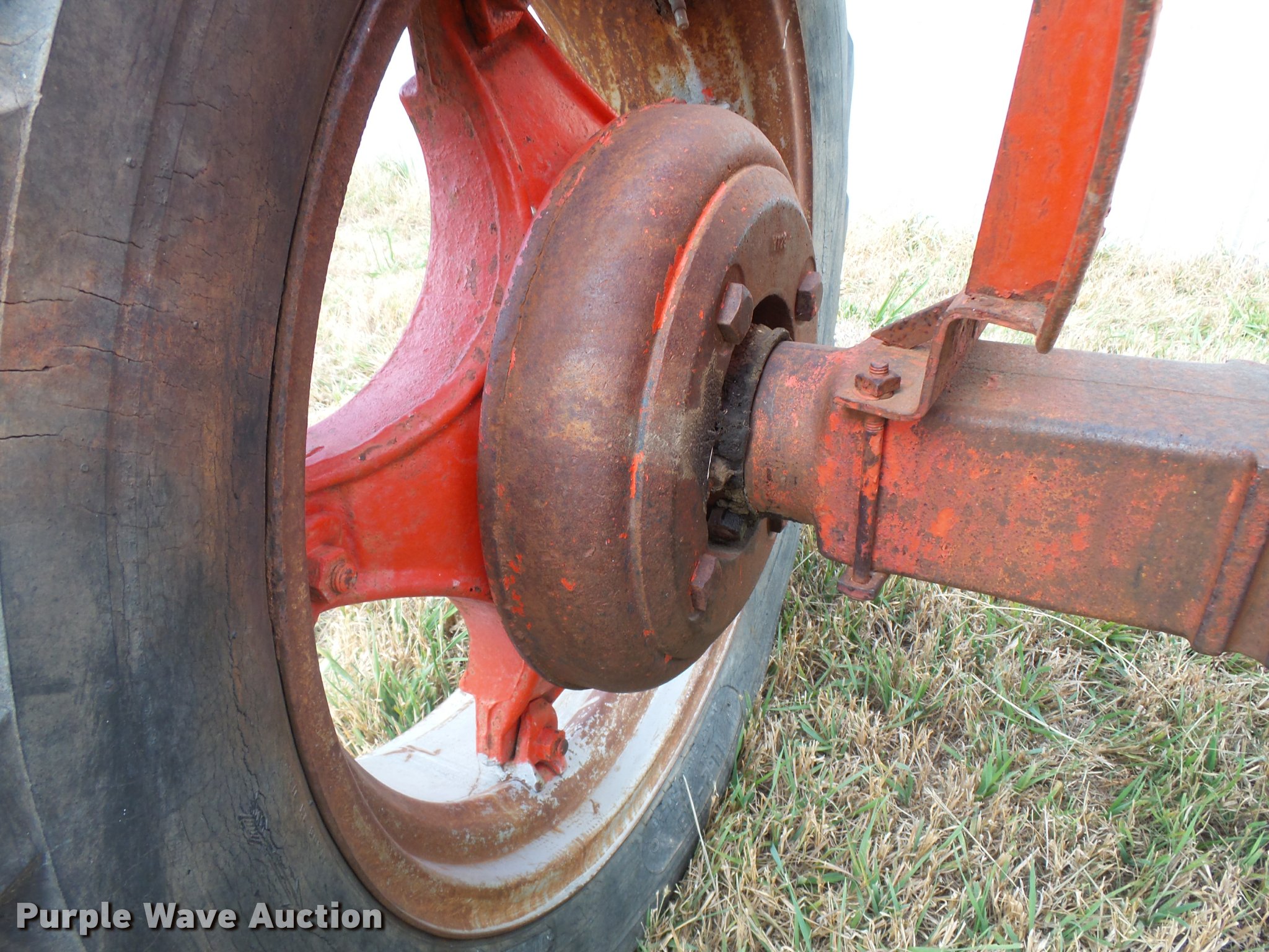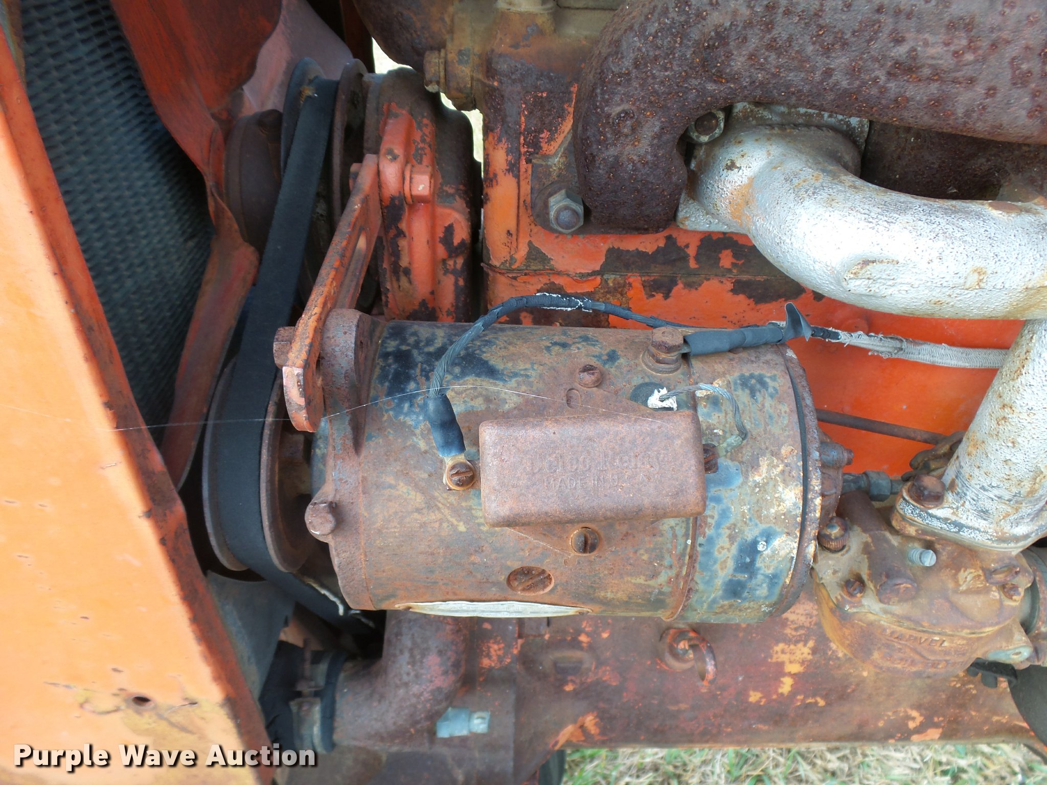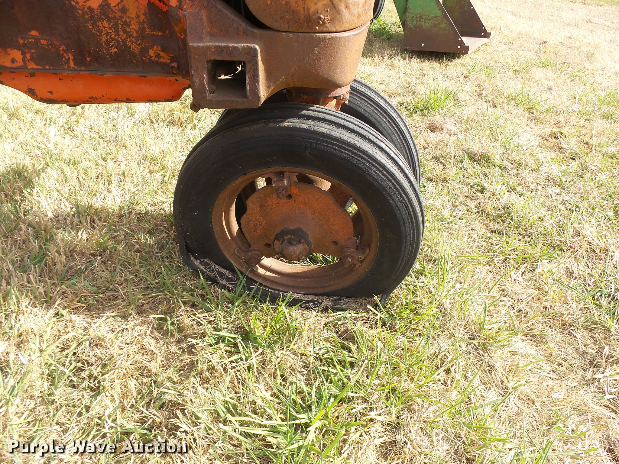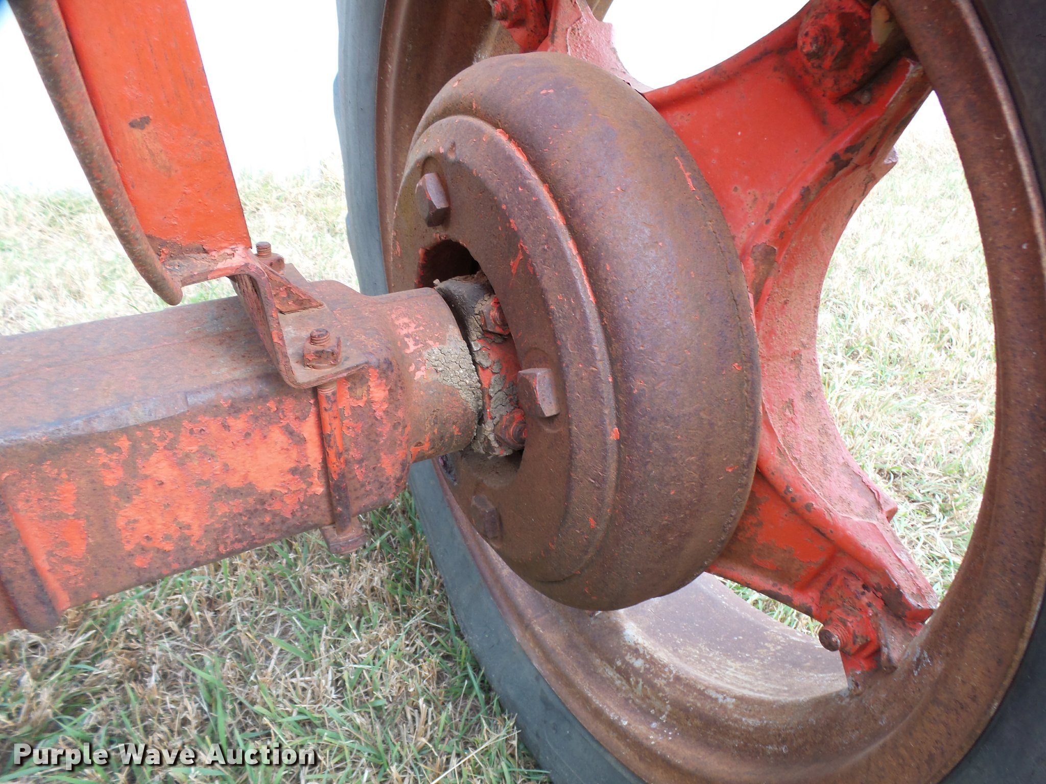 Purple Wave is selling a used Tractor in Kansas. This item is a 1947 Case VAC tractor with the following: Four cylinder gas engine, Locked up, Four speed manual transmission, Hand crank, Electric start, 540 PTO, Draw bar, Tricycle front end, Inner rear wheel weights, 5.00x15 front tires, 11.2x28 rear tires, Front tires flat, Side pulley missing, Serial VAC5165477, Unit# 7459