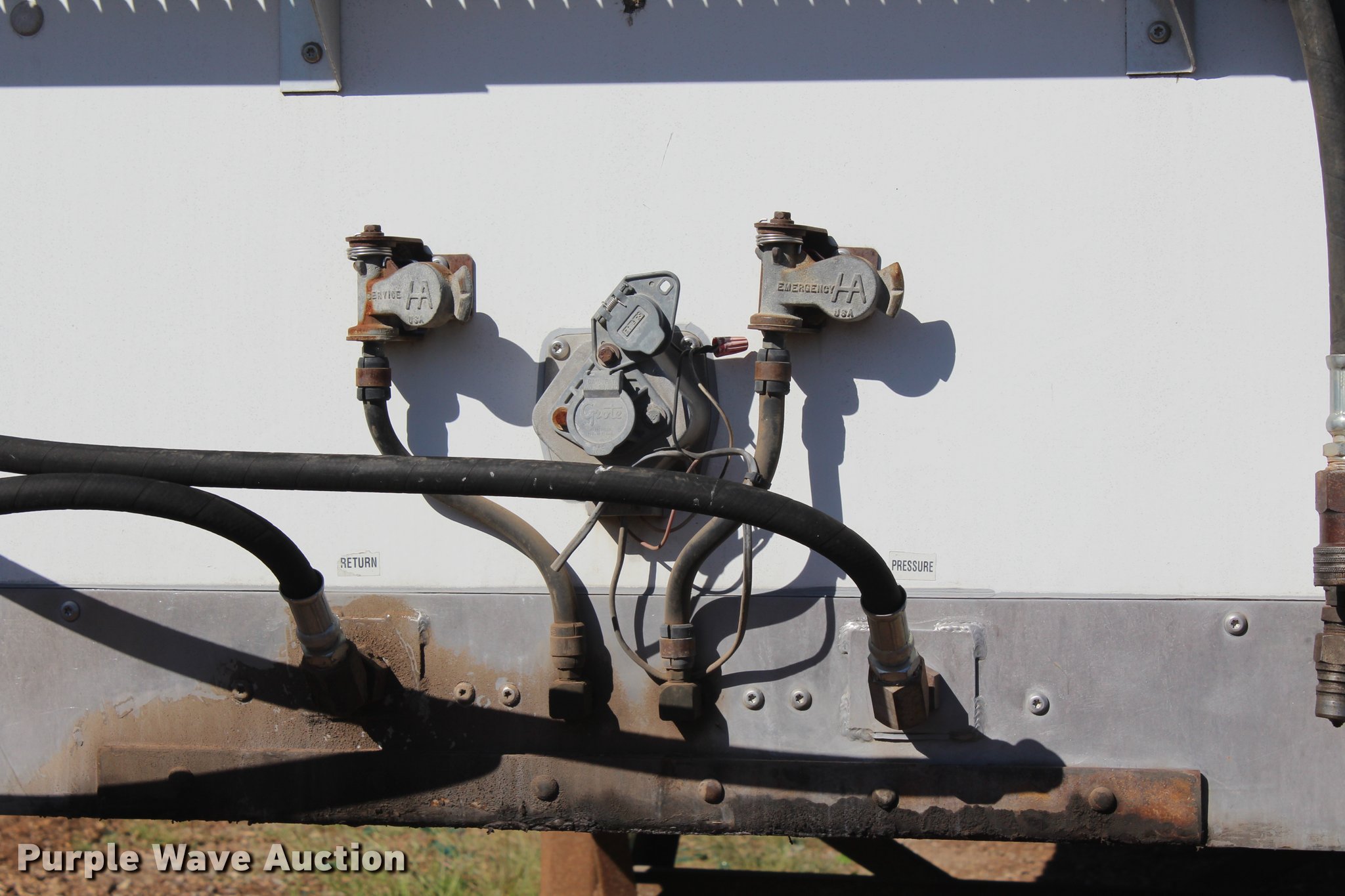Purple Wave is selling a used Grain or Commodity Trailer in Oklahoma. This item is a 2004 Wilkens OK2PA26DCES2 live bottom, walking floor trailer with the following: 44'L x 8'W, 80" side height, 80 cu. yd. capacity, Front and rear ladders, Front platform, Rollover tarp, Aluminum construction, Fifth wheel plate, Dual leg landing gear, Air suspension, Air brakes, Tandem spread axle, 285/75R24.5 tires, GVWR 68,000 lbs