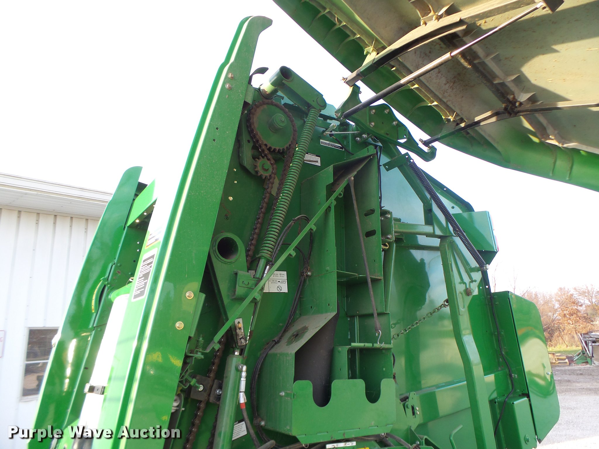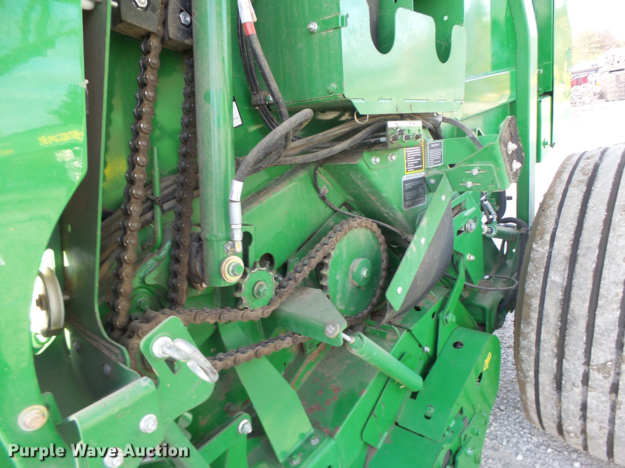 Purple Wave is selling a used Round Baler in Missouri. This item is a 2013 John Deere 569 Premium round baler with the following: Approx. 5,000 bales, 5' x 6' bale capacity, Moisture monitor, B-wrap, Poly pickup guards, 1000 PTO, Transport lights, Pin hitch, 21.5L-16.1SL tires, Bale count monitor selling as item DA9264, Serial 1E00569DLCD390035