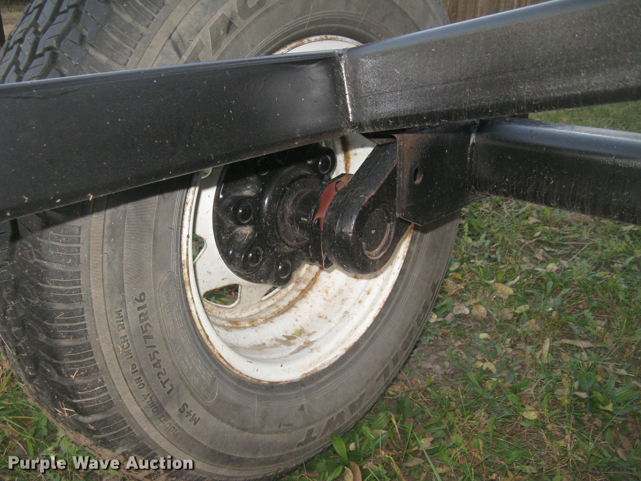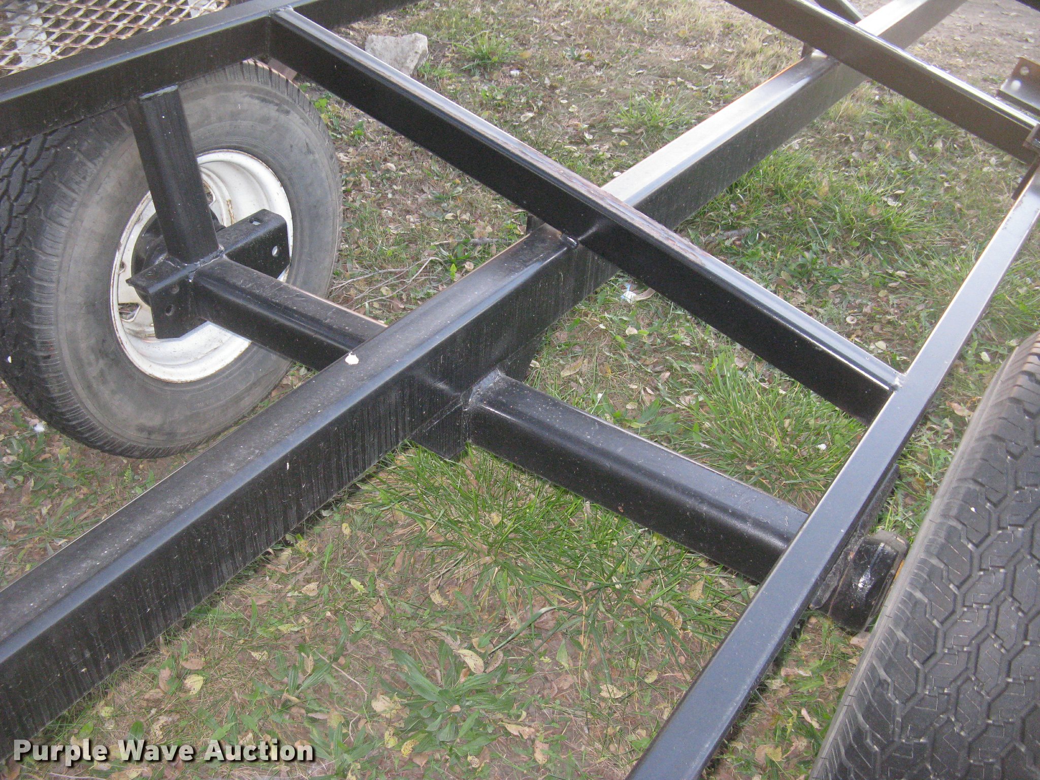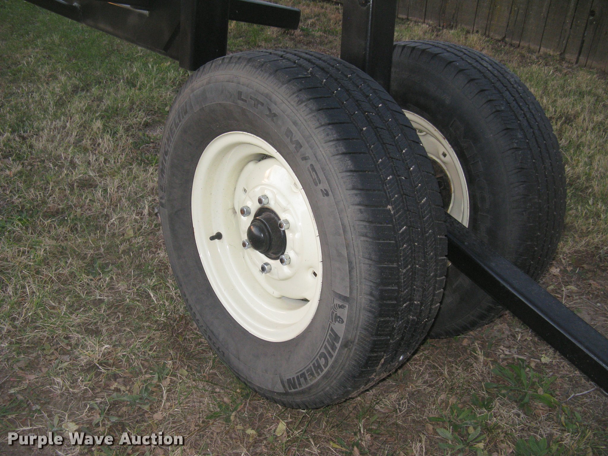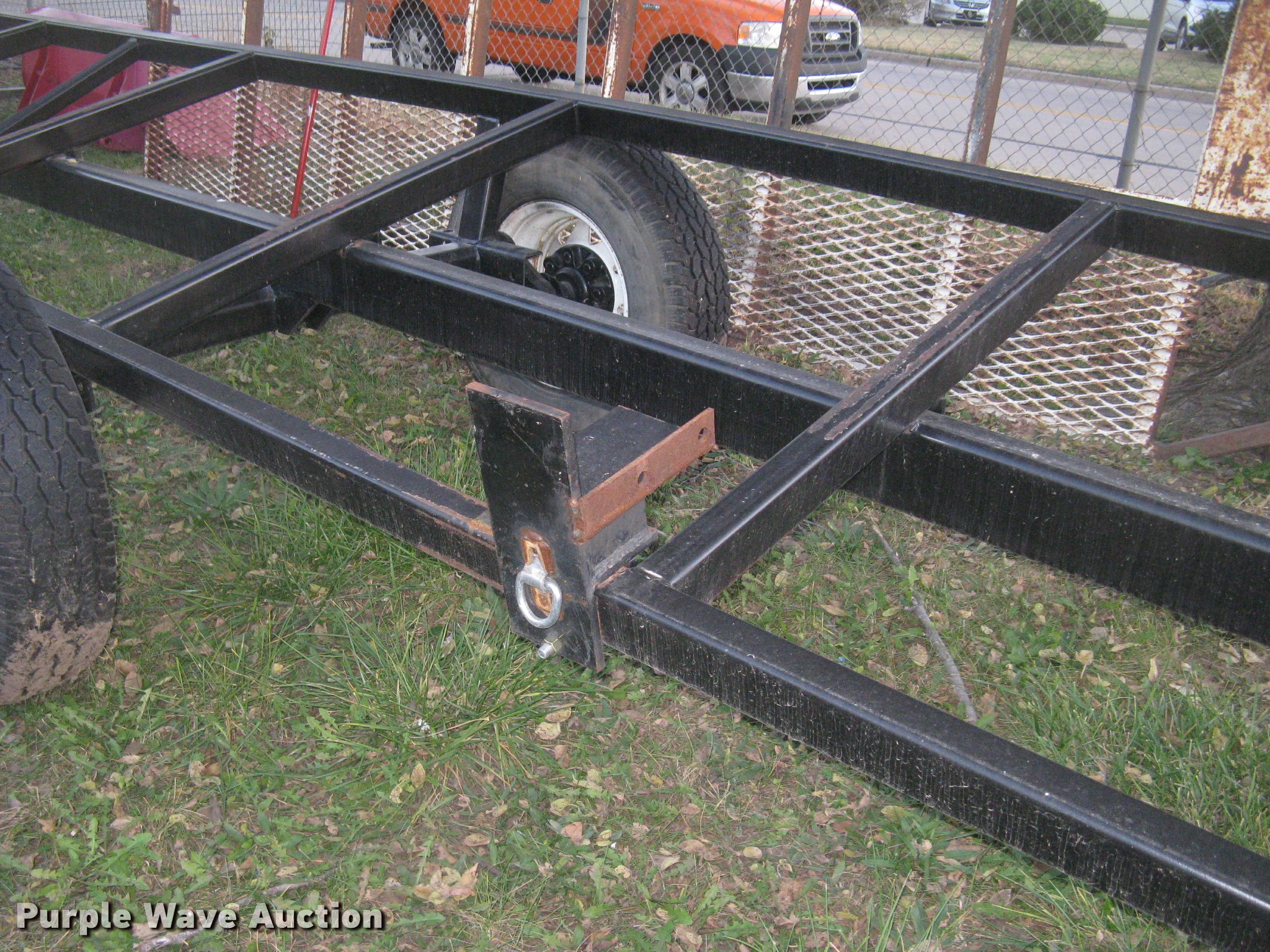 Purple Wave is selling a used Ag Equip. or Header Trailer in Kansas. This item is a Shop built header trailer with the following: 30'L header platform frame, 3" x 5" main frame beam, Pin hitch tow tongue, Gooseneck style front dolly axle, Twin wheel, 8,000 lbs rear torsion axle, Easy lube hubs/rear axle, LT245/75R16 tires, Additional frame work will be added to platform body to increase the pitch/slope to receiver header with greater ease prior to auction