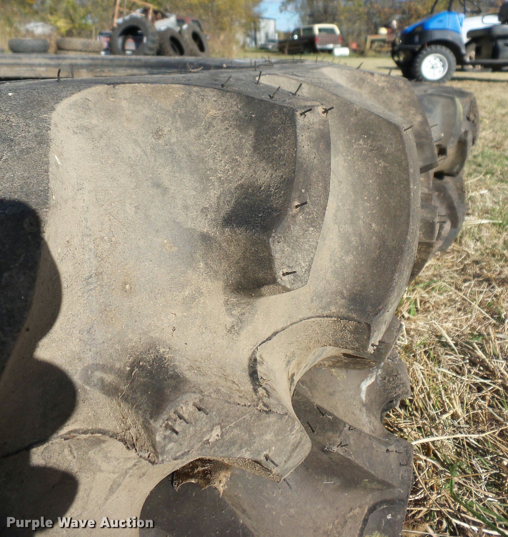 Purple Wave is selling a used Industrial Tires or Tracks in Oklahoma. This item is a (4) tires with the following: (2) Firestone 8-16 tires, (2) Goodyear 9.5-24 tires