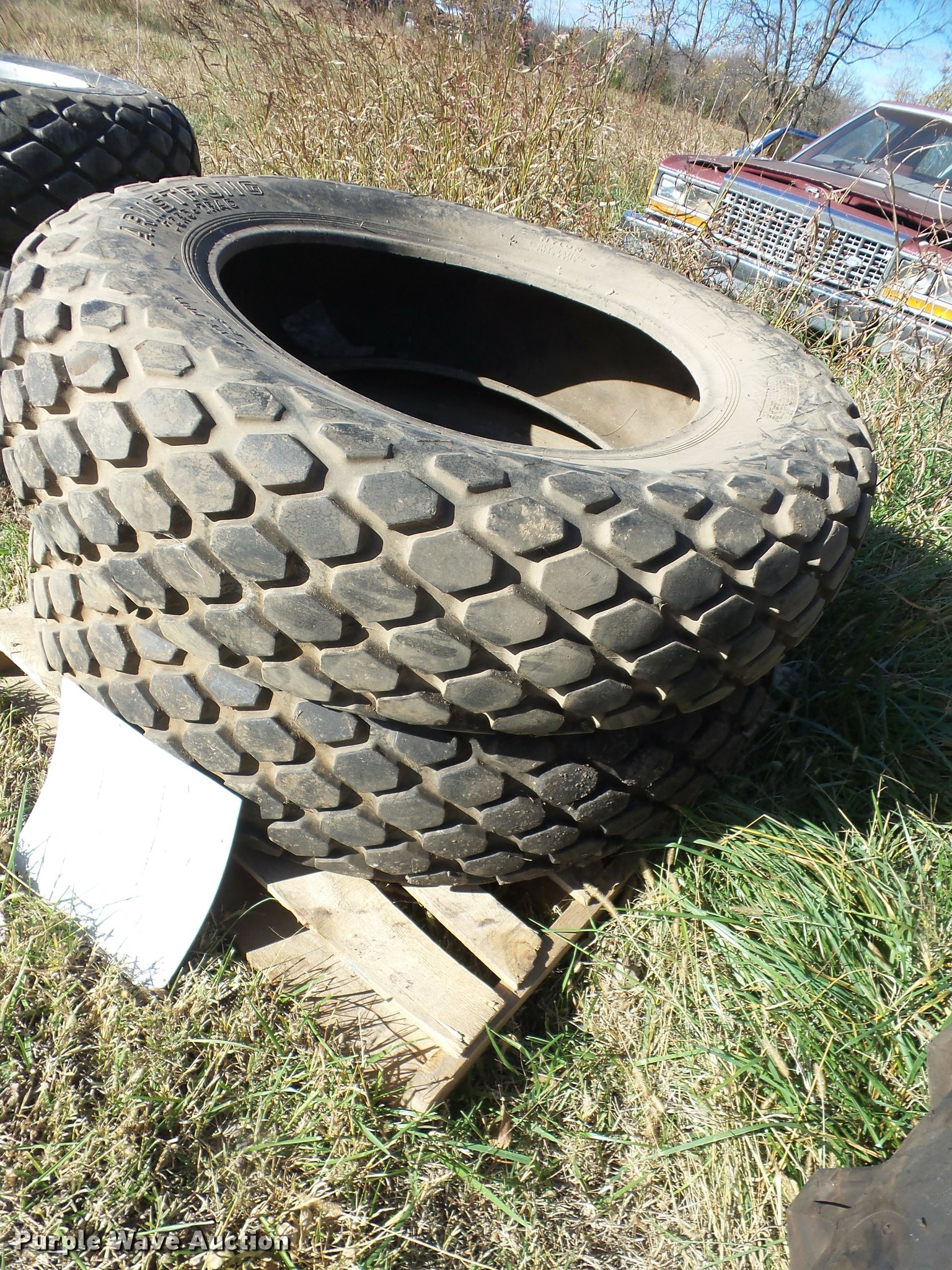 Purple Wave is selling a used Industrial Tires or Tracks in Oklahoma. This item is a (4) tires with the following: (2) Armstrong 12.6-28 turf tires, (2) Goodyear 12.6-16 turf tires and wheels