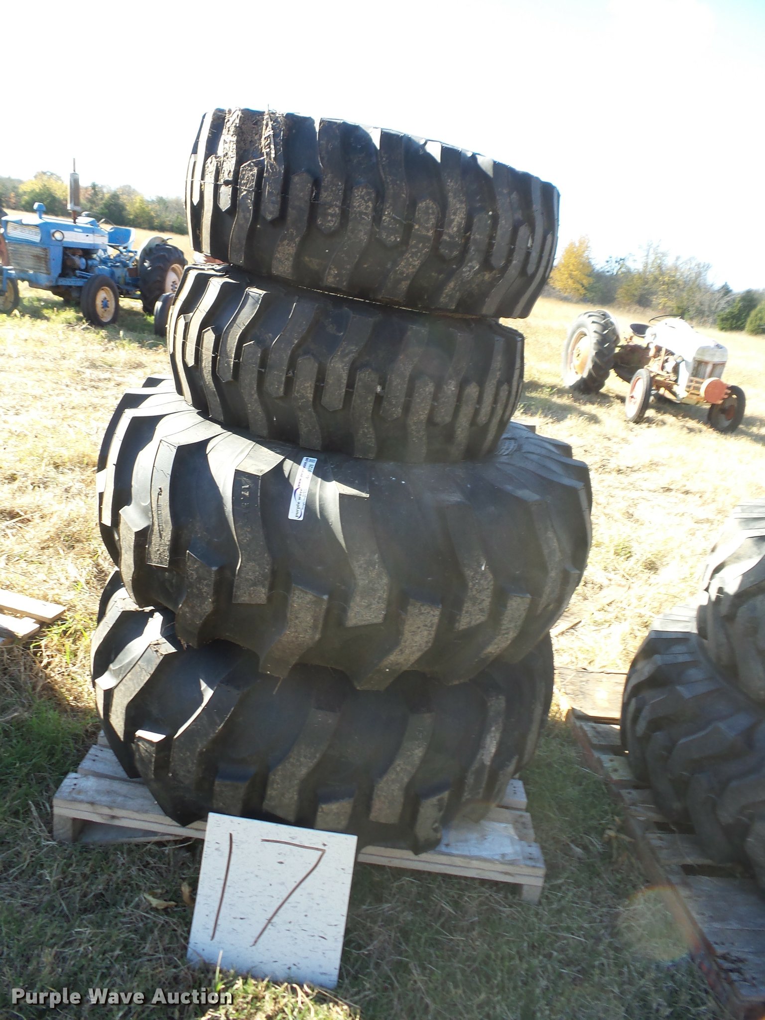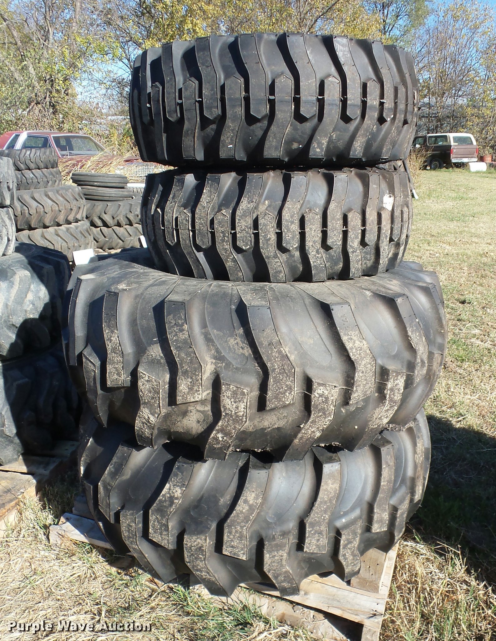 Purple Wave is selling a used Industrial Tires or Tracks in Oklahoma. This item is a (4) tires with the following: (2) Titan 12-16.50 tires and wheels, (2) Titan 17.5L-24 tires and wheels