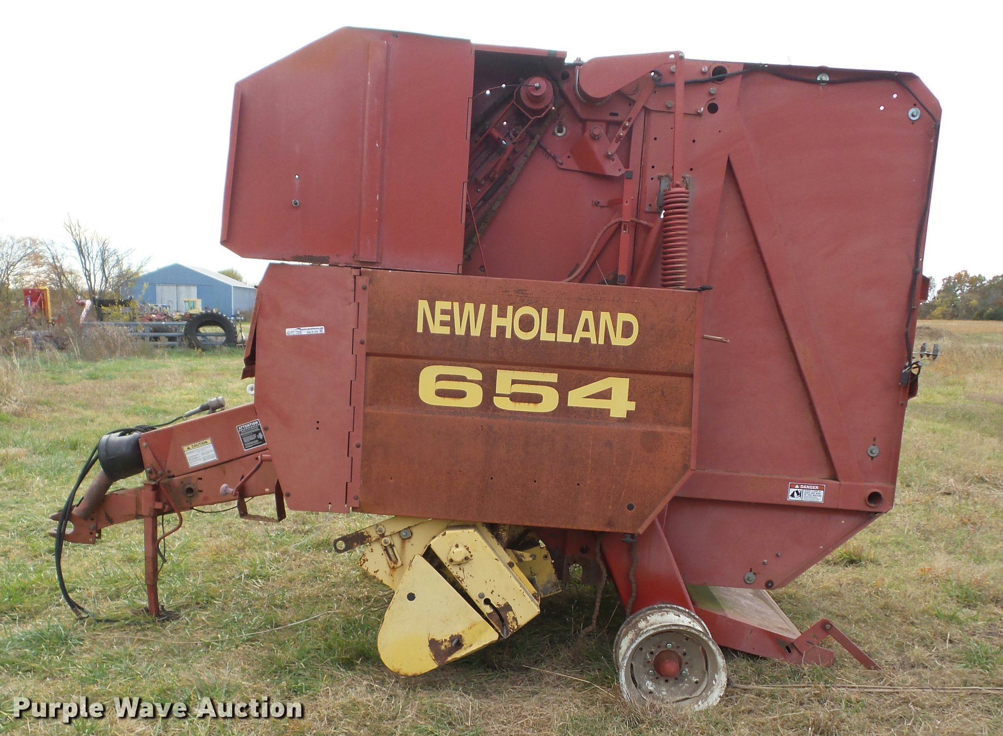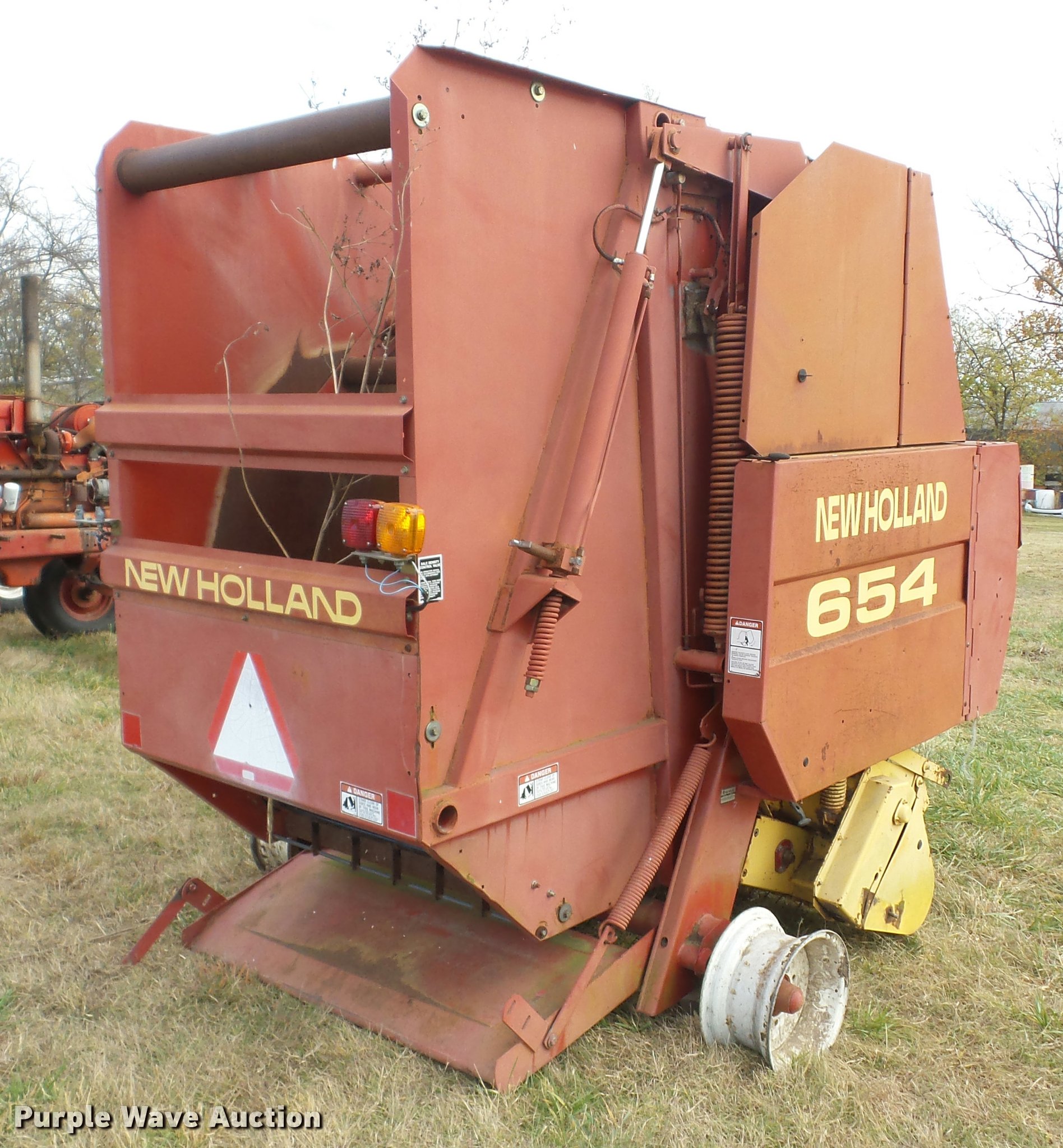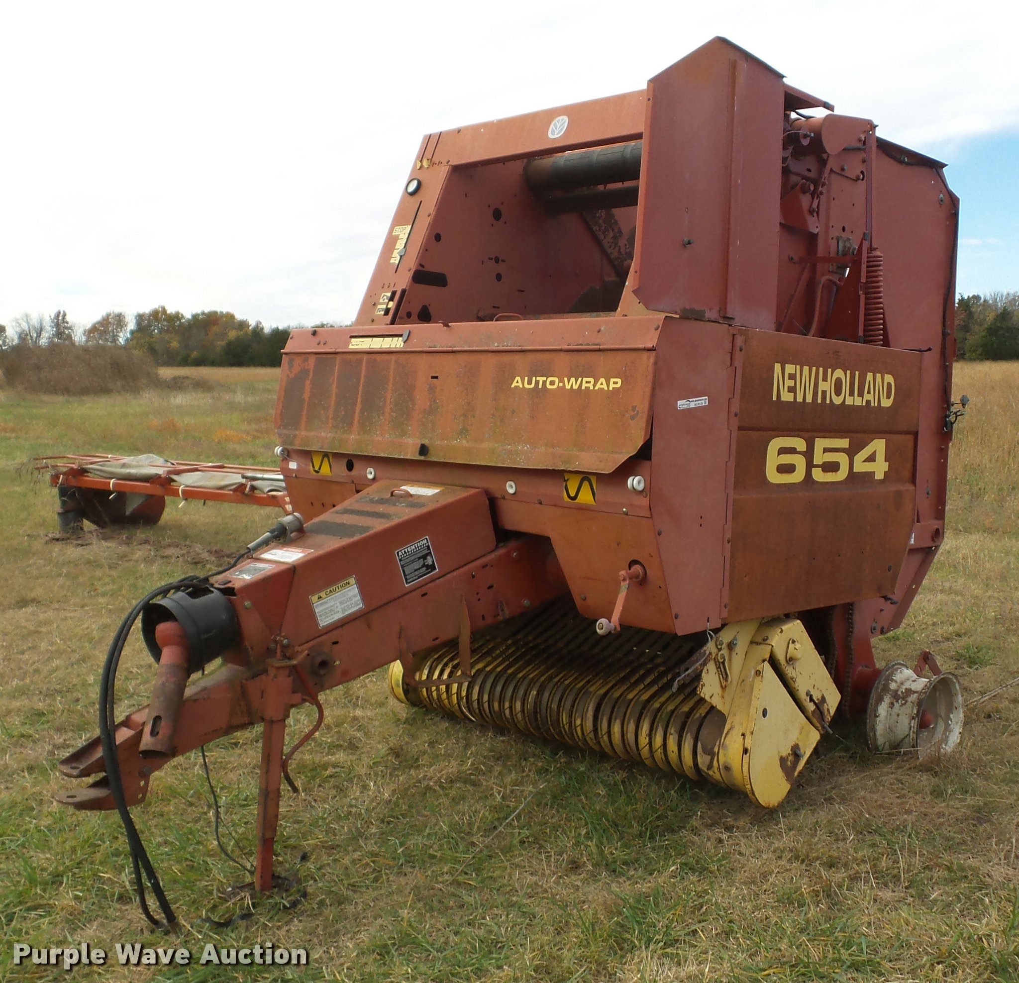 Purple Wave is selling a used Round Baler in Oklahoma. This item is a 1997 New Holland 654 round baler with the following: Twine tie, Auto-tie, Non-operational unit, parts missing