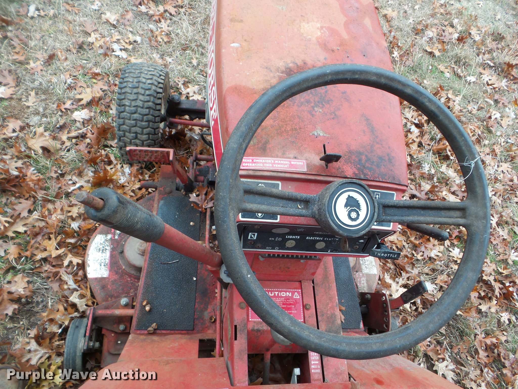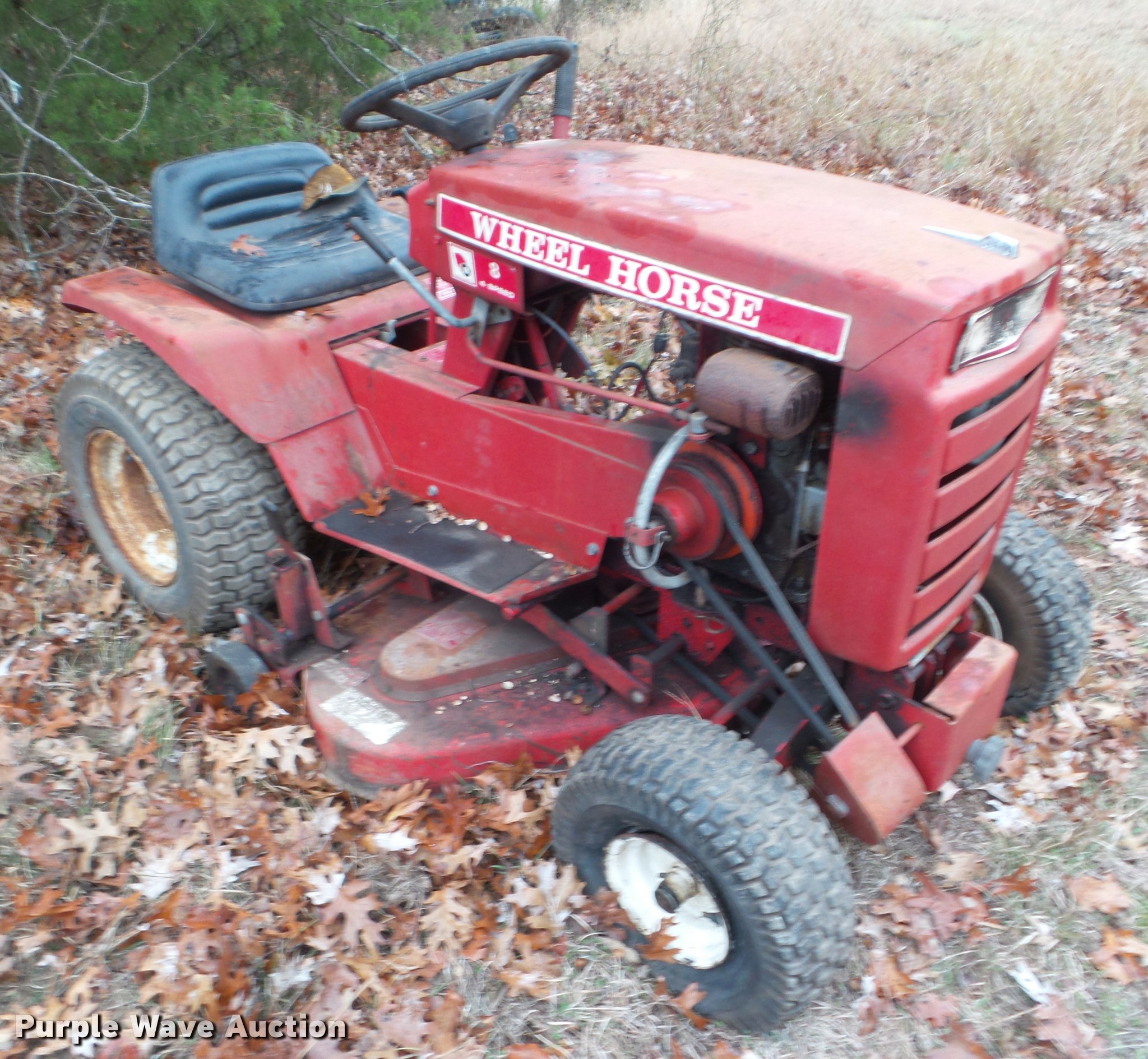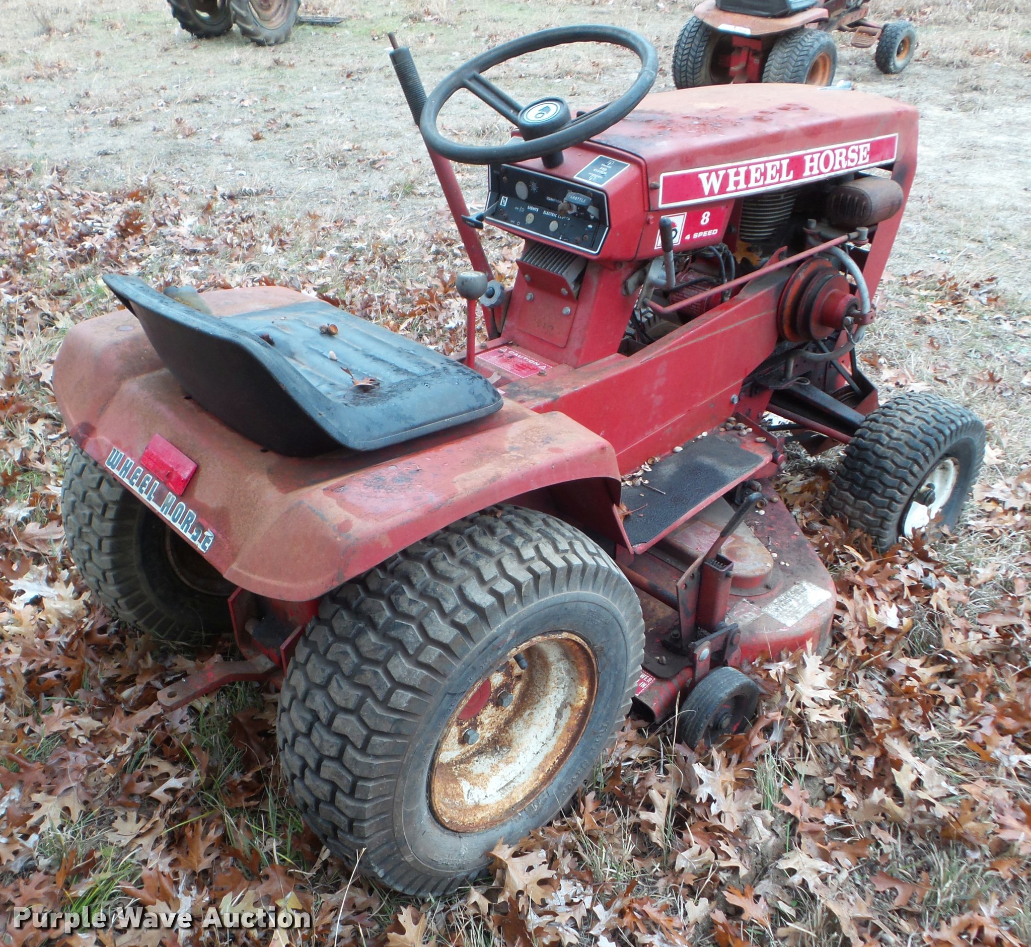 Purple Wave is selling a used Lawn Mower in Texas. This item is a Wheel Horse 8 lawn mower with the following: Model 1-0120-8, 36"W cut, Kohler one cylinder gas engine, Four speed manual transmission, Rear pin hitch, 15x6.00-6 front tires, 20x8.00-10 rear tires, Serial 461837