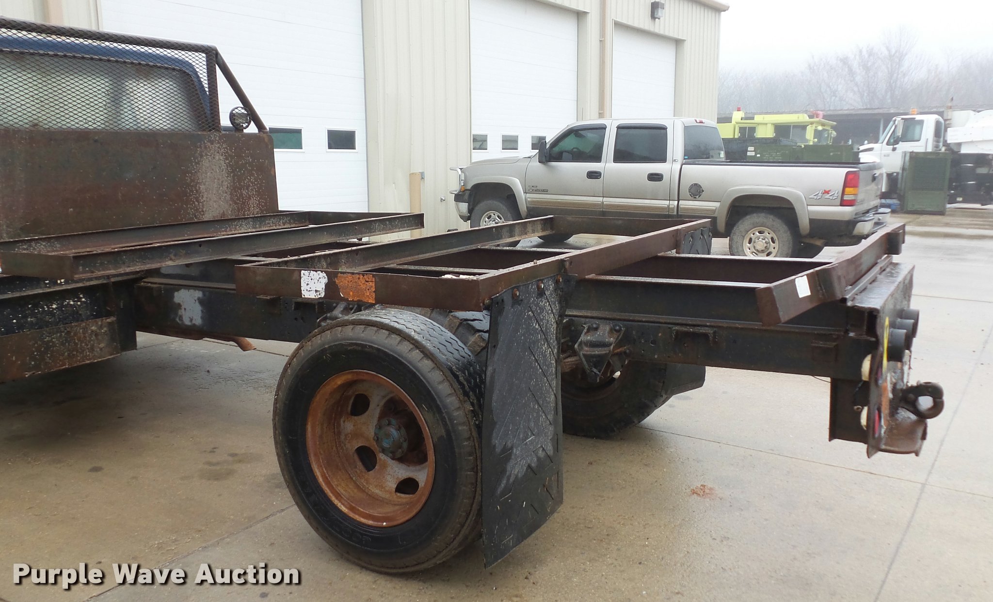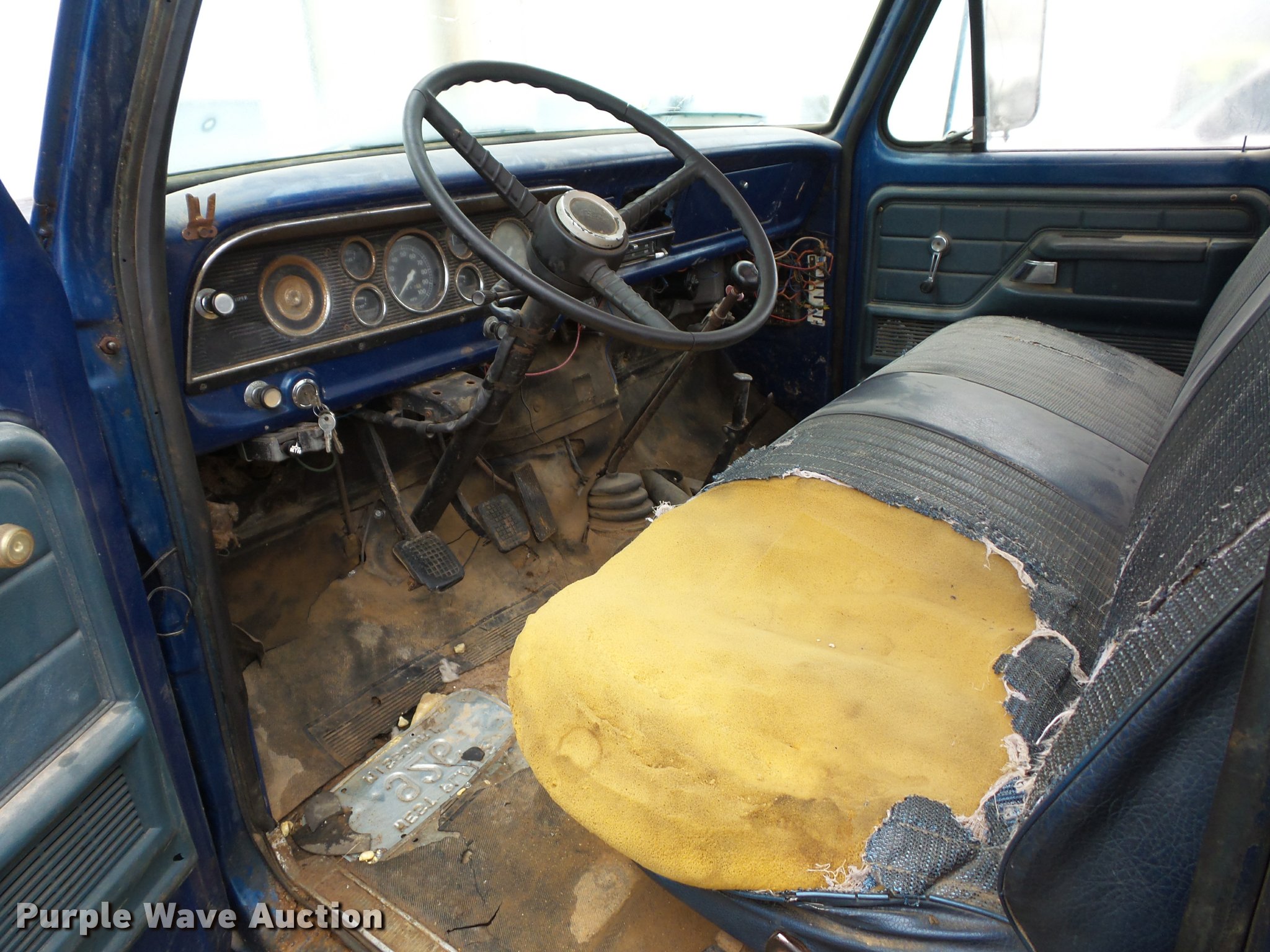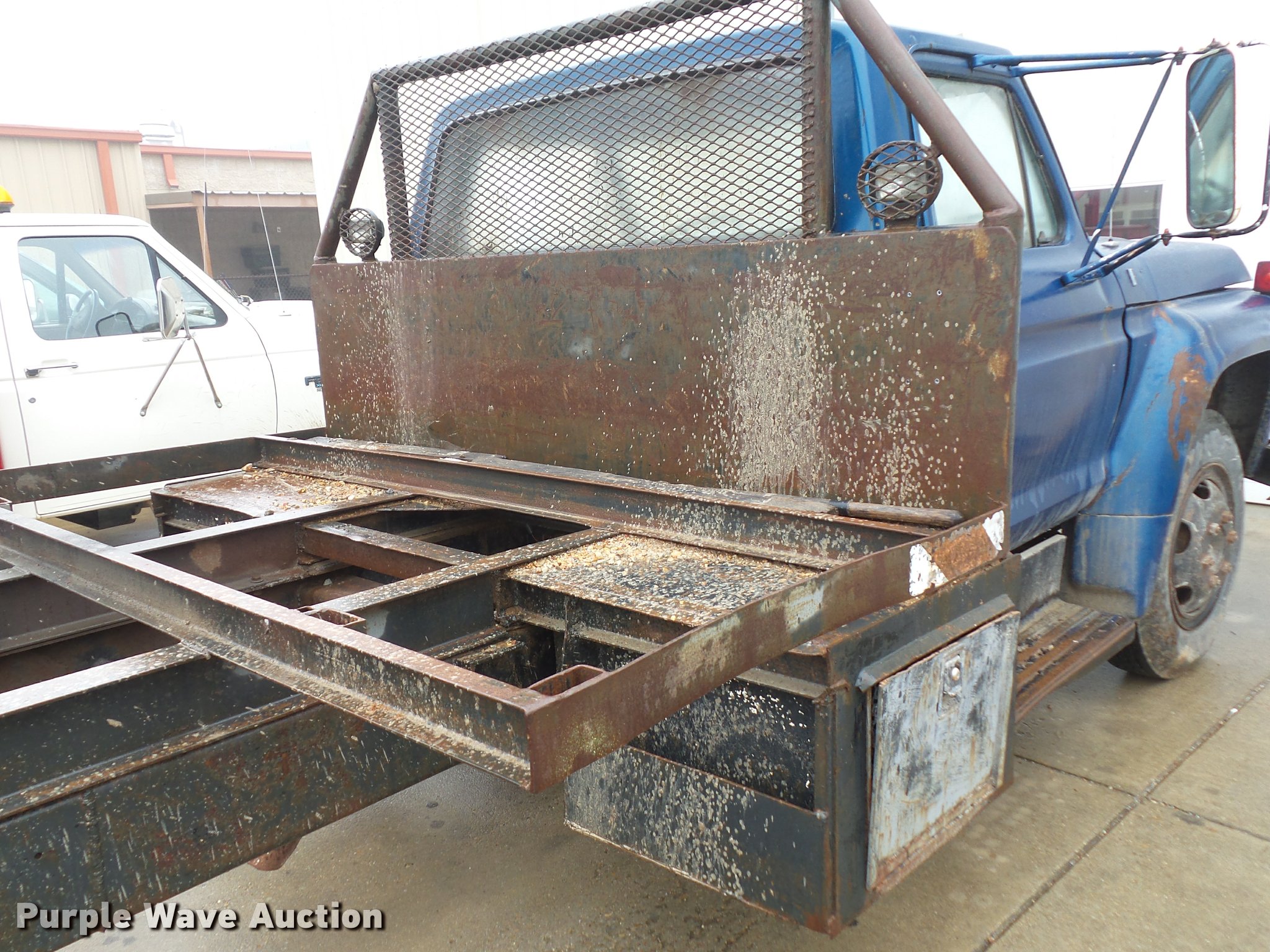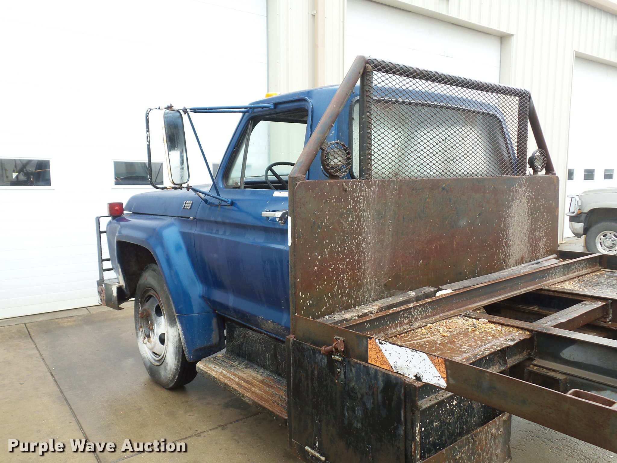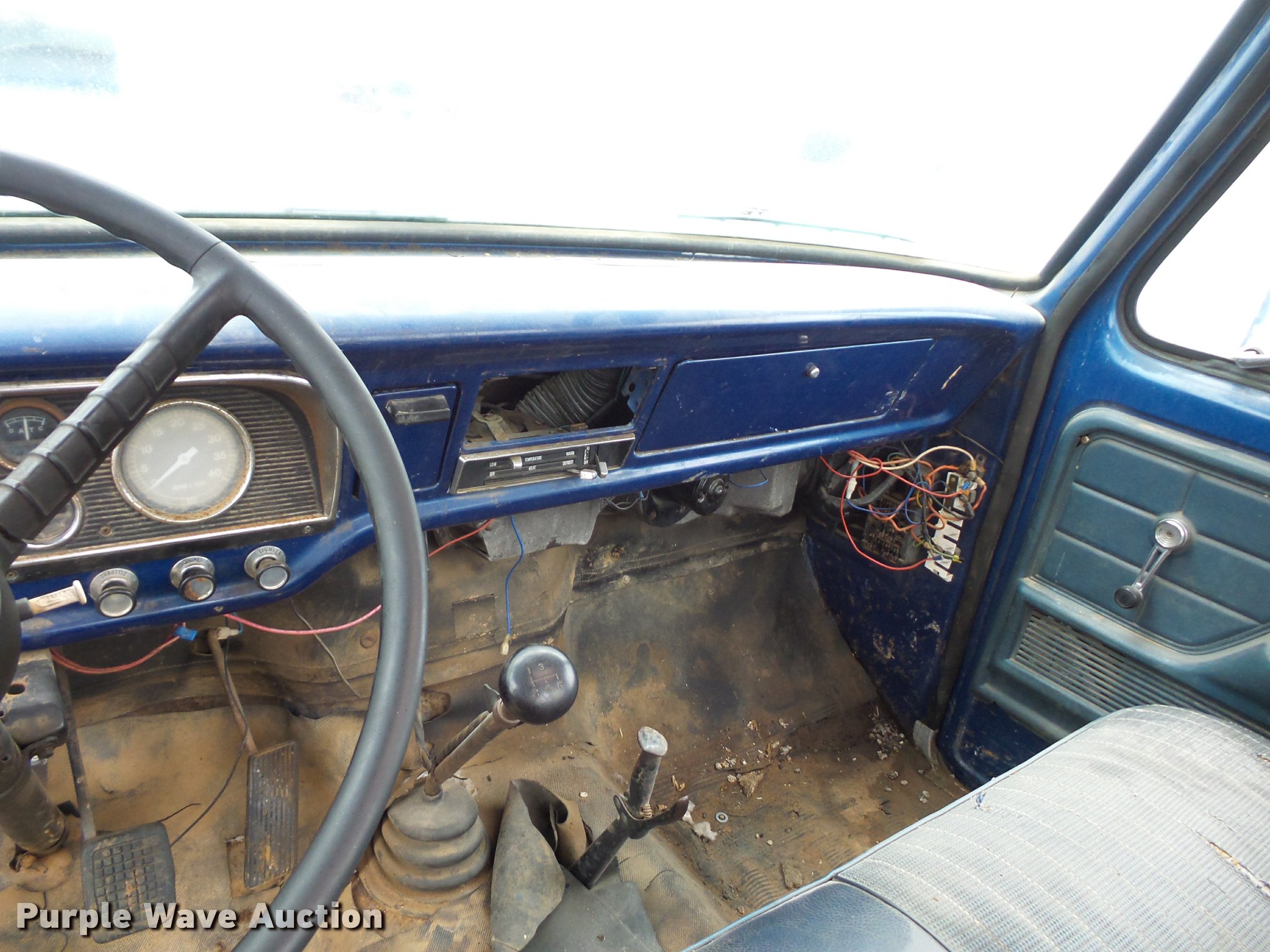 Purple Wave is selling a used Truck Chassis in Missouri. This item is a 1977 Ford F600 truck cab and chassis with the following: 52,662 miles on odometer, Eight cylinder gas engine, Four speed manual transmission, Two speed rear end, Heat, Manual windows and locks, Vinyl interior, 14'L x 8'W rear frame, 8.25-20 tires, Non-operational brakes, Windshield cracked