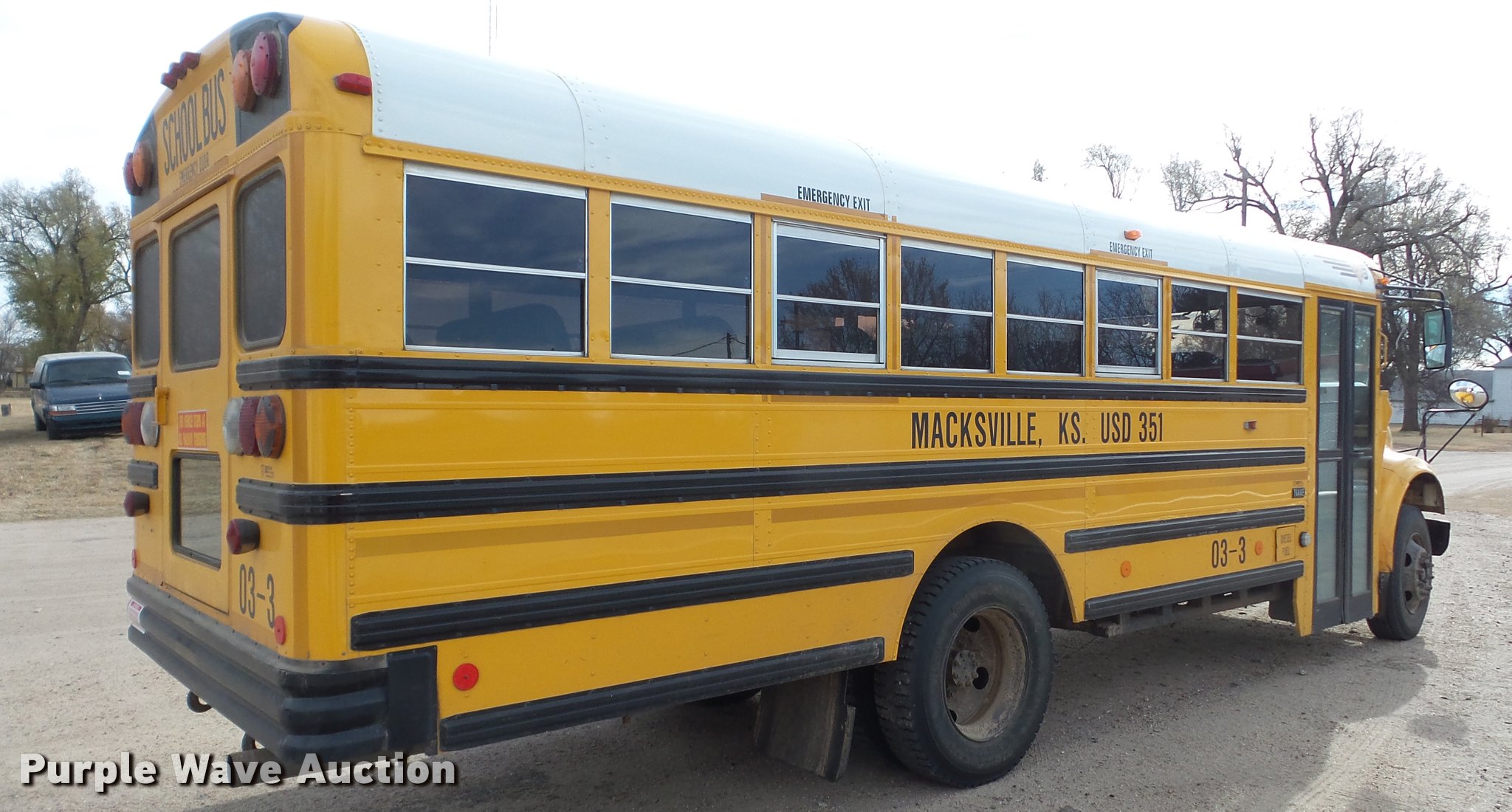 Purple Wave is selling a used Bus in Kansas. This item is a 2004 International CE school bus with the following: 154,829 miles on odometer, International T444 7.3L V8 diesel engine, Automatic transmission, Heat, Cruise, AM/FM, Vinyl interior, Rear, ceiling, and side emergency egress, 10R22.5 tires, Possible injector issues