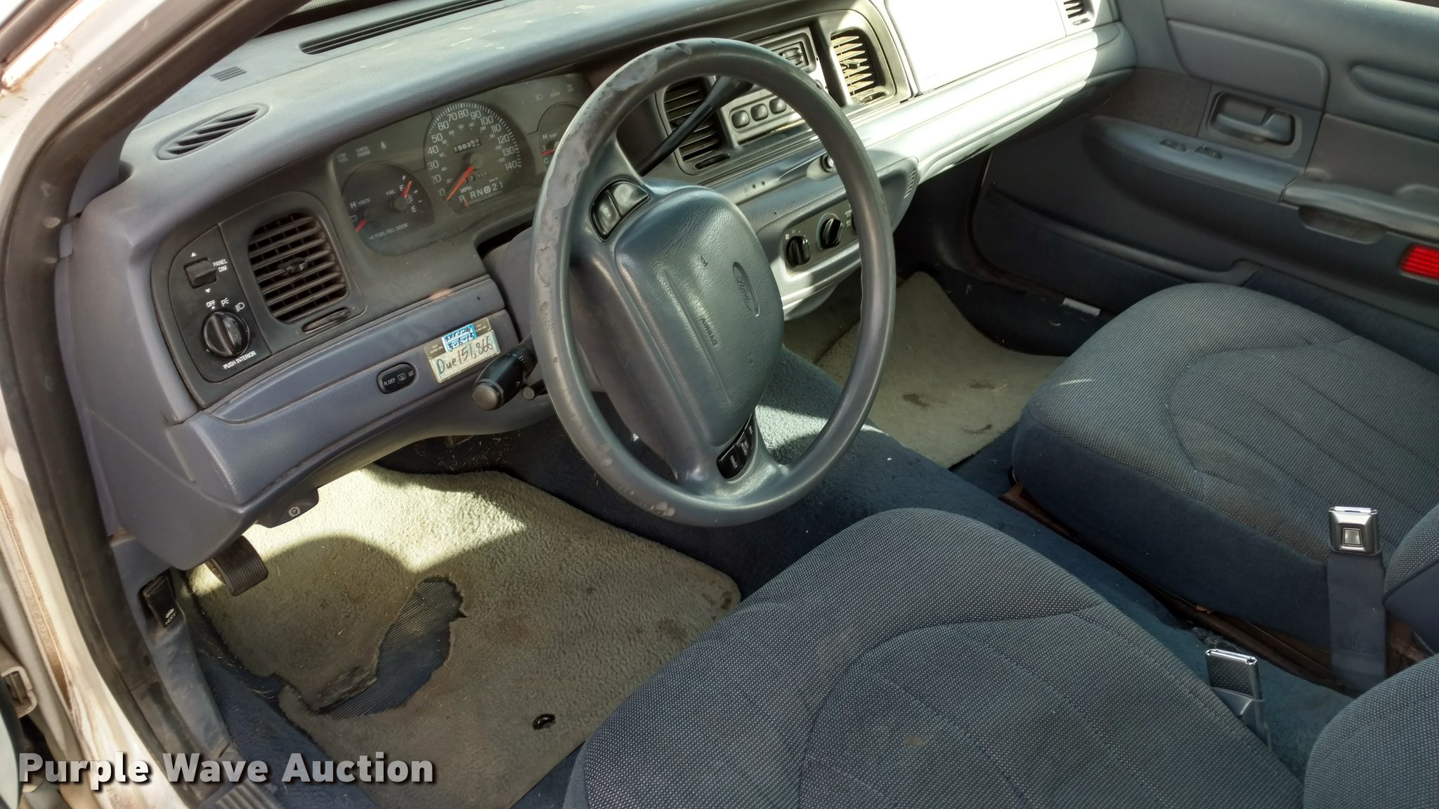 Purple Wave is selling a used Passenger Vehicle in Kansas. This item is a 1998 Ford Crown Victoria Police Interceptor with the following: 150,370 miles on odometer, 4.6L V8 SOHC 16V gas engine, Automatic transmission, AC and heat, Tilt, Cruise, AM/FM, Power windows and locks, Cloth interior, 225/60R16 tires