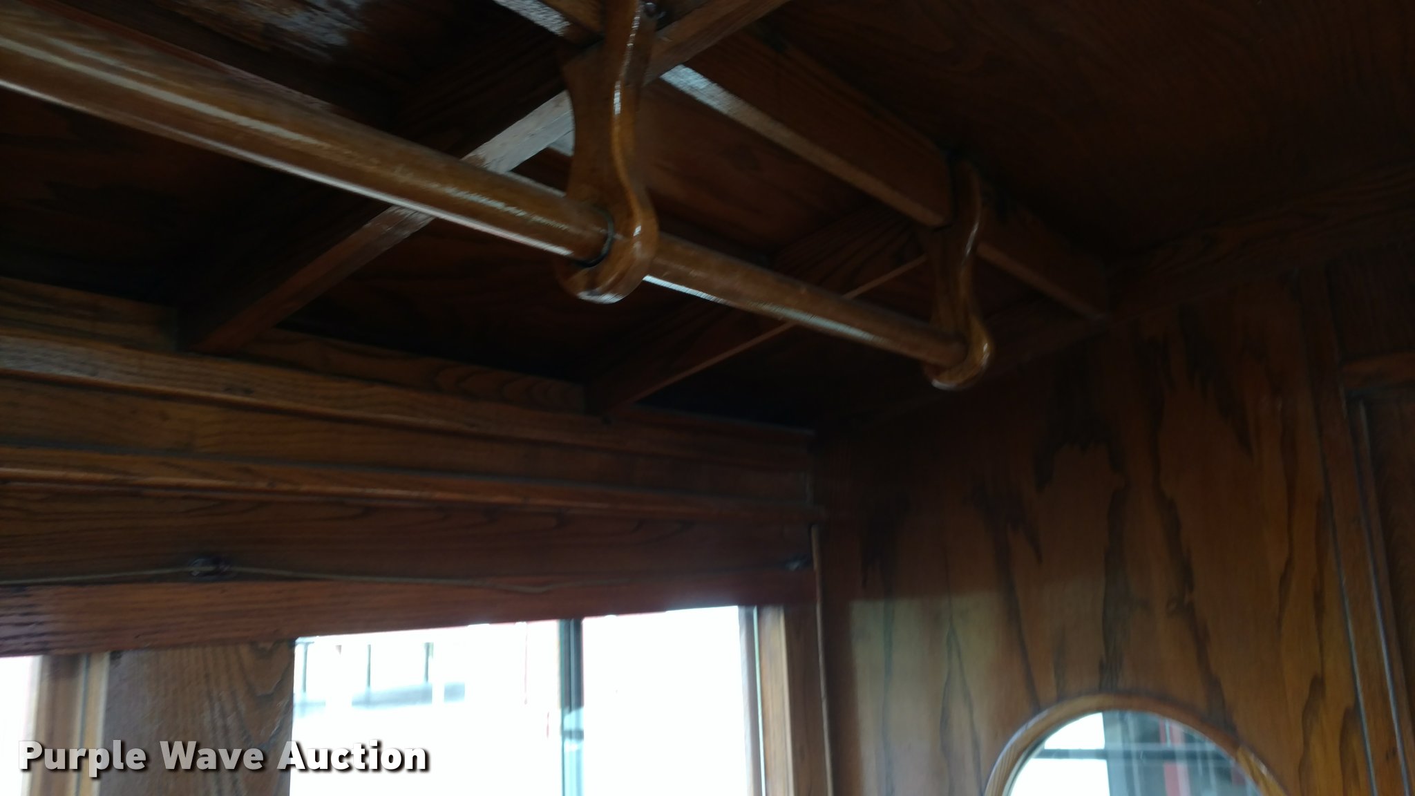 Purple Wave is selling a used Bus in Kansas. This item is a 1981 GMC trolley with the following: 10,011 miles on odometer, Actual mileage unknown, V8 gas engine, Automatic transmission, Heat, AM/FM, PA system, 30 person capacity, Wood body, Wood bench seats, 8R19.5 tires, Some wood needs to be replaced