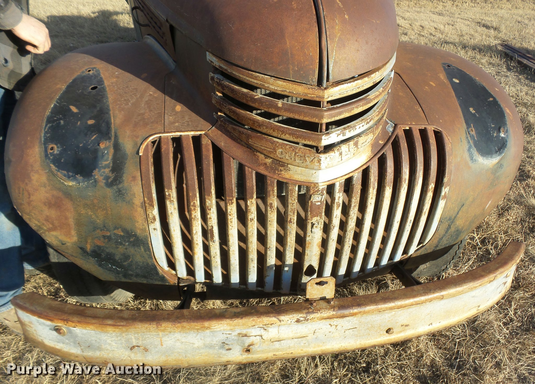 Purple Wave is selling a used Truck Chassis in Kansas. This item is a 1945 Chevrolet truck cab and chassis with the following: Unknown miles on odometer, Six cylinder gas engine, Four speed manual transmission, 7.00-20 tires, Non-operational unit