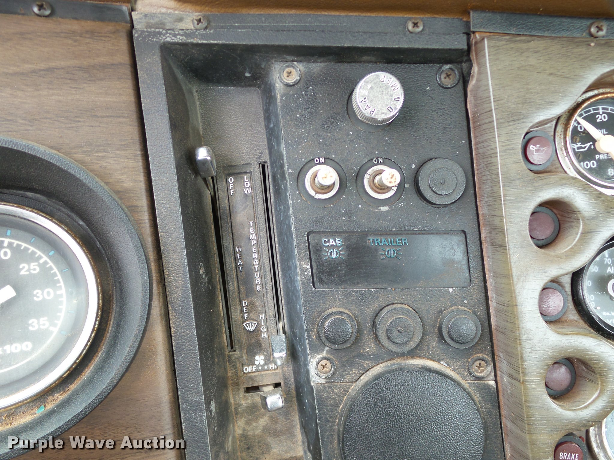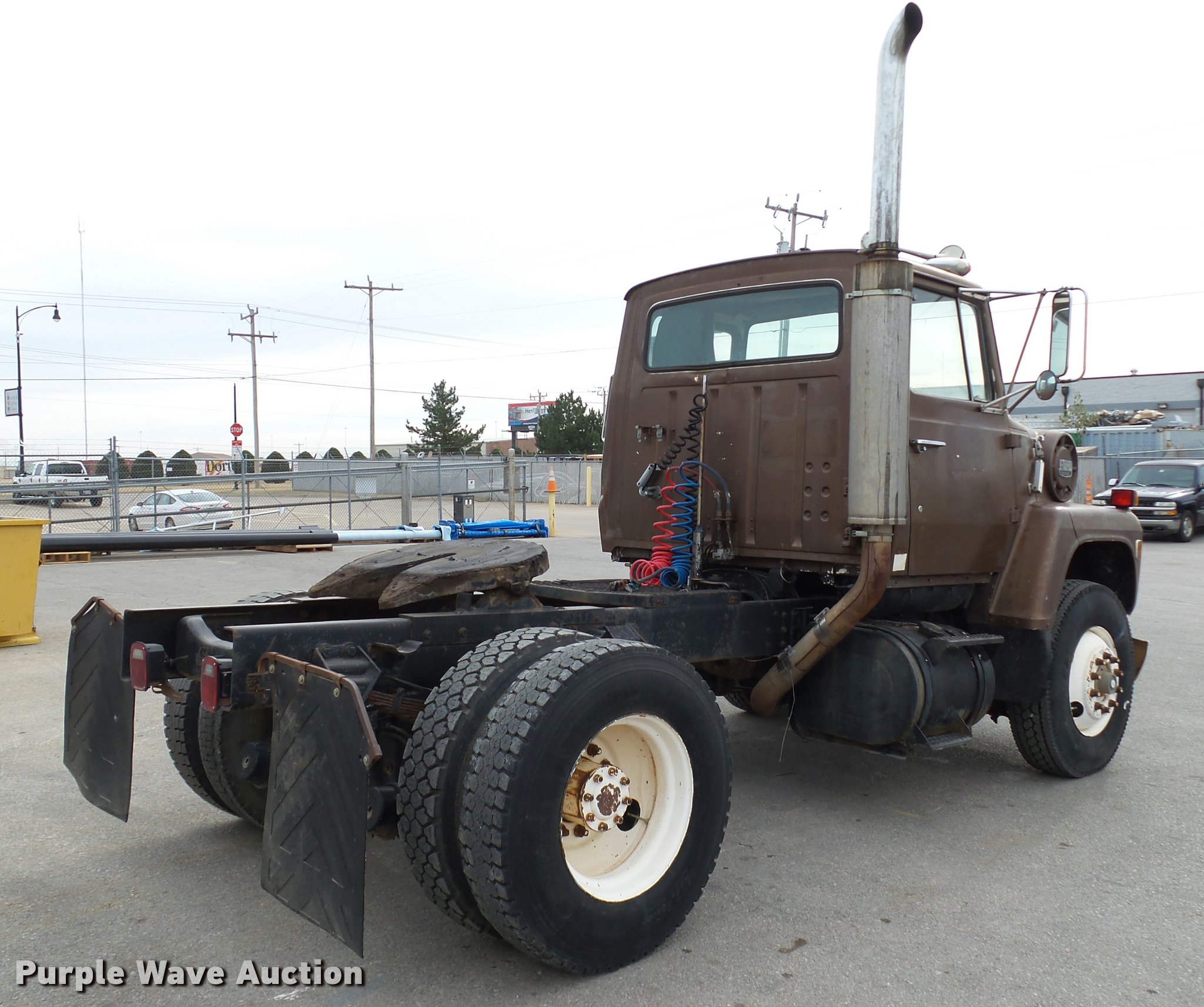 Purple Wave is selling a used Truck Tractor in Oklahoma. This item is a 1984 Ford LN9000 semi truck with the following: 149,823 miles on odometer, Cummins NTC-240 six cylinder turbo diesel engine, 240 HP, Serial 11192711, Eaton Fuller Road Ranger RT-11609-14609 nine speed manual transmission, Single axle, Heat, AM/FM/cassette, Air suspension seat, Ether start, Single rear exhaust stack, Steel deck plate, Sliding fifth wheel plate, Dual fuel tanks, Spring suspension, Air brakes, 138" wheelbase, 11R22.5 tires, GVWR 28,000 lbs, Unit# 6-6