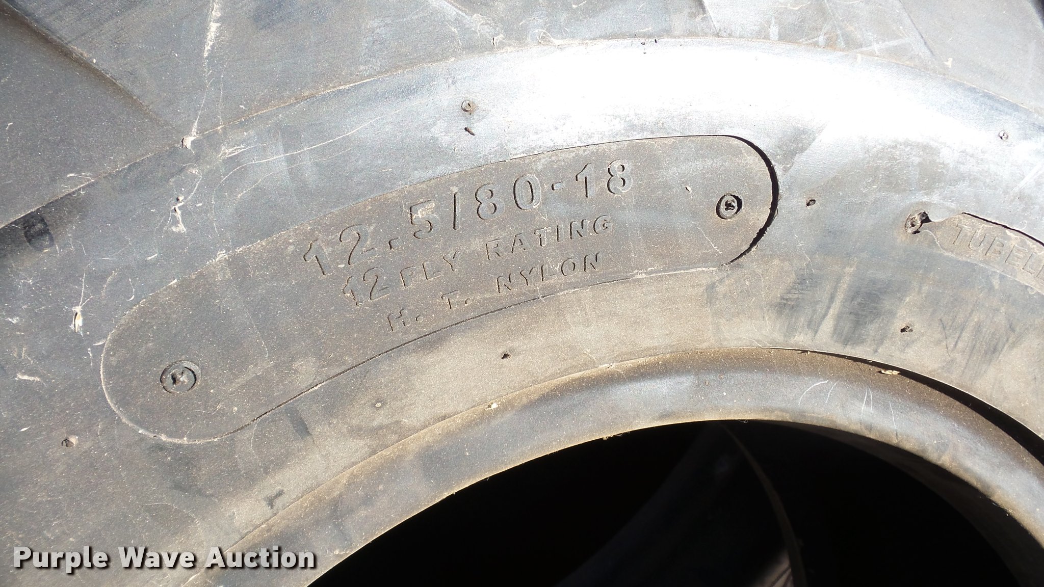 Purple Wave is selling a used Industrial Tires or Tracks in Kansas. This item is a (3) tires with the following: (2) Deestone 12.5/80-18, Firestone 12.0/12.5-18