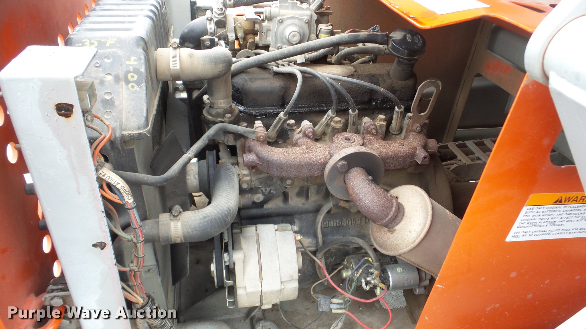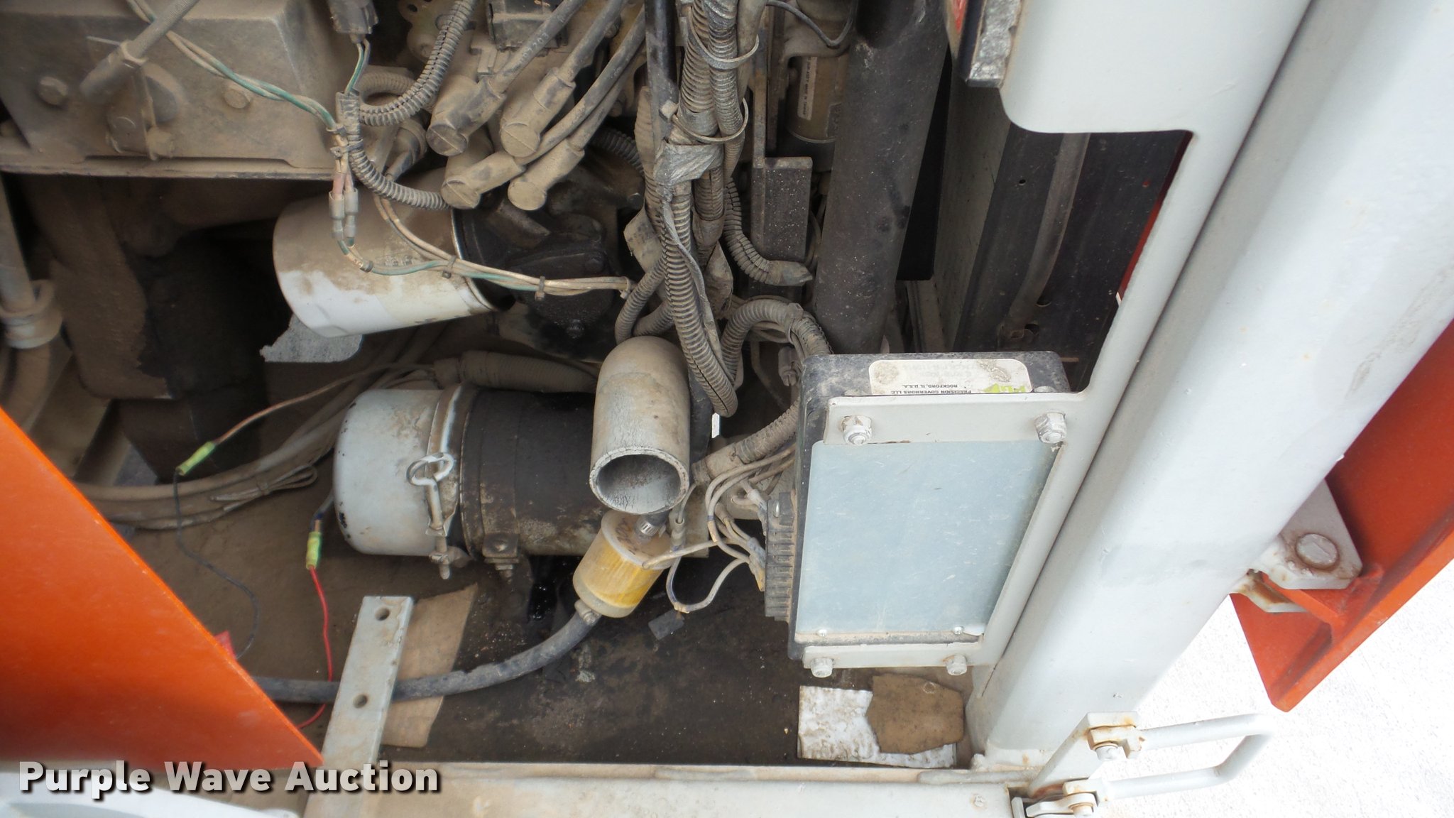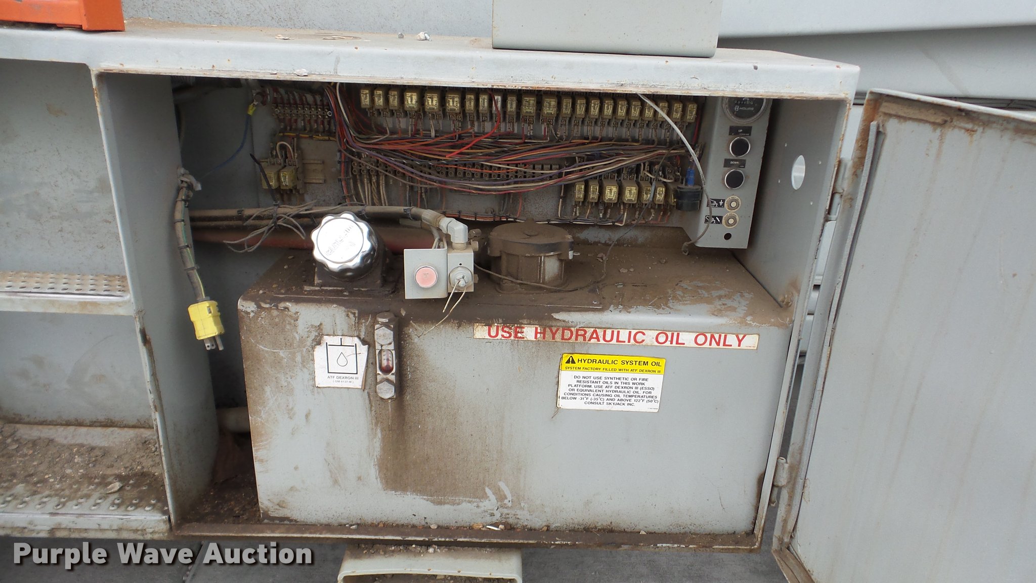 Purple Wave is selling a used Scissor or Vertical Lift in Kansas. This item is a 2000 Skyjack SJ9250 scissor lift with the following: 2,576 hours on meter, Four cylinder dual fuel engine, Gas or propane capable, Four wheel drive, 50' platform height, 168"L x 74"W platform, 5' platform extensions, 1,500 lbs max lift capacity, Five person capacity, 110V outlet, Auto leveling outriggers, 67 second lift time, Two mph drive speed, 176"L x 92"W overall, 10-16.5 tires, 15,200 lbs. base operating weight, Serial 50628