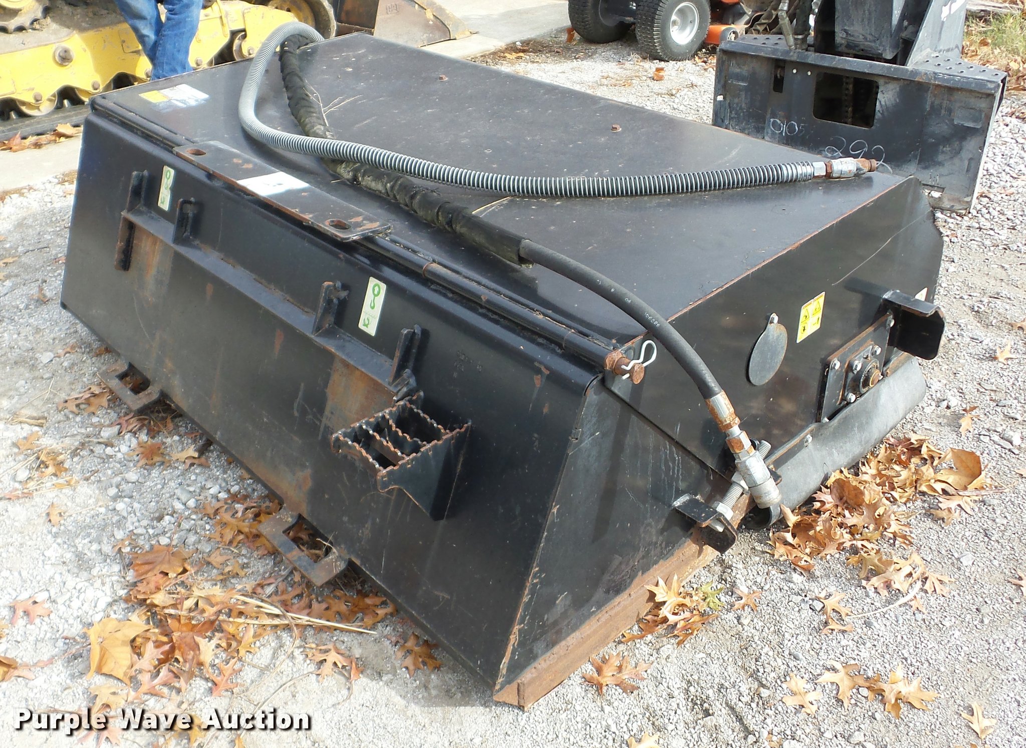 Purple Wave is selling a used Skid Steer Attach. in Oklahoma. This item is a 2007 Caterpillar BU118 skid steer broom with the following: 6'W, Hydraulic driven, Trash hopper, Half steel, half poly bristle broom, 1,060 lbs. base operating weight