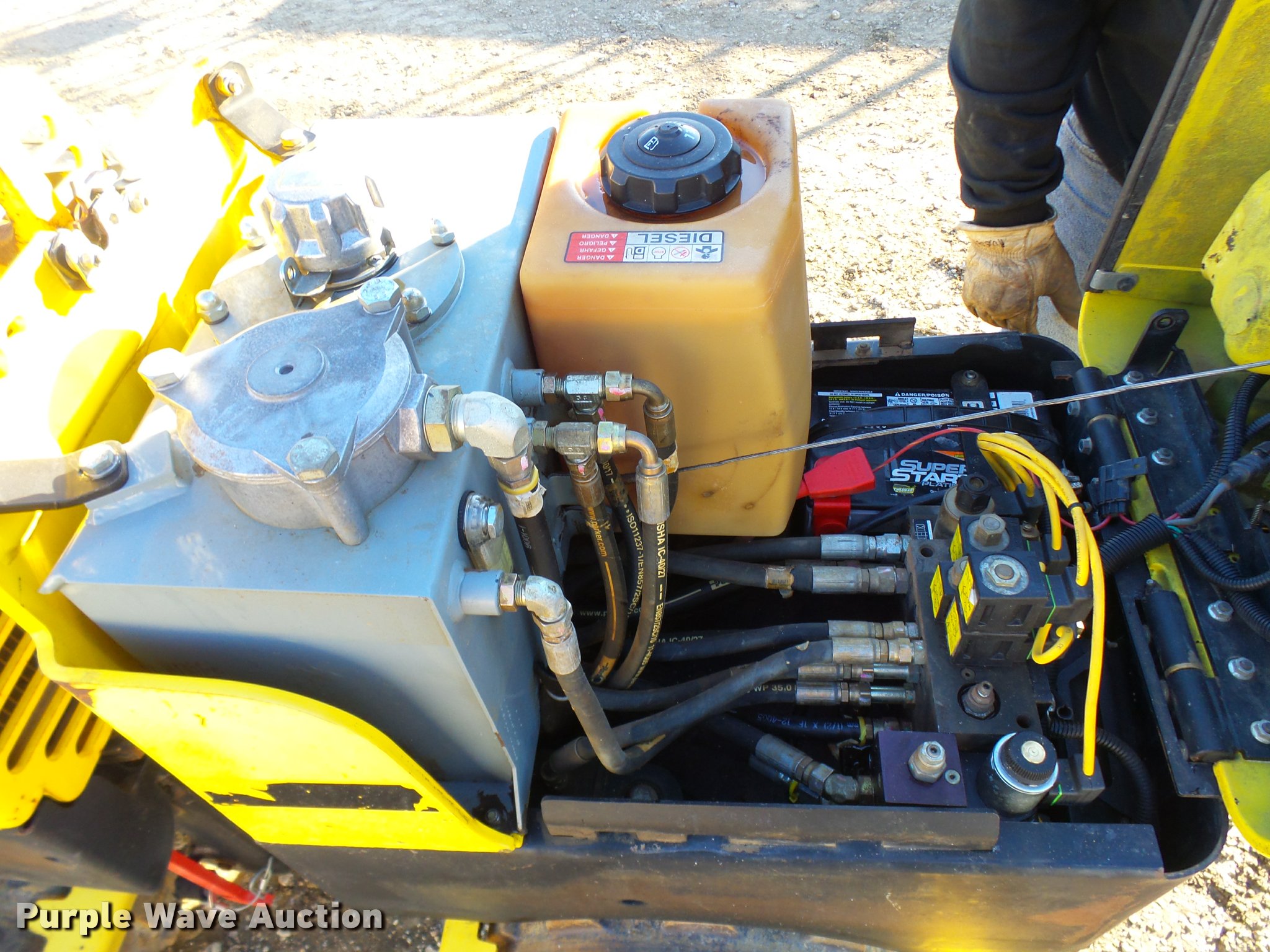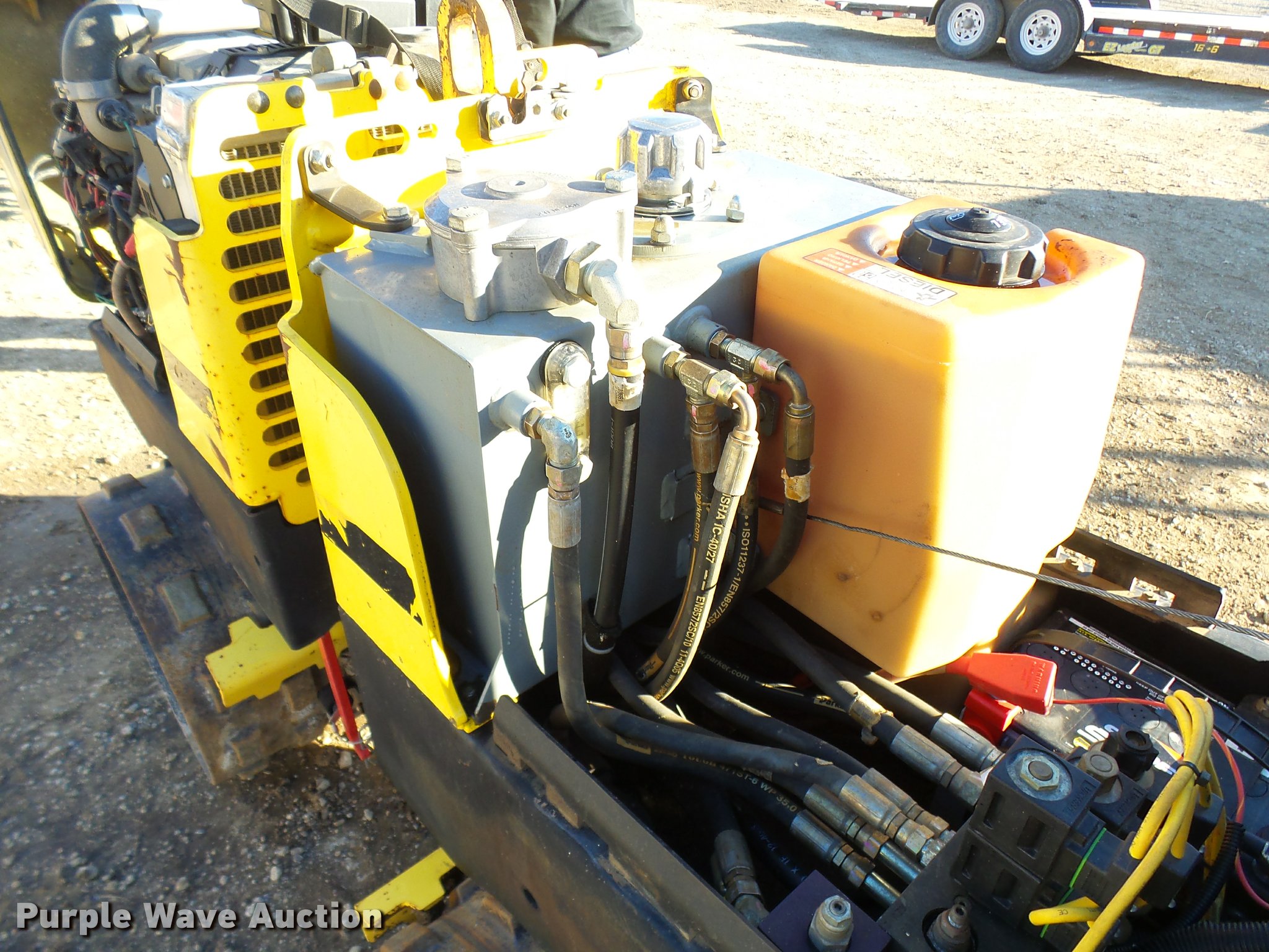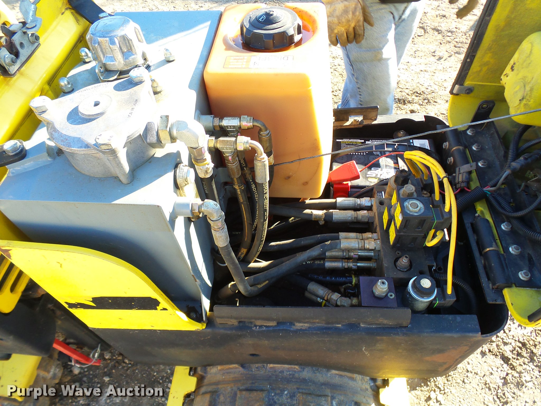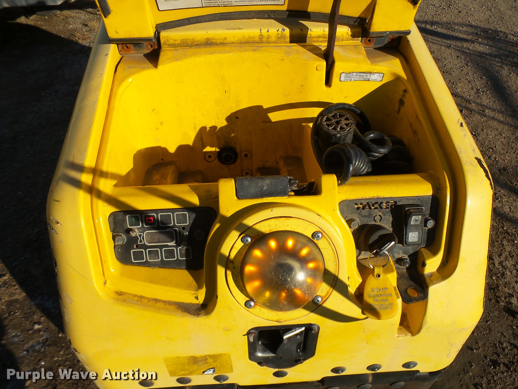 Purple Wave is selling a used Walk Behind Compactor in Missouri. This item is a Wacker RT82-SC vibratory padfoot compactor with the following: 573 hours on meter, Lambardini diesel engine, 24 HP, Two speed hydrostatic transmission, 32"W x 20" diameter sheeps foot drums, Two speed vibratory system, Front and rear drum scrapers, Dual propel system, Remote control, 3,247 lbs. base operating weight, Serial 5641705