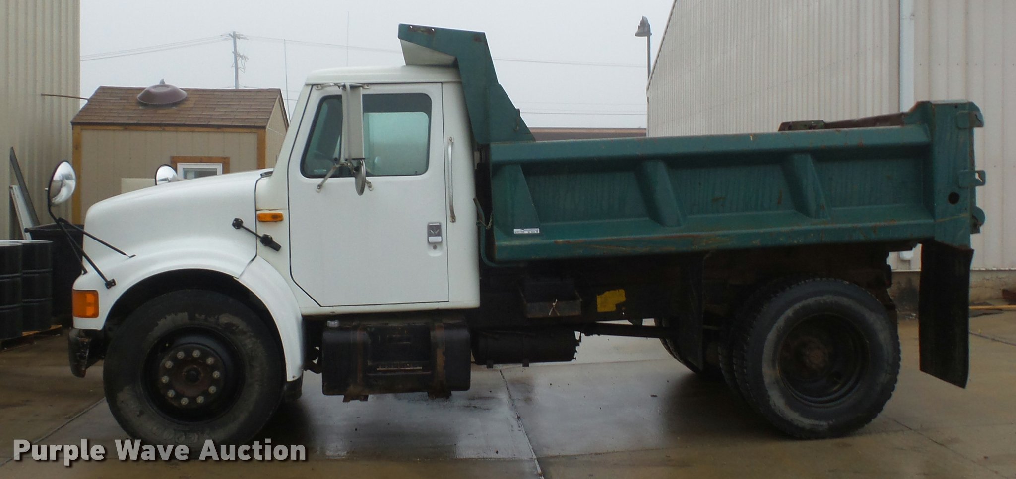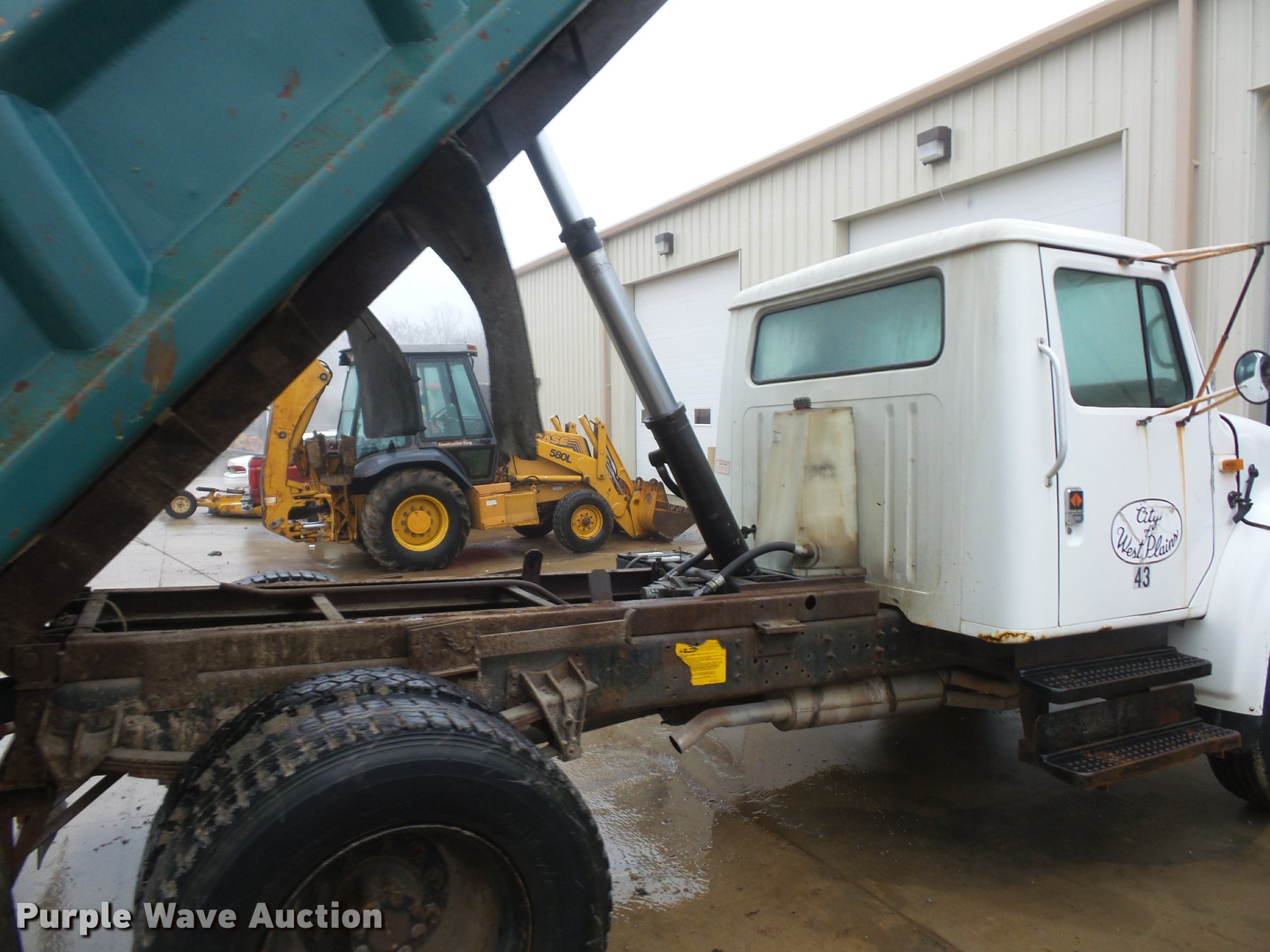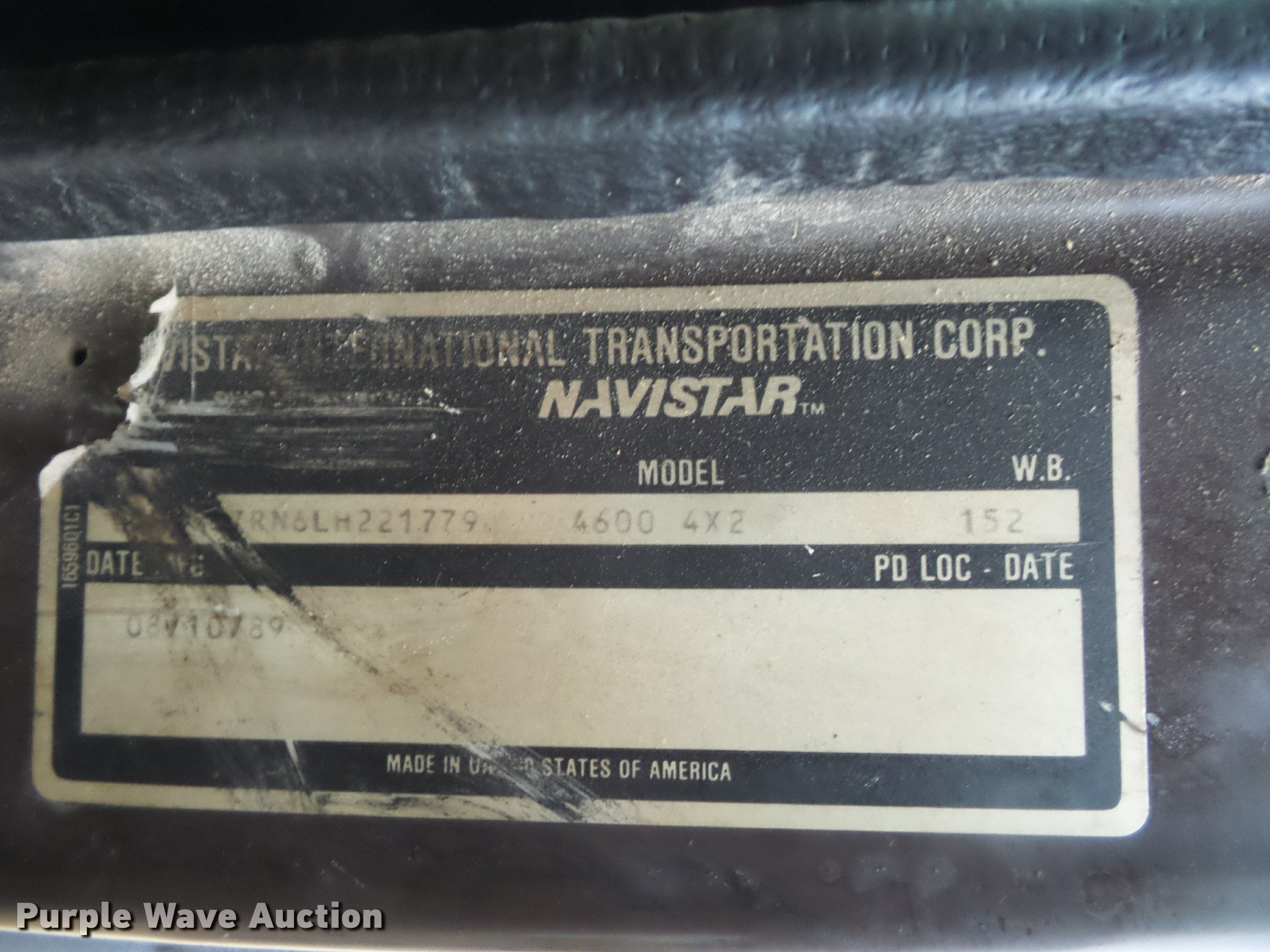 Purple Wave is selling a used Construction Dump Truck in Missouri. This item is a 1990 International 4600 dump truck with the following: 80,428 miles on odometer, International T444 7.3L V8 diesel engine, Automatic transmission, Single axle, Heat, AM/FM, PTO, 10'L x 8'W dump bed, 24" side height, 152" wheelbase, Spring suspension, Air brakes, 11R22.5 tires
