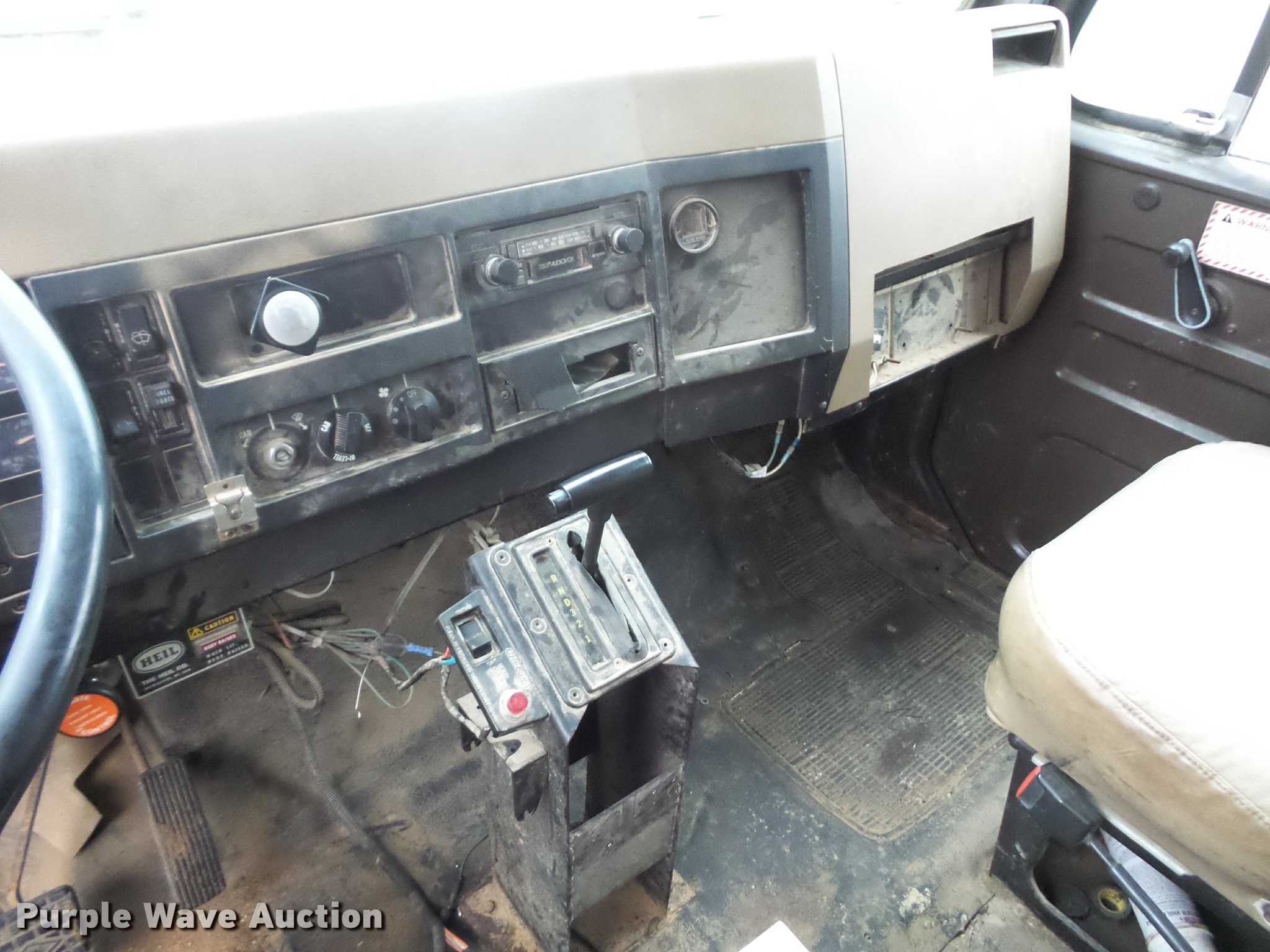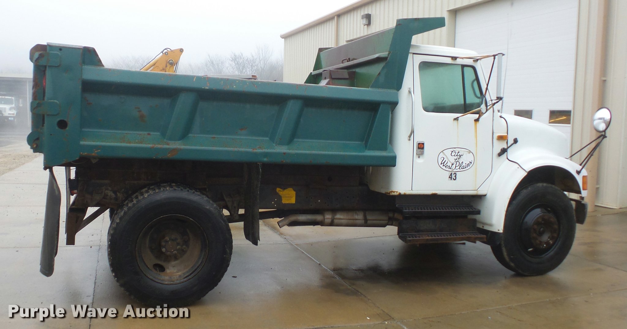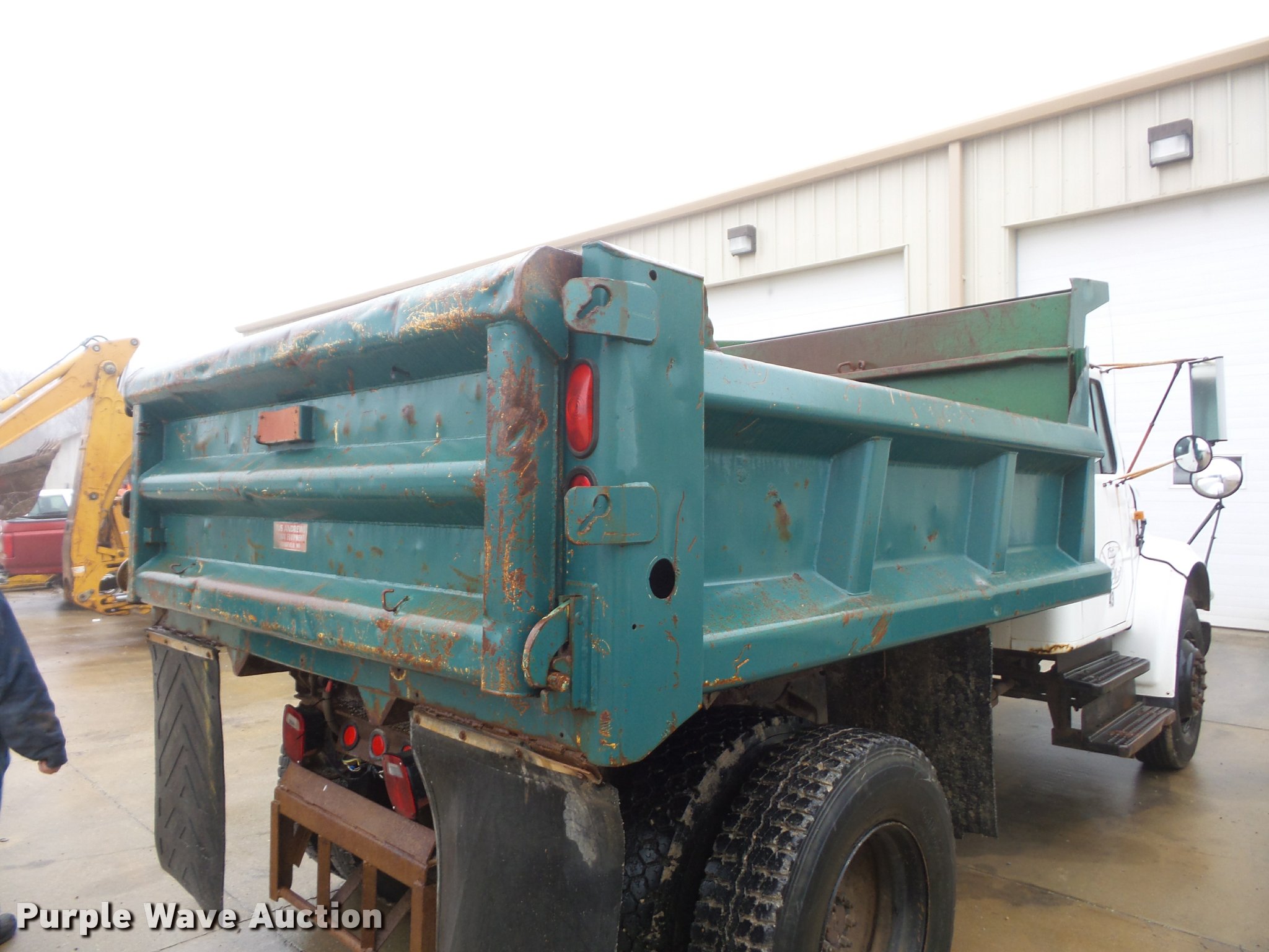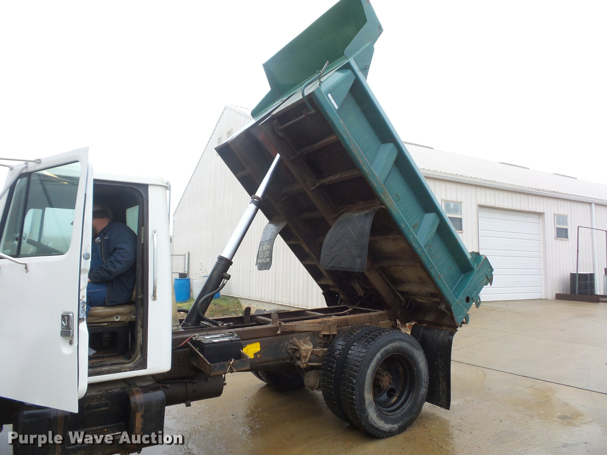 Purple Wave is selling a used Construction Dump Truck in Missouri. This item is a 1990 International 4600 dump truck with the following: 80,428 miles on odometer, International T444 7.3L V8 diesel engine, Automatic transmission, Single axle, Heat, AM/FM, PTO, 10'L x 8'W dump bed, 24" side height, 152" wheelbase, Spring suspension, Air brakes, 11R22.5 tires