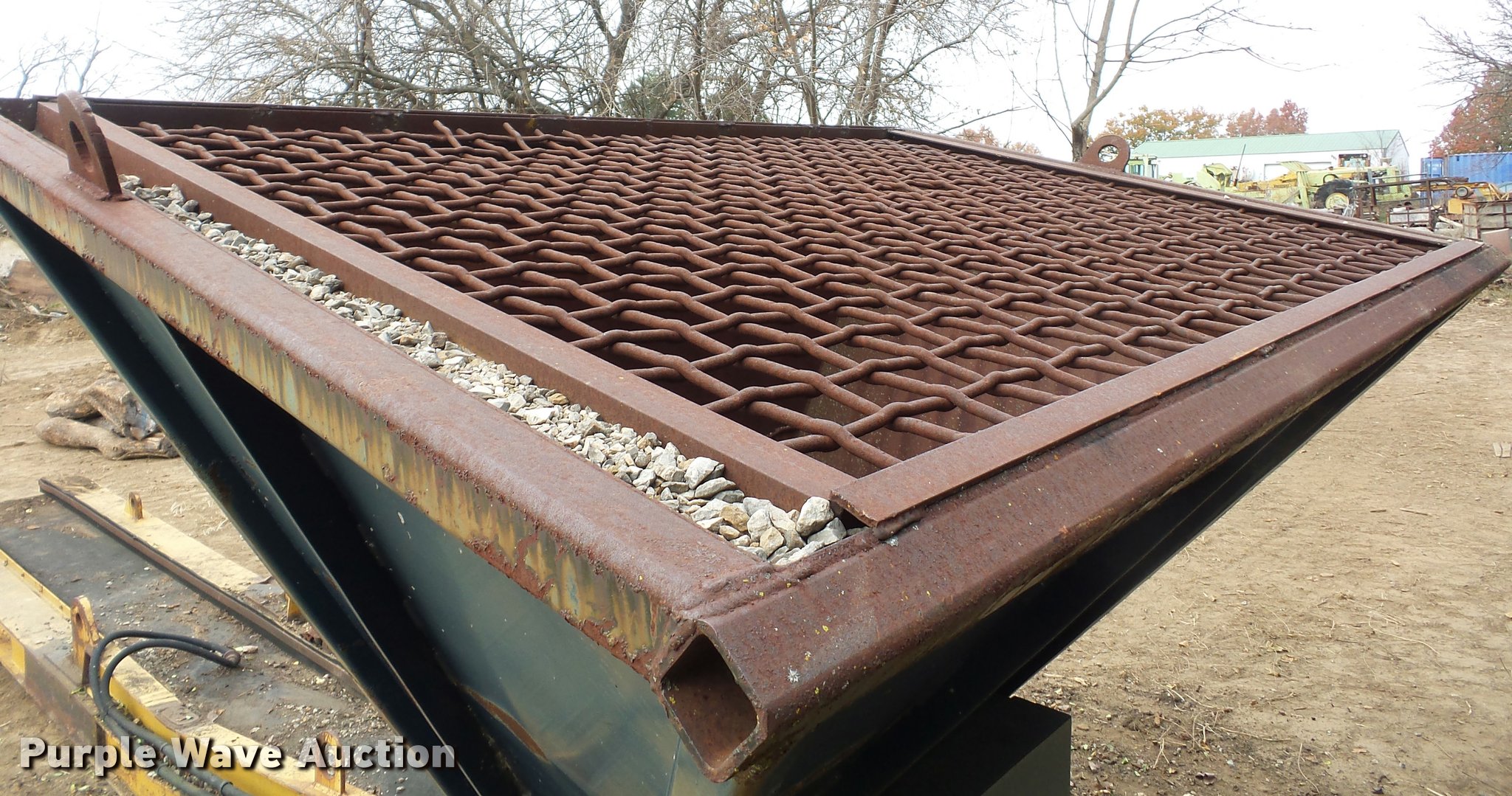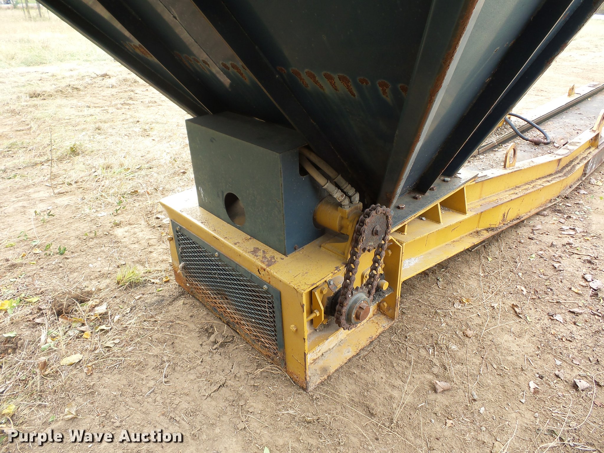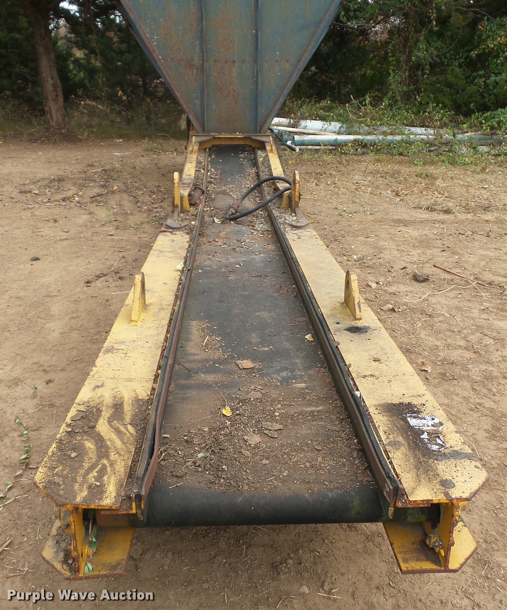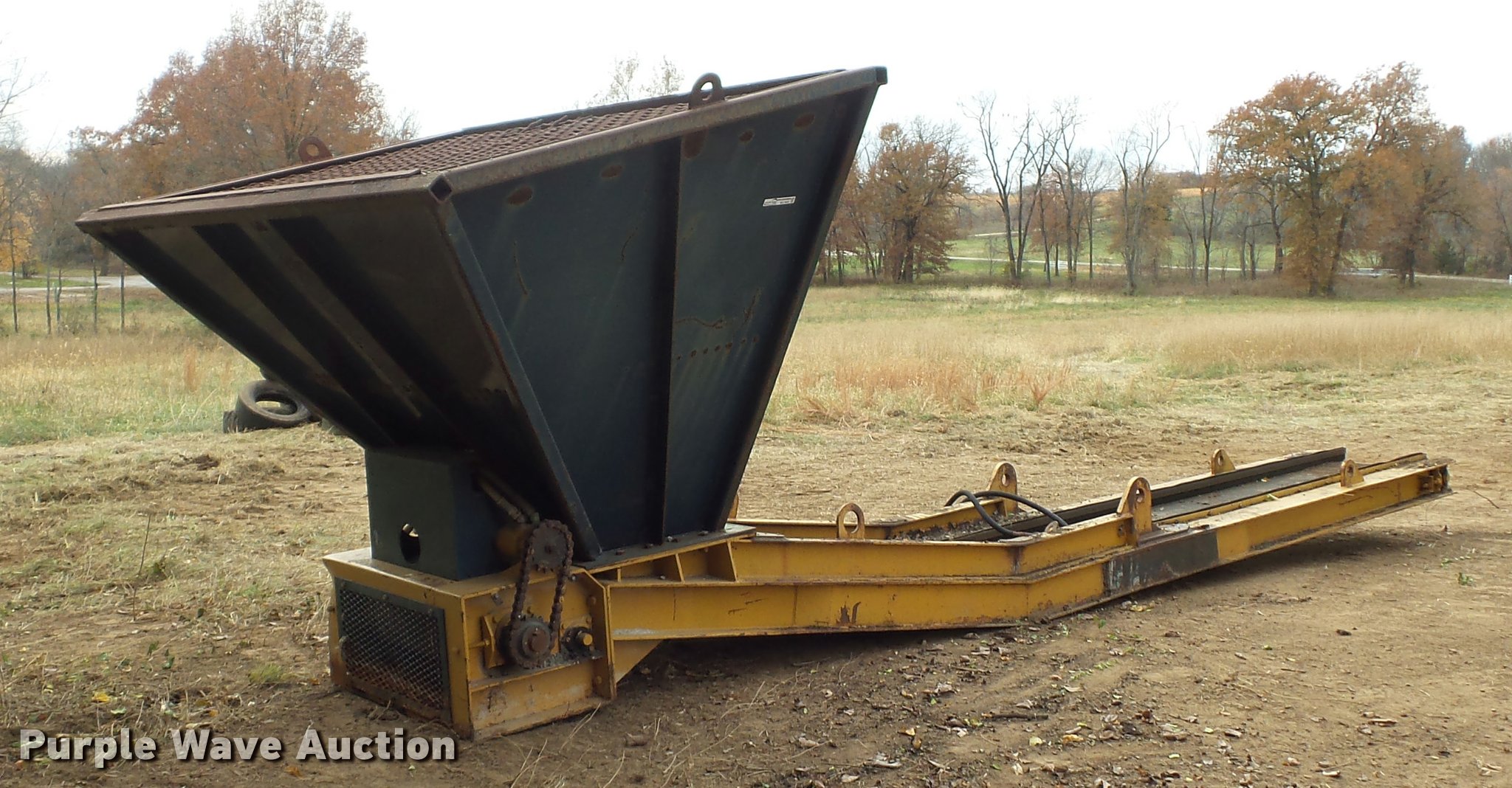 Purple Wave is selling a used Conveyor in Missouri. This item is a Hydraulic conveyor with the following: Approximately 23' overall length, 20"W belt, 9' x 89" hopper, Grate