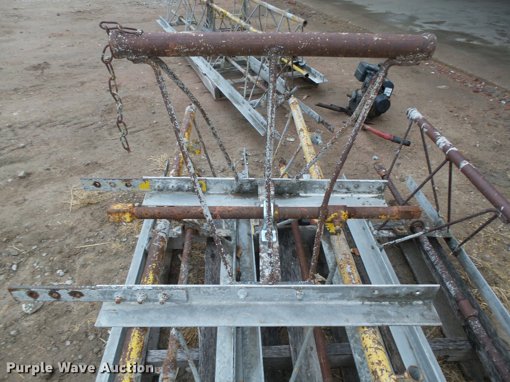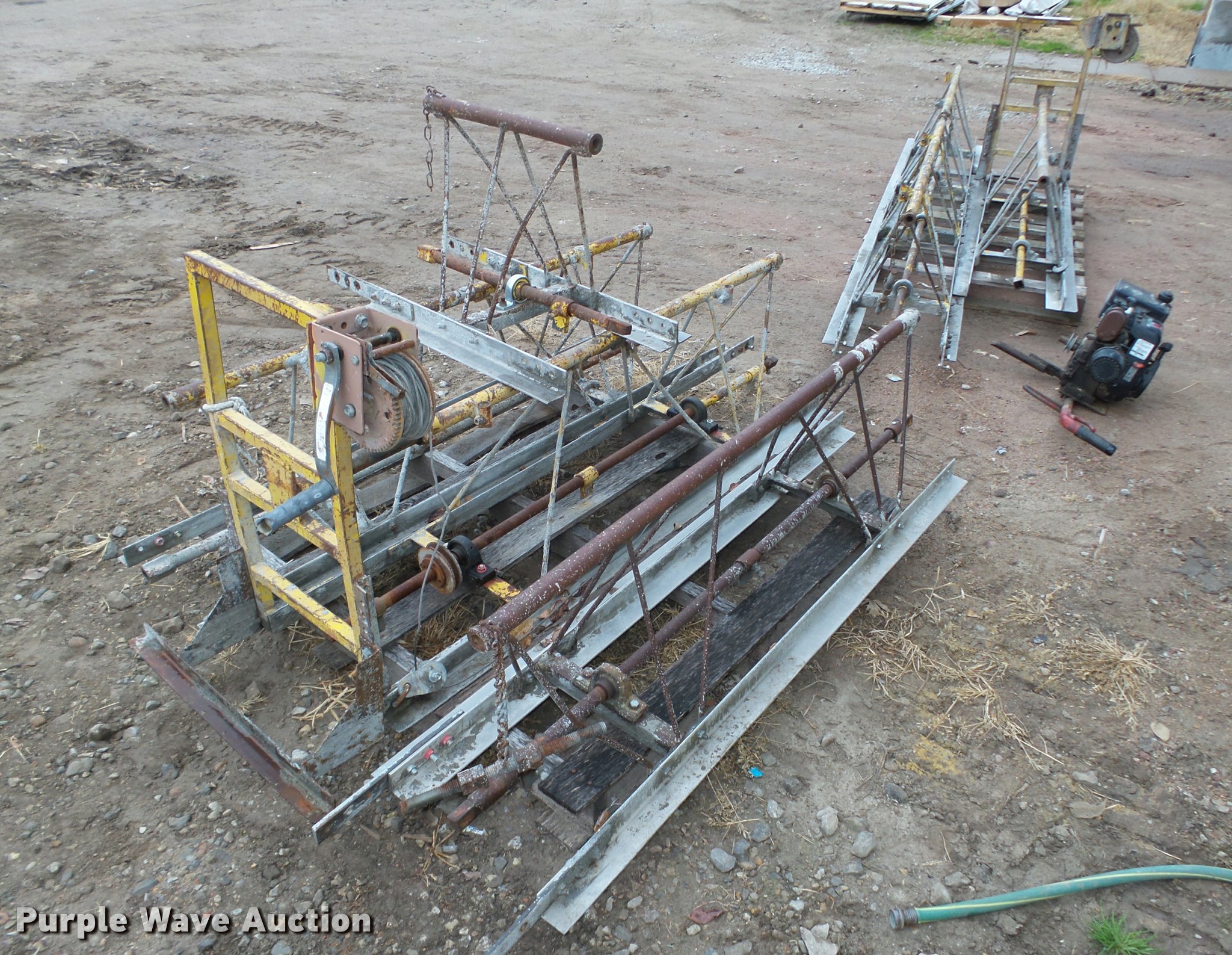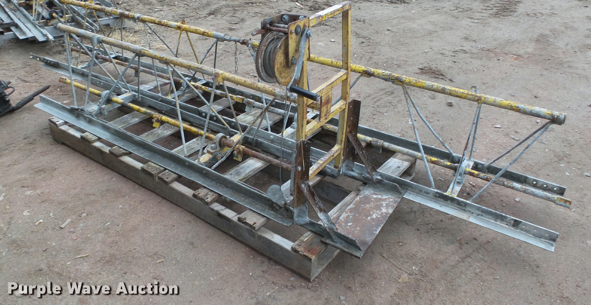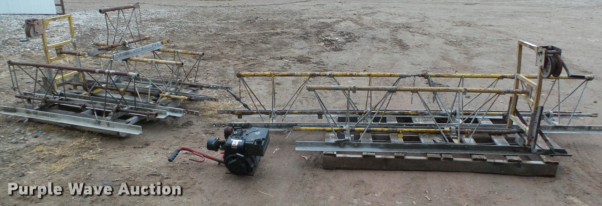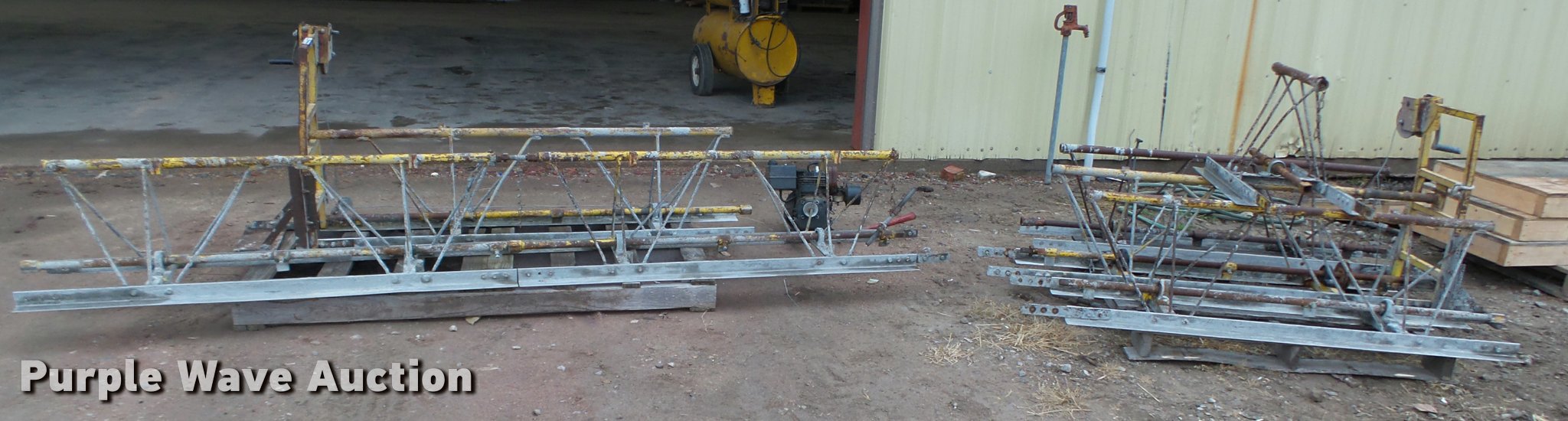 Vibrating concrete screed. Tecumseh gas engine Serial H3545462N, (7) 17"H A-frames (5) 60"L One end section, 66"L end section, 24"L, Greaseable pillow block bearings, Manual winches, Unknown operating condition. Saathoff Construction. 751 E 1st St. Superior, NE 68978