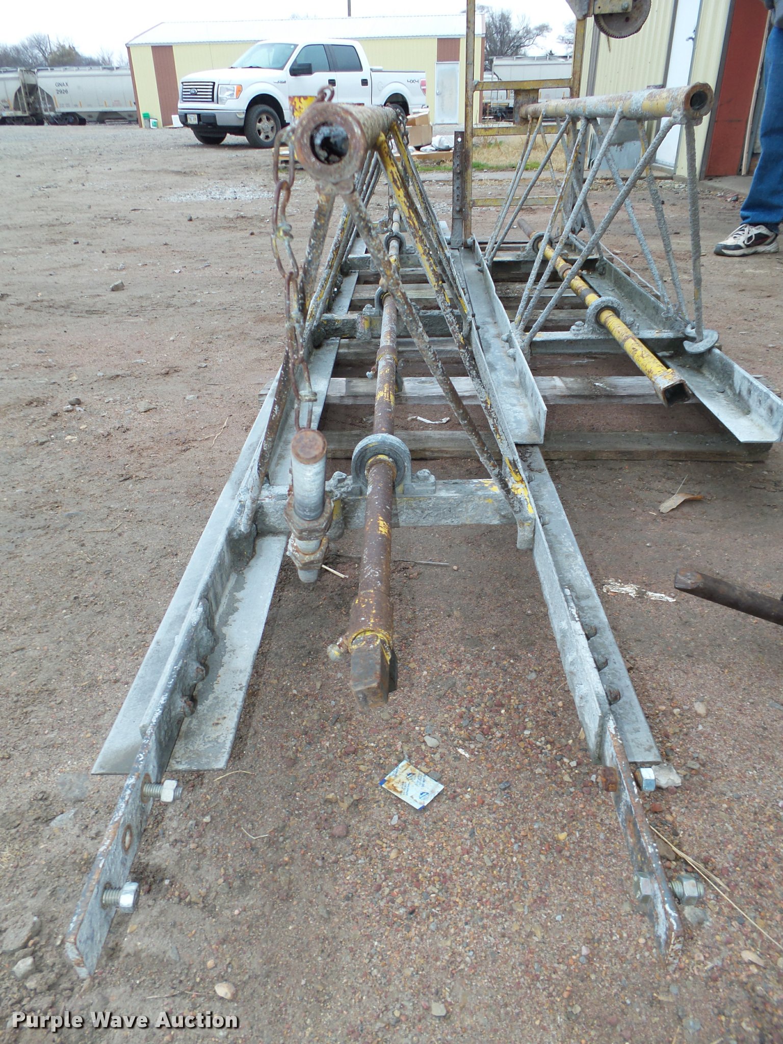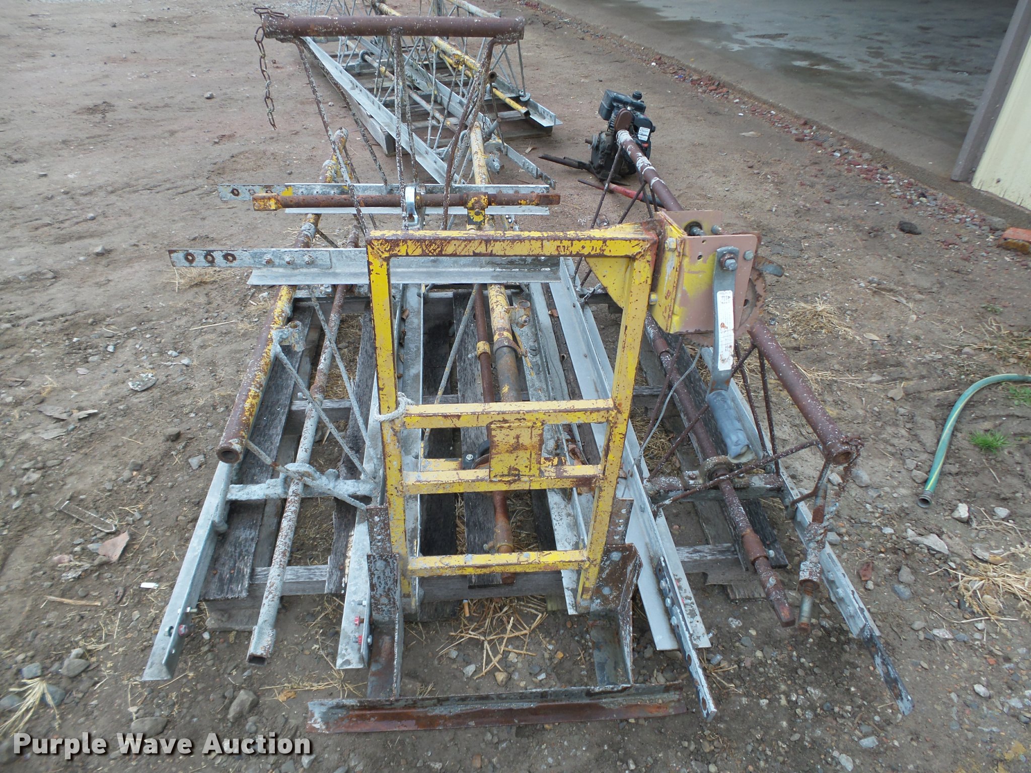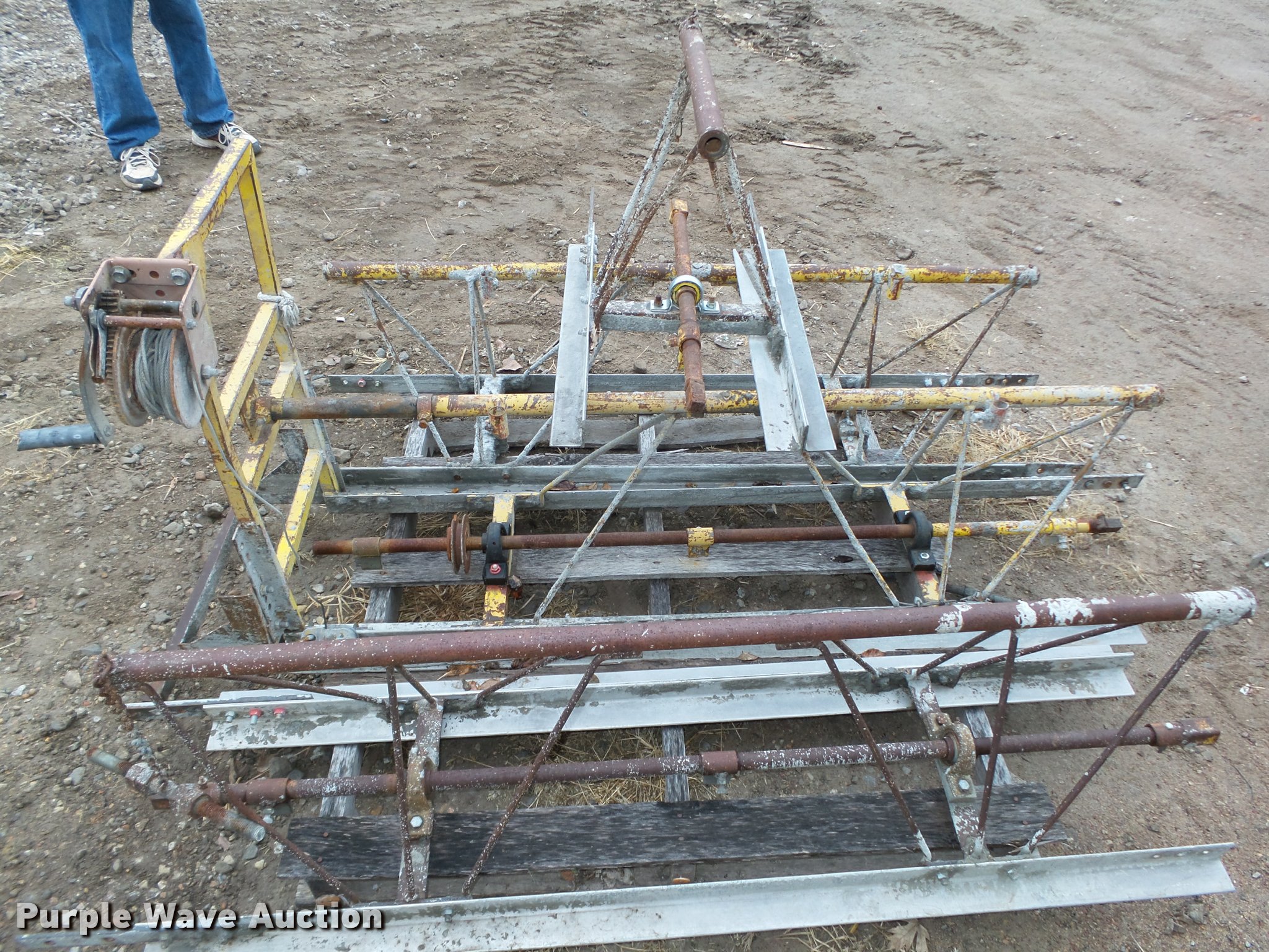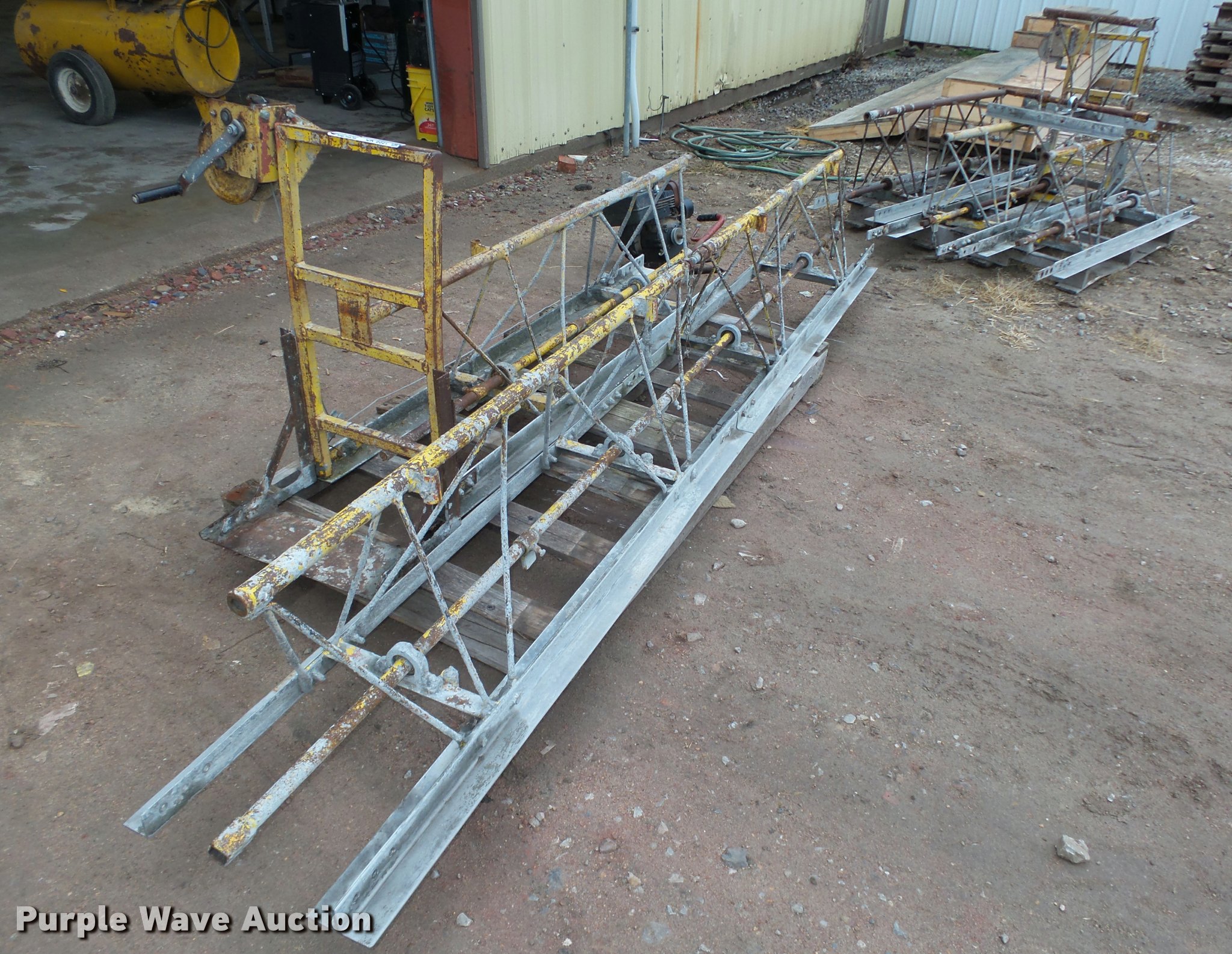 Vibrating concrete screed. Tecumseh gas engine Serial H3545462N, (7) 17"H A-frames (5) 60"L One end section, 66"L end section, 24"L, Greaseable pillow block bearings, Manual winches, Unknown operating condition. Saathoff Construction. 751 E 1st St. Superior, NE 68978