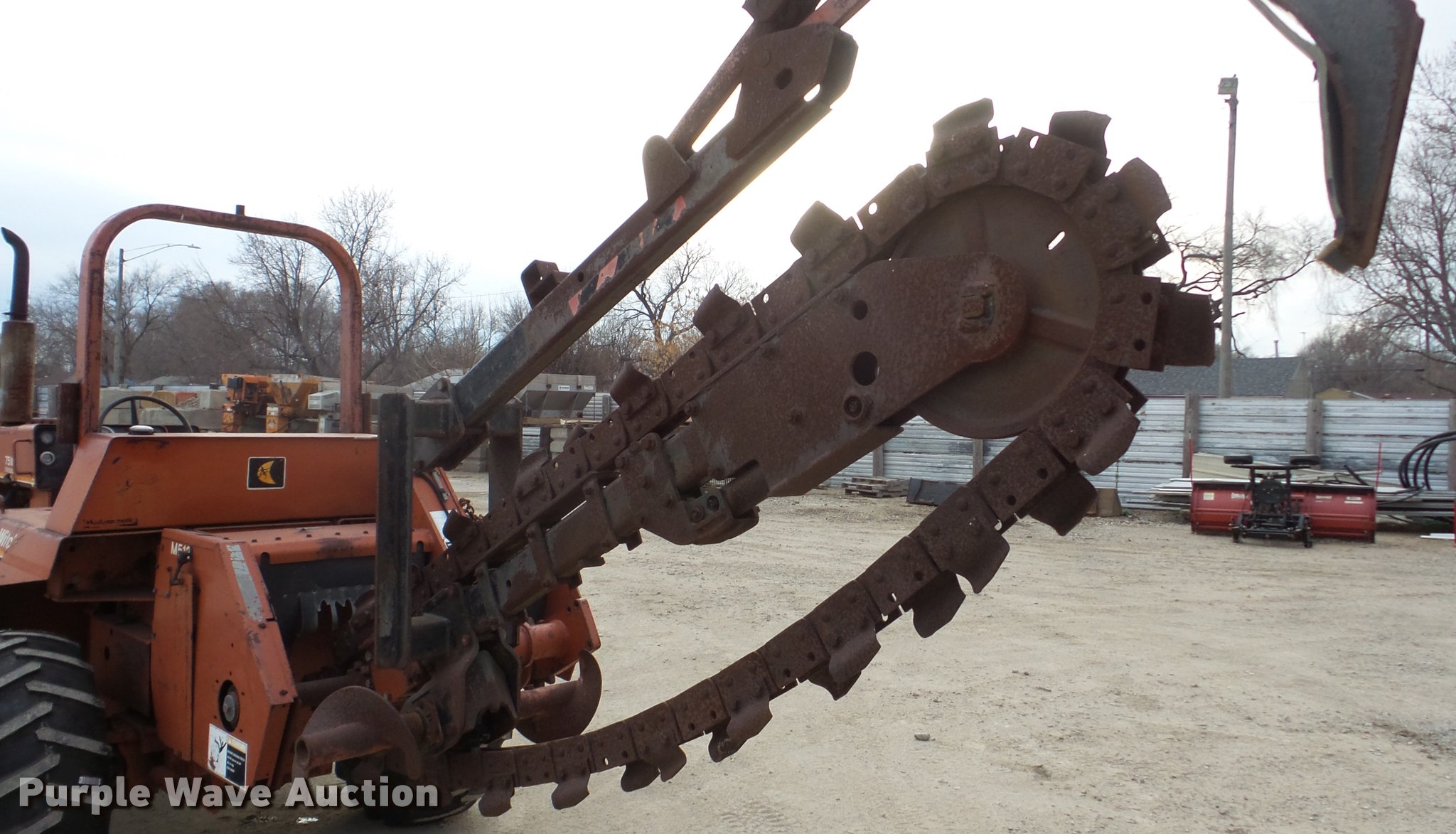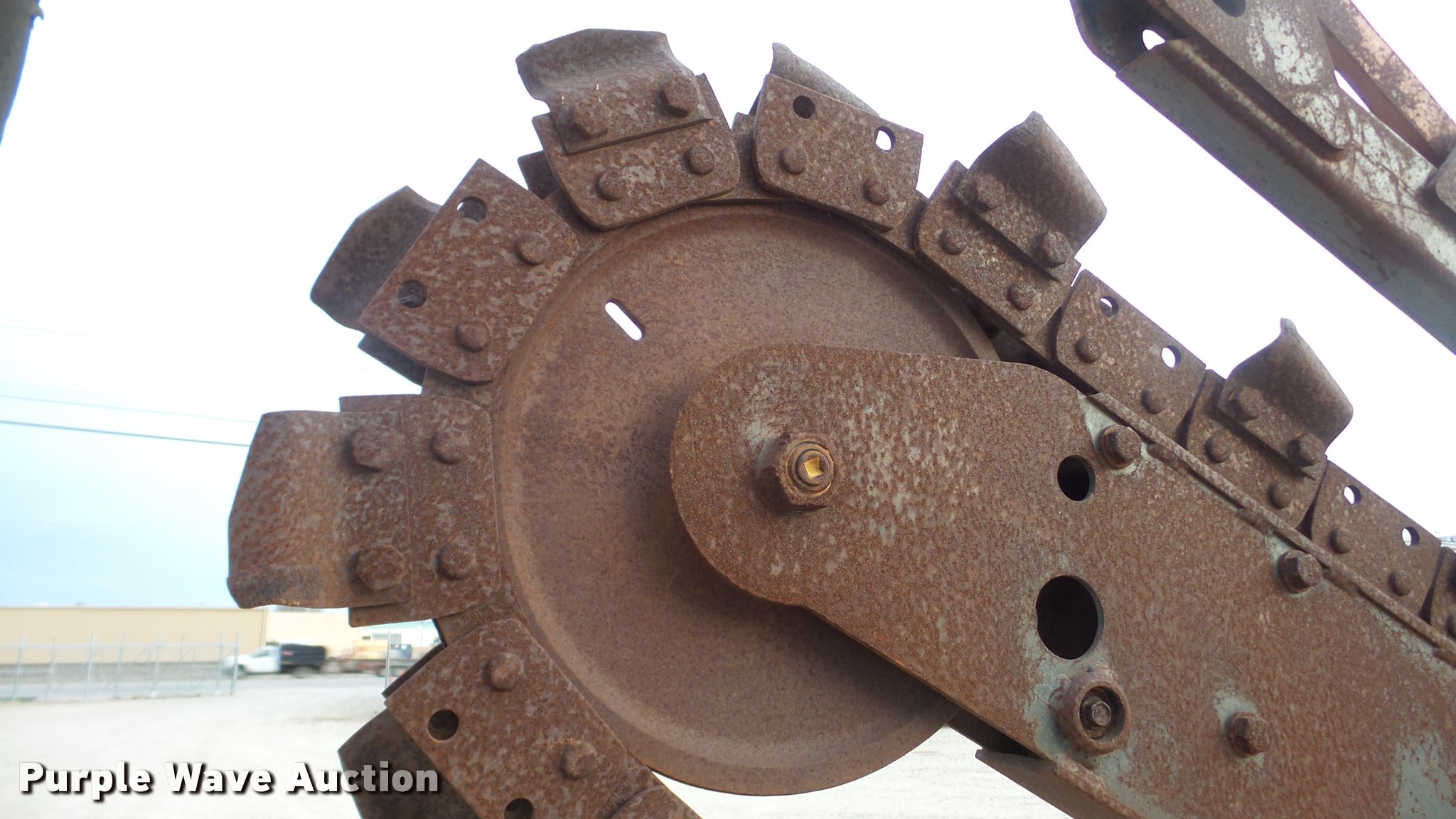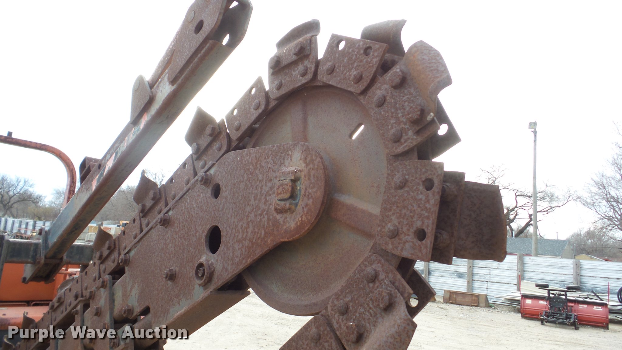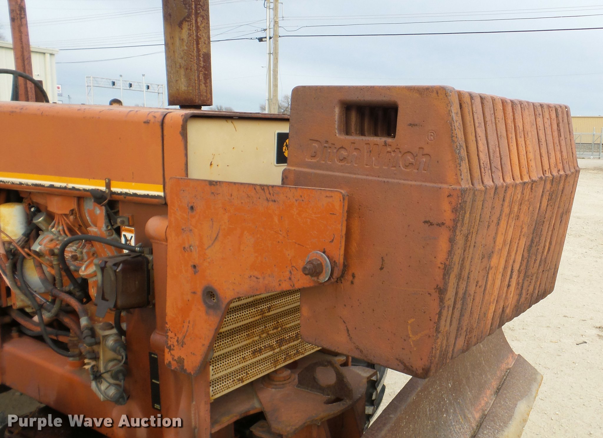 Purple Wave is selling a used Trencher or Rock Saw in Kansas. This item is a Ditch Witch 7510 trencher with the following: 688 hours on meter, Deutz four cylinder diesel engine, Four speed transmission, Four wheel drive, Four wheel steering, OROPS, 72"W six-way back fill blade, M512 10' trencher, 6" cutting width, Crumber, Serial 2T4274,, 16.5L-16.1 tires