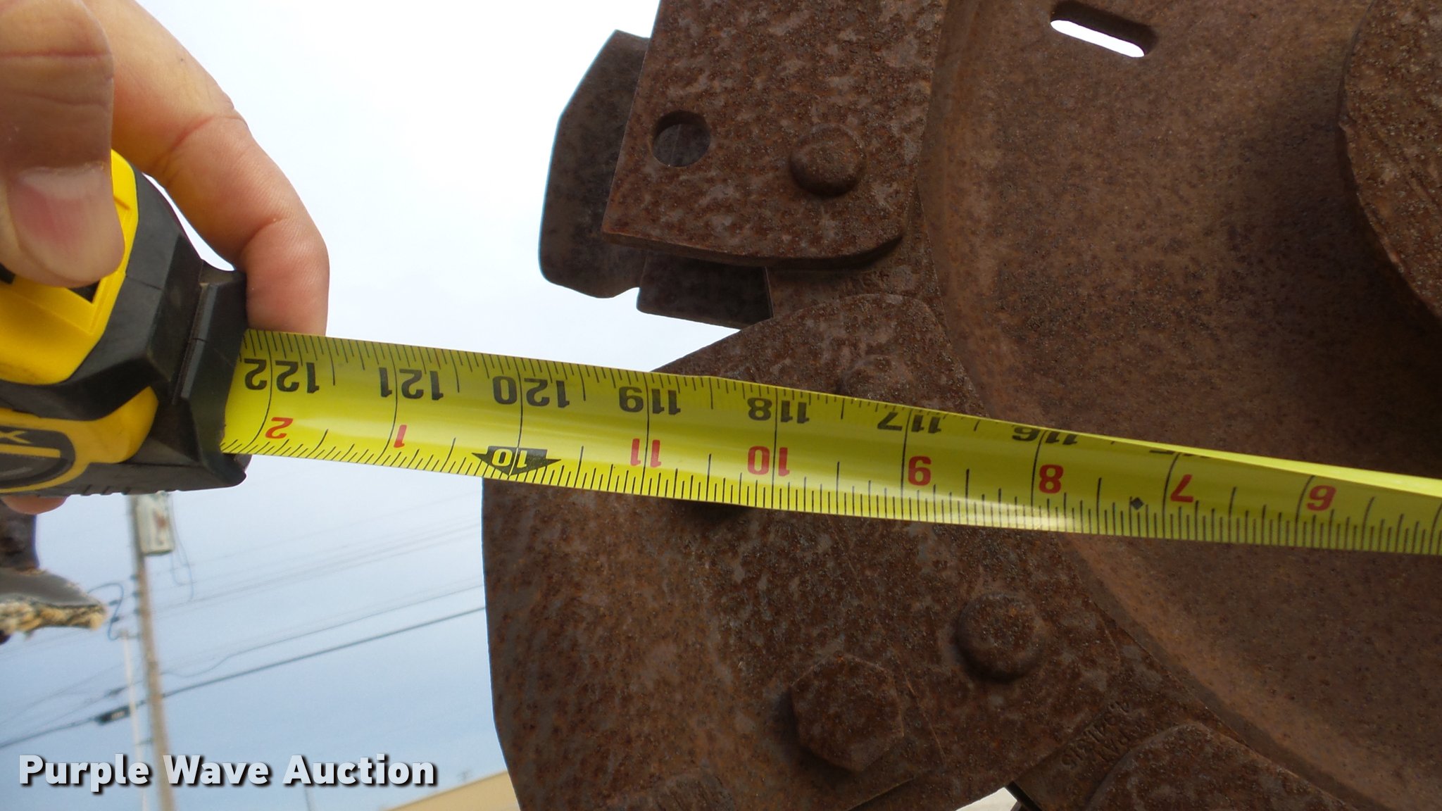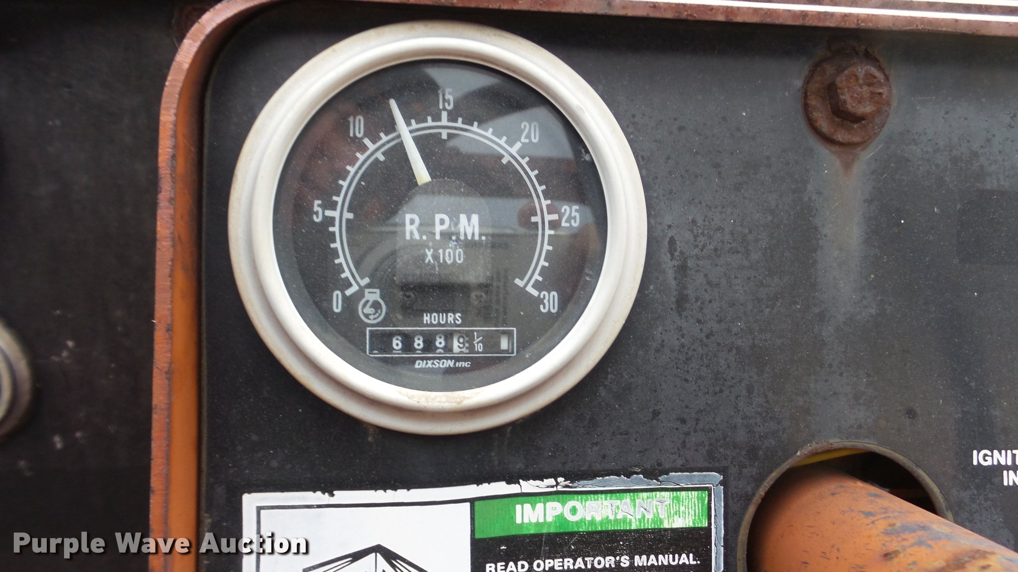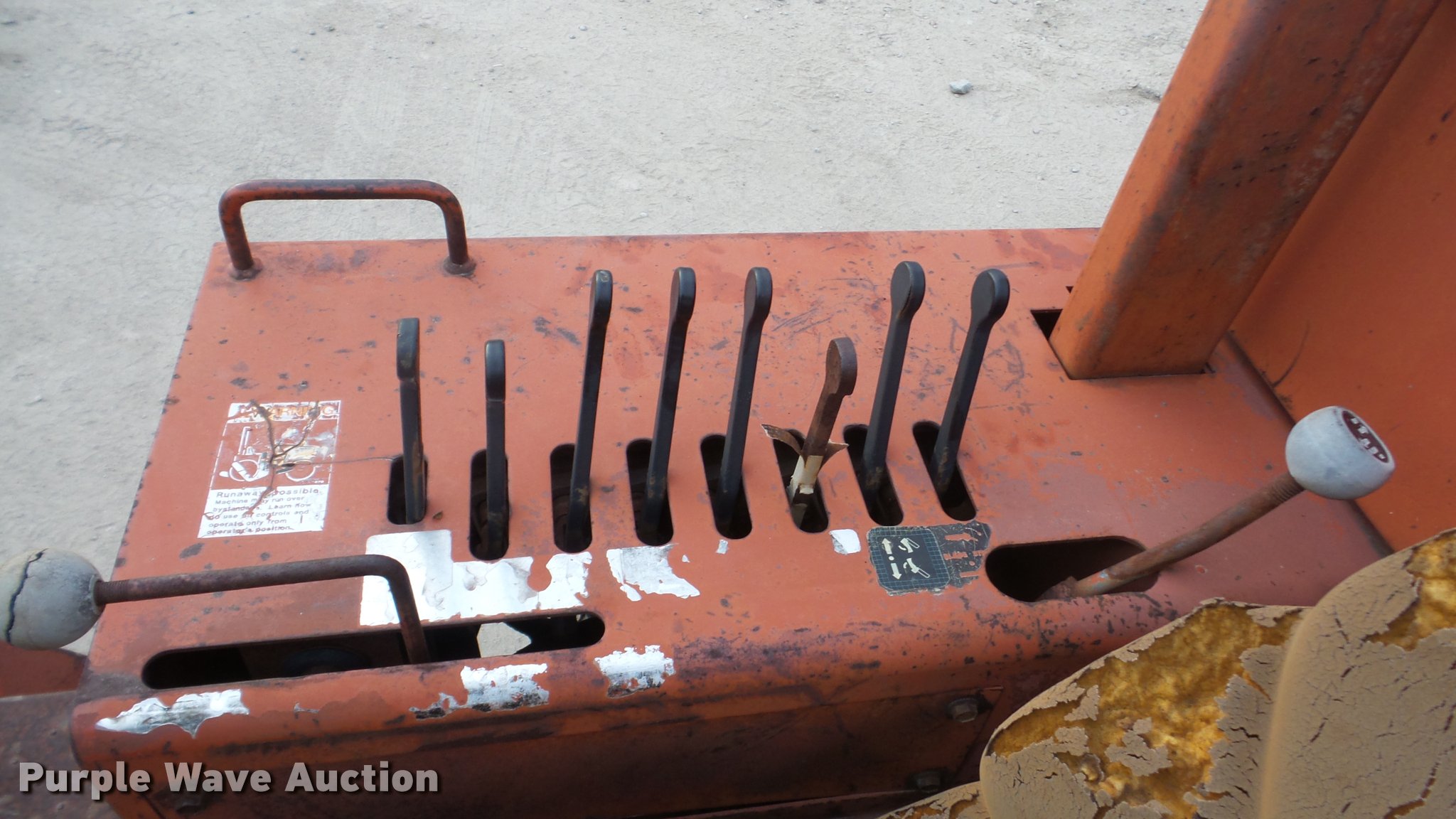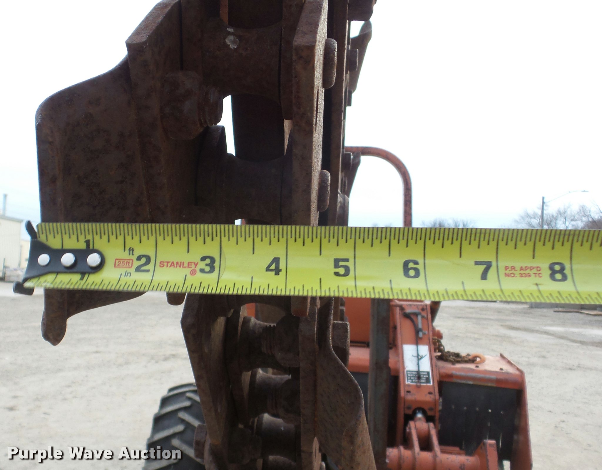 Purple Wave is selling a used Trencher or Rock Saw in Kansas. This item is a Ditch Witch 7510 trencher with the following: 688 hours on meter, Deutz four cylinder diesel engine, Four speed transmission, Four wheel drive, Four wheel steering, OROPS, 72"W six-way back fill blade, M512 10' trencher, 6" cutting width, Crumber, Serial 2T4274,, 16.5L-16.1 tires