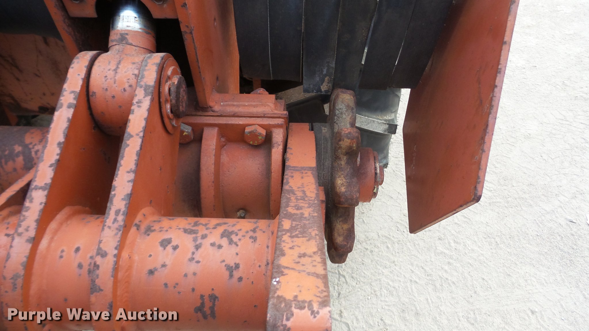 Ditch Witch 7510 trencher. 688 hours on meter, Deutz four cylinder diesel engine, Four speed transmission, Four wheel drive, Four wheel steering, OROPS, 72"W six-way back fill blade, M512 10' trencher 6" cutting width, Crumber Serial 2T4274, 16.5L-16.1 tires. Mid America Equipment. 3405 N. Broadway. Wichita, KS 67219