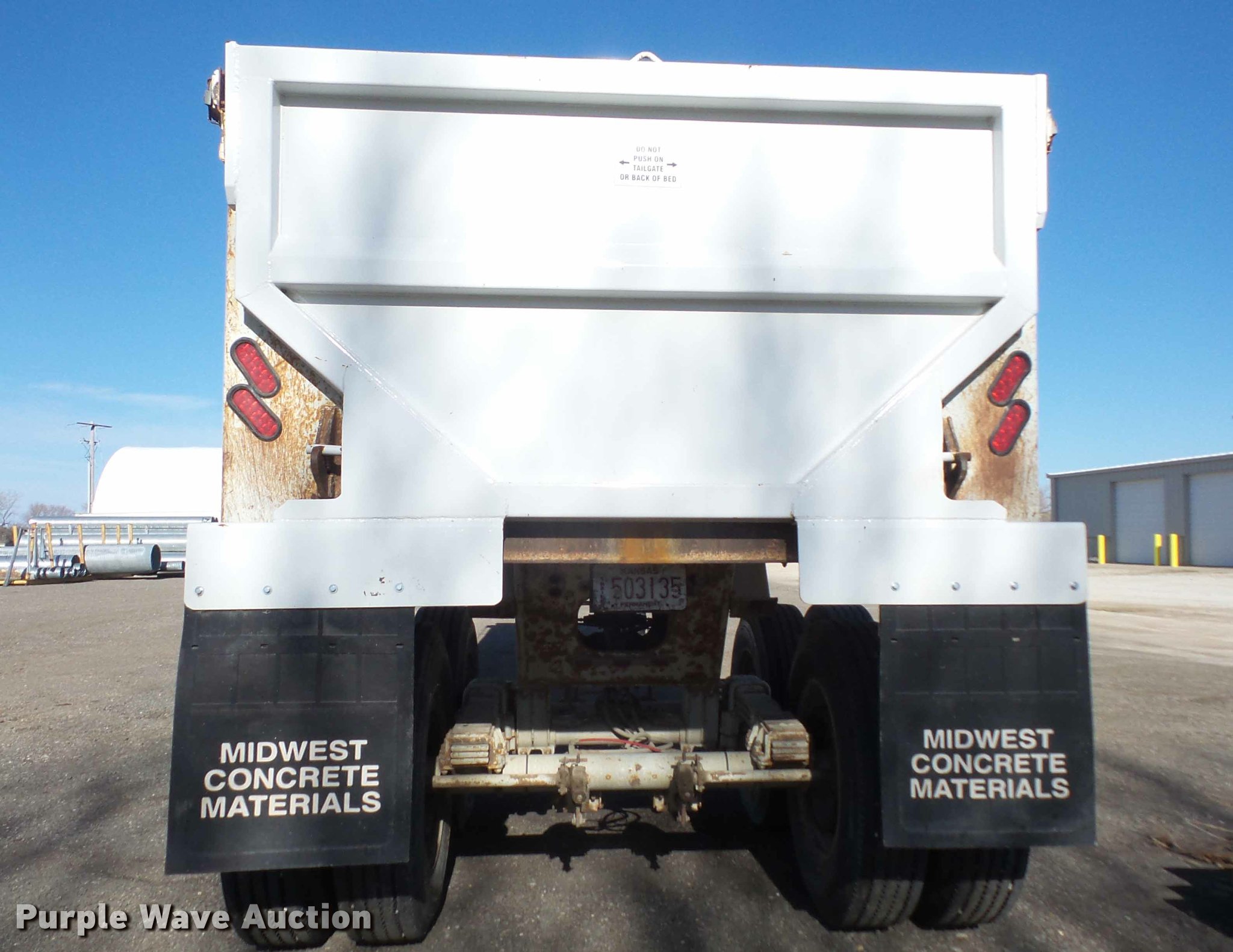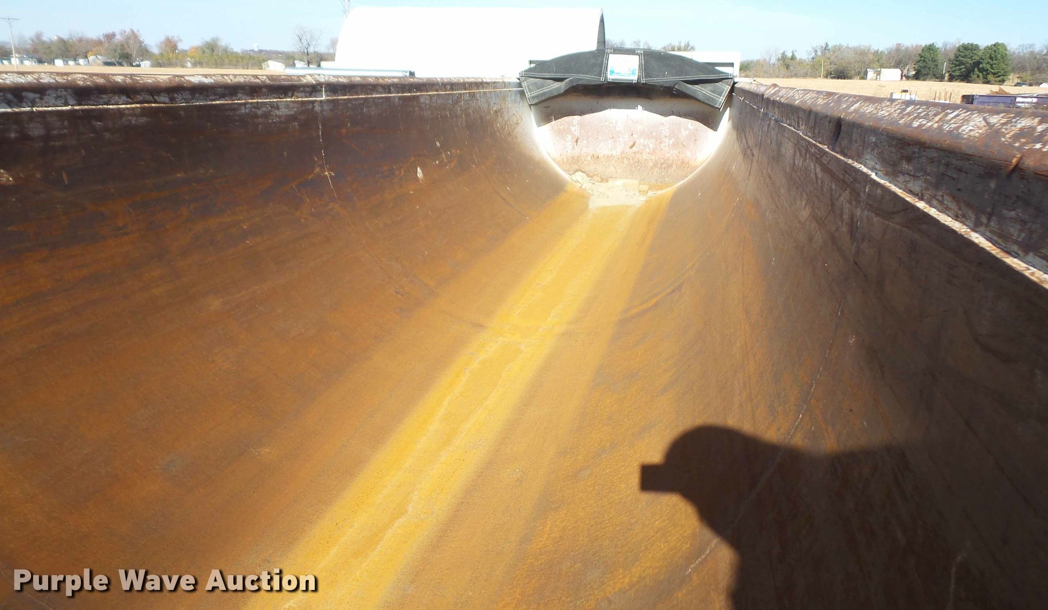 2007 Clement Rockstar barrel bed end dump trailer. 32'L, Single hydraulic cylinder, End gate, Electric rollover tarp, Steel construction, Fifth wheel plate, Dual leg landing gear, Spring suspension, Air brakes, Tandem axle, 11R24.5 tires, GVWR 72,000 lbs. Kansas title. 5C2BB32B17M005800. Midwest Concrete Materials. Manhattan, KS 66505