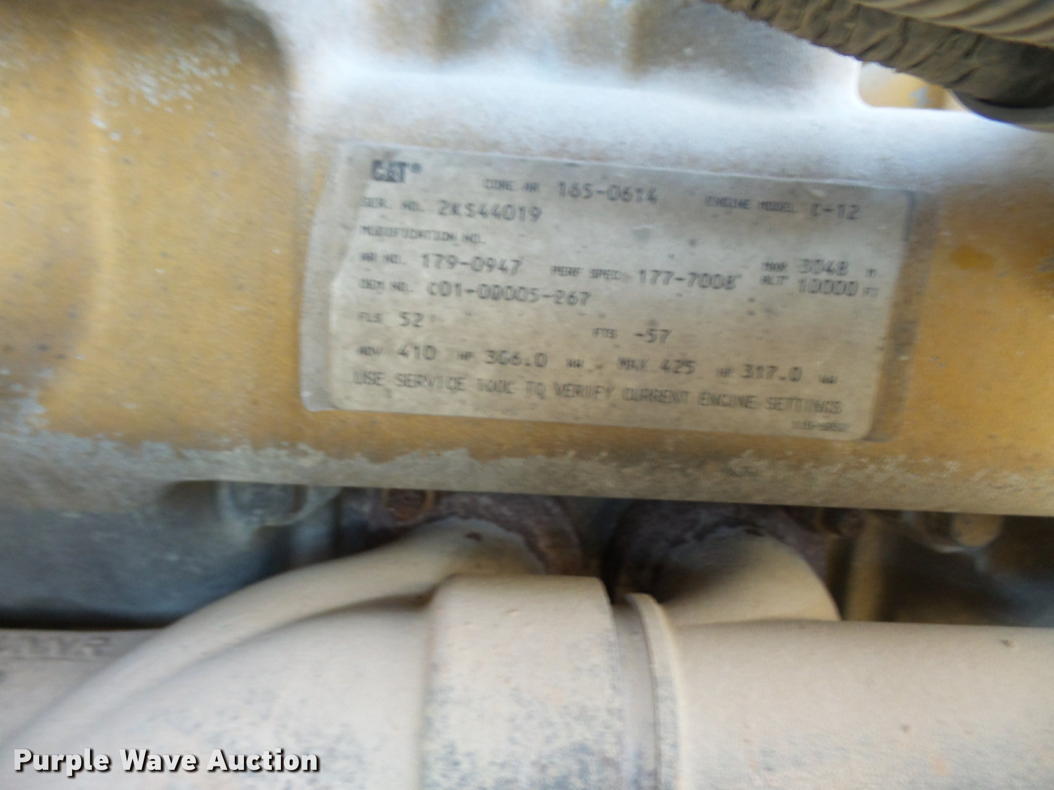 Purple Wave is selling a used Truck Tractor in Kansas. This item is a 2000 Sterling A9500 semi truck with the following: 475,672 miles on odometer, 7,544 hours on meter, Caterpillar C12 six cylinder turbo diesel engine, 410 HP, Serial 2KS44019, Eaton Fuller Road Ranger 10 speed manual transmission, Tandem axle, Inter-axle differential lock, AC and heat, Air suspension seat, PTO, Wet kit, Single exhaust stack, Sliding fifth wheel plate, Single fuel tank, Plastic half fenders, Mud flaps, Air suspension, Air brakes, 11R22.5 tires, GVWR 52,000 lbs, FAWR 12,000 lbs, IAWR 20,000 lbs, RAWR 20,000 lbs, Current DOT inspection
