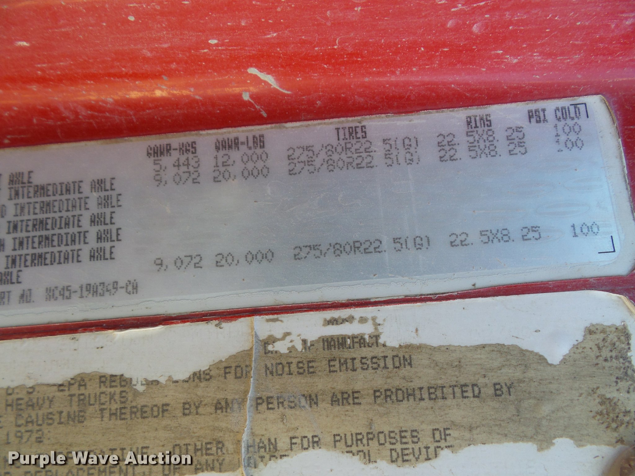 2000 Sterling A9500 semi truck. 475,672 miles on odometer, 7,544 hours on meter, Caterpillar C12 six cylinder turbo diesel engine 410 HP, Serial 2KS44019, Eaton Fuller Road Ranger 10 speed manual transmission, Tandem axle, Inter-axle differential lock, AC and heat, Air suspension seat, PTO, Wet kit, Single exhaust stack, Sliding fifth wheel plate, Single fuel tank, Plastic half fenders, Mud flaps, Air suspension, Air brakes, 11R22.5 tires, GVWR 52,000 lbs, FAWR 12,000 lbs, IAWR 20,000 lbs, RAWR 20,000 lbs, Current DOT inspection. Kansas title. Title distribution may be delayed up to 30 days from verification of funds. 2FWYHWEB4YAG45732. Custom Tree Care. Topeka, KS 66609
